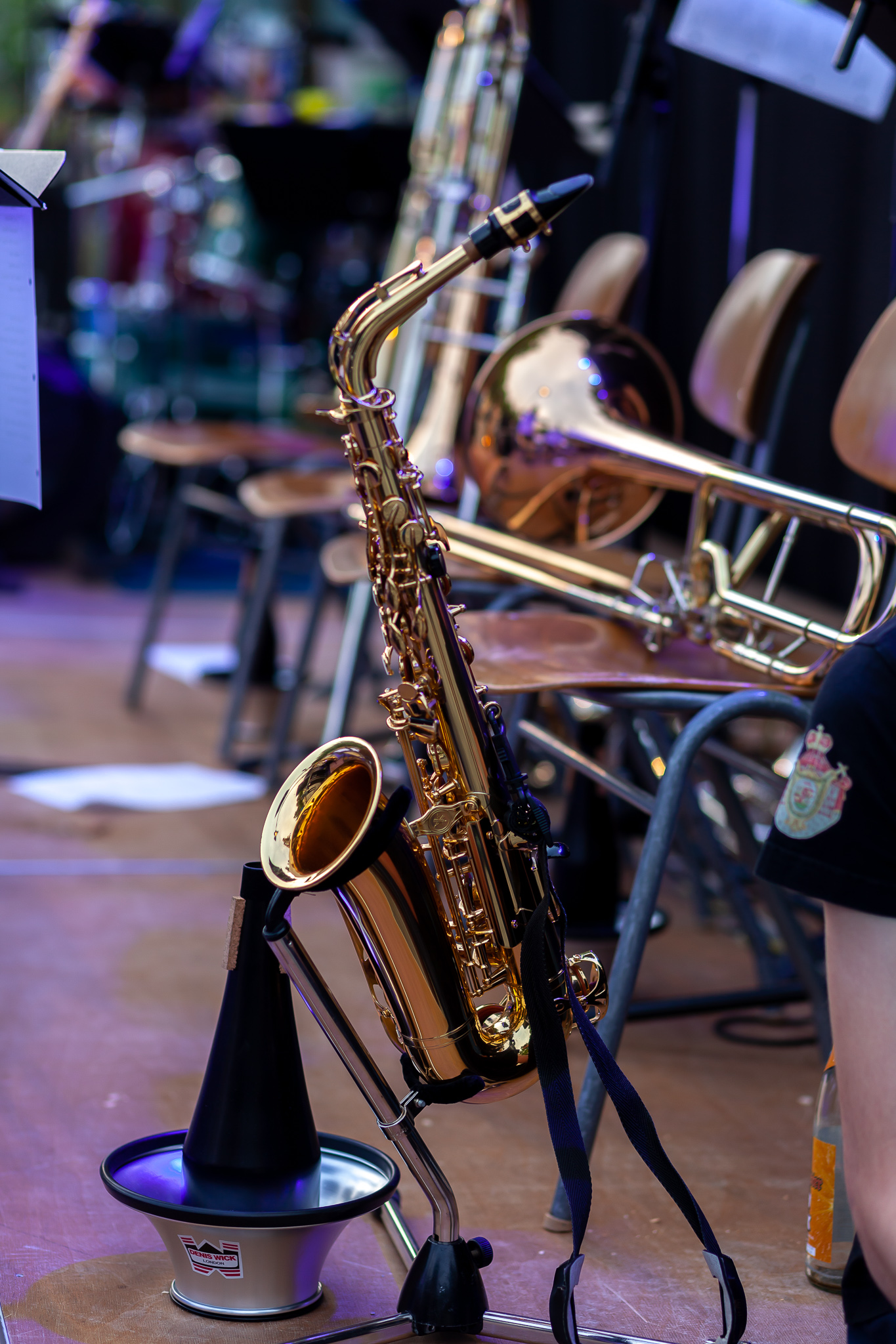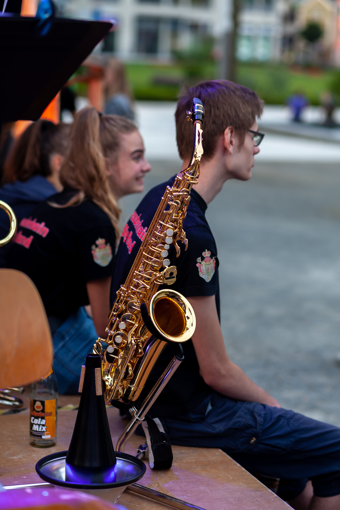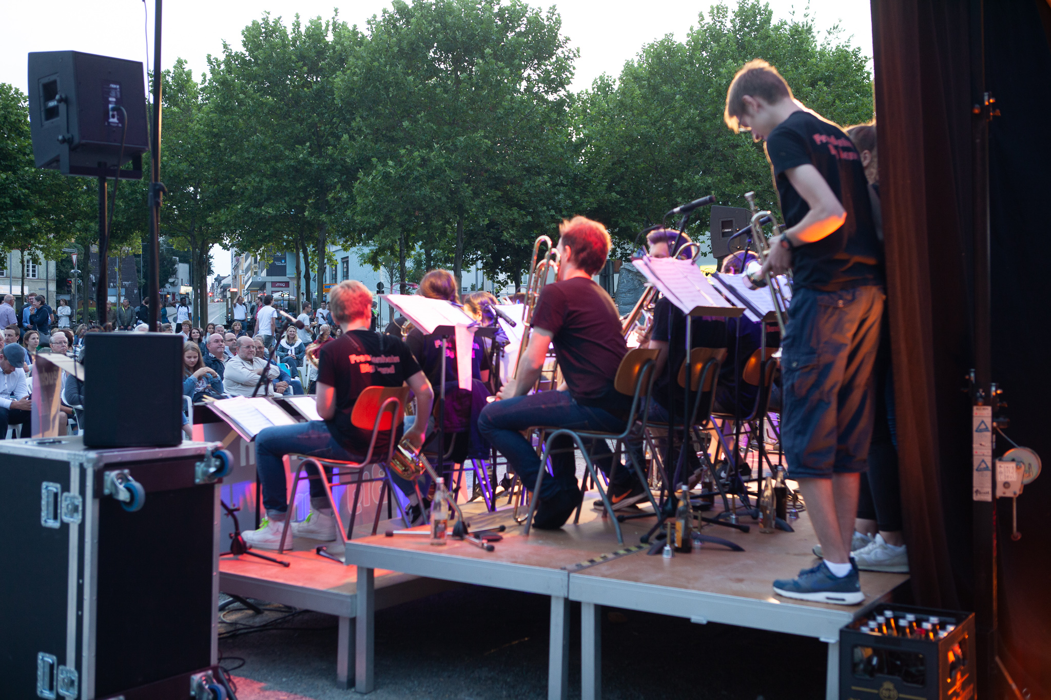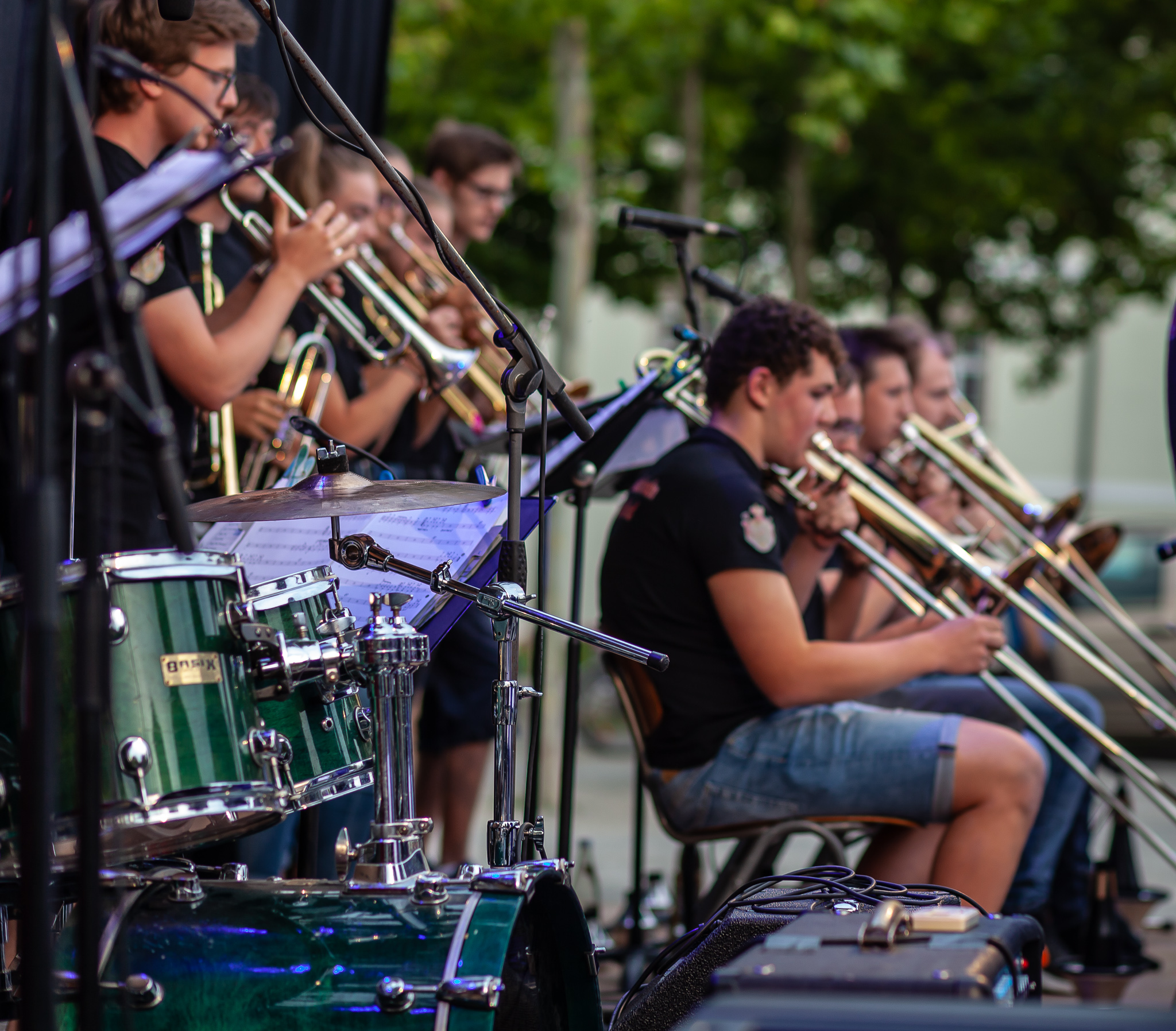 Großer Tag für die Big Band: Bei der „Blue night“ am Montagabend machte das Gymnasium Freudenhain wieder einmal seine musische Ausrichtung deutlich. Das Besondere daran ist der Ort, denn nicht hinter den schützenden Mauern des Schul-Schlosses präsentieren sich die Schüler-Musiker, sondern an einem der öffentlichsten Orte der Stadt, im Klostergarten. Damit ist klar, dass nicht nur Eltern, Geschwister und andere Angehörige im Publikum sitzen, sondern auch Passanten, fremde Zuhörer also. Umso höher steigt natürlich die Herzfrequenz bei den Schülern auf der Bühne, vor allem denen, die zum ersten Mal in der Big Band mitspielen. „Es müssen sich aber alle trauen zu improvisieren, auch die Neuen“, verrät Bandleader Christoph Rose ein Grundprinzip. Den Weg zum Selbstvertrauen meisterte denn auch jeder.