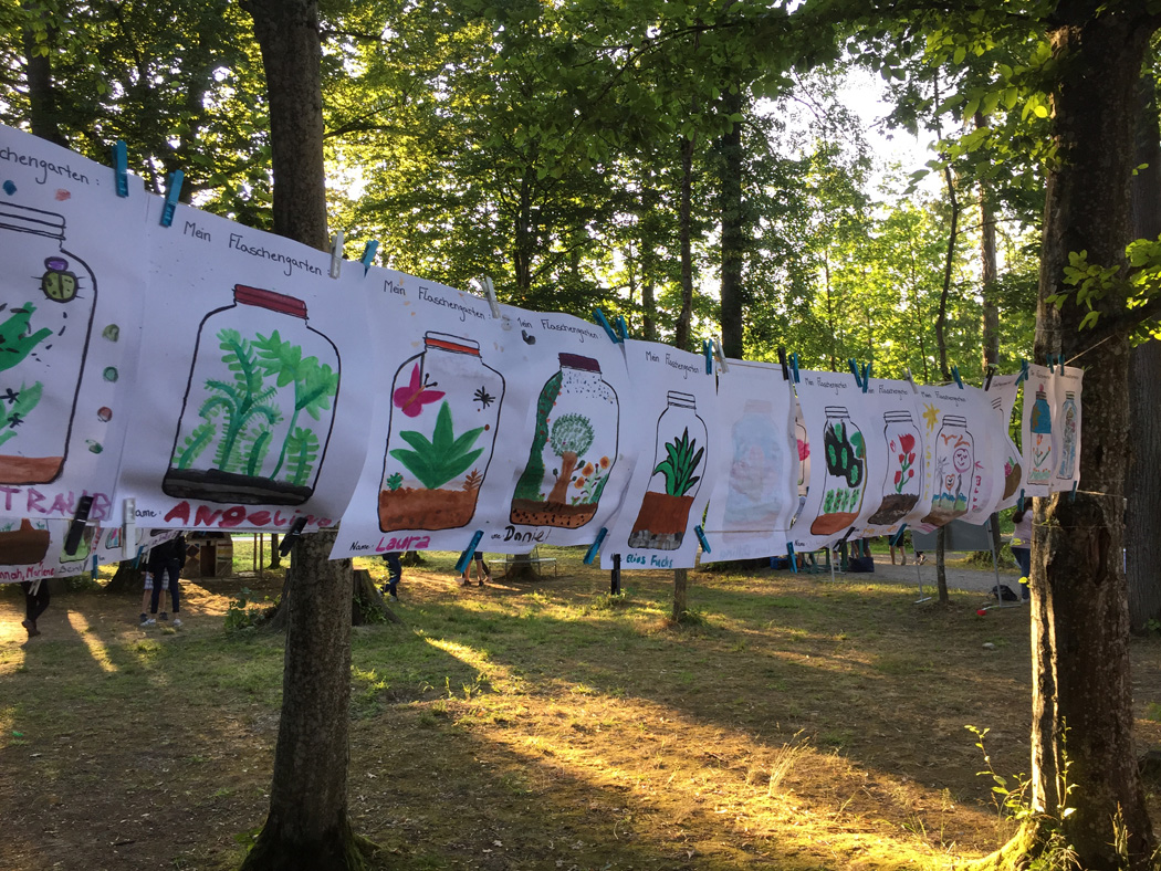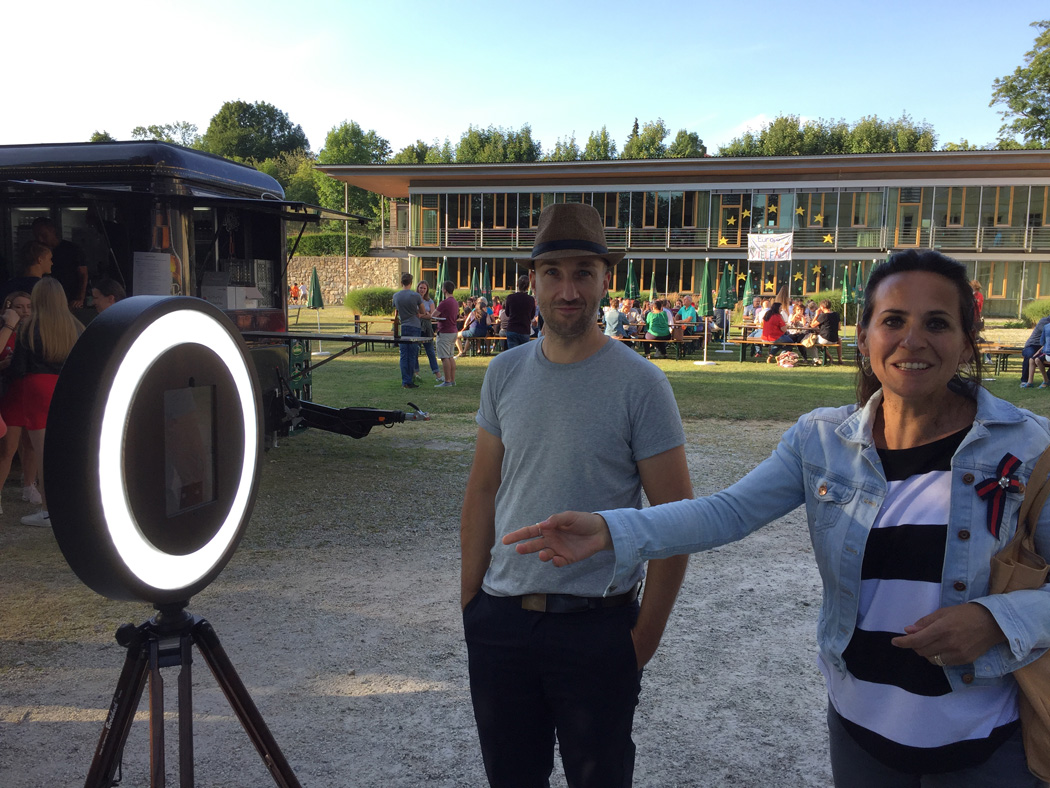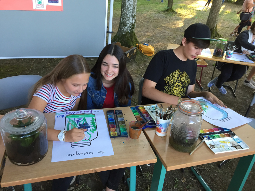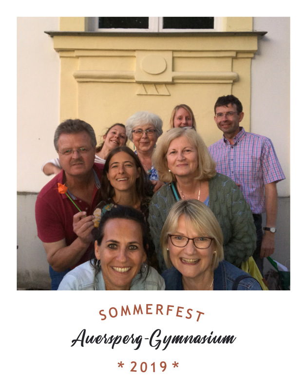 Die 10a präsentierte ihre Flaschengärten, die als Anregung für einen Malwettbewerb dienten. Wieder andere Klassen forderten die Festbesucher mit kniffligen Quizfragen zu ihrem ausgewählten Land heraus. Die Klassen hatten so viel vorbereitet, dass niemand mit leeren Händen nach Hause ging. Auch am Stand des Elternbeirats konnte man sich reichlich mit gebackenen Köstlichkeiten eindecken. Die kostenlos bereitgestellte Fotobox zog Lehrer wie Schüler magisch an. Man konnte sich dort in lustigen Posen oder auch ganz erst fotografieren und sich das Foto auf sein Handy schicken lassen - ein schönes Andenken an diesen angenehmen Abend.