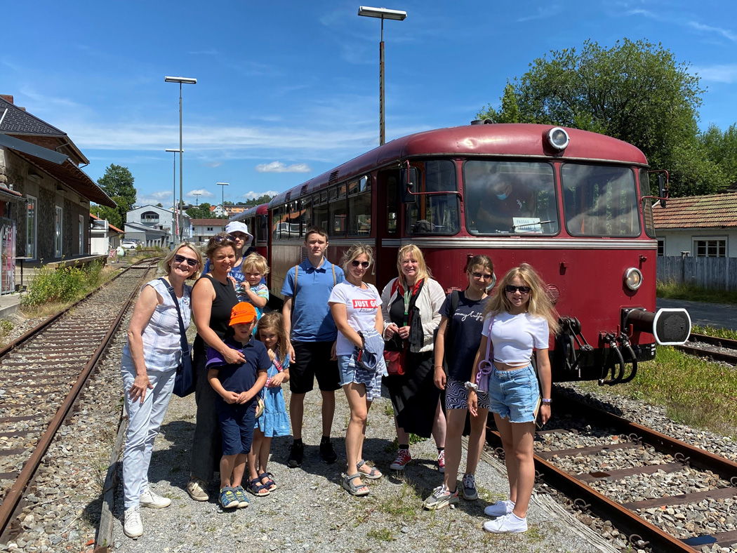 Ausflug Freuyung ITB 1Die vier ukrainischen Gastschüler/-innen, die seit April die 6., 7. und 8. Klasse unserer Schule besuchen, durften am 16. Juli zusammen mit ihrer Deutschlehrerin Lea Lehner und ihrer Betreuerin Marie-Luise Täuber einen Ausflug mit der Ilztalbahn nach Freyung machen, bezuschusst vom Förderverein der Schule. Auch eine ukrainische Mutter und  Monika Fecher, ehrenamtlich tätig bei der Ilztalbahn, begleiteten die kleine Gruppe. Von Passau aus ging es nach Freyung, wo man gemeinsam zu Mittag aß und sich bei einem Spaziergang durch den Ort noch mit einem Eis erfrischte. Über einen kleinen Abstecher zum Schramlhof, einem Heimatmuseum im Ortskern Freyungs, ging es zurück zum Bahnhof und nach Passau. Für die meisten ukrainischen Gastschüler war diese Unternehmung auch zugleich ein Abschied, denn im nächsten Schuljahr werden sie in Brückenklassen an staatlichen Stadt- und Landkreisschulen unterrichtet, wo sie intensiven Deutschunterricht erhalten.