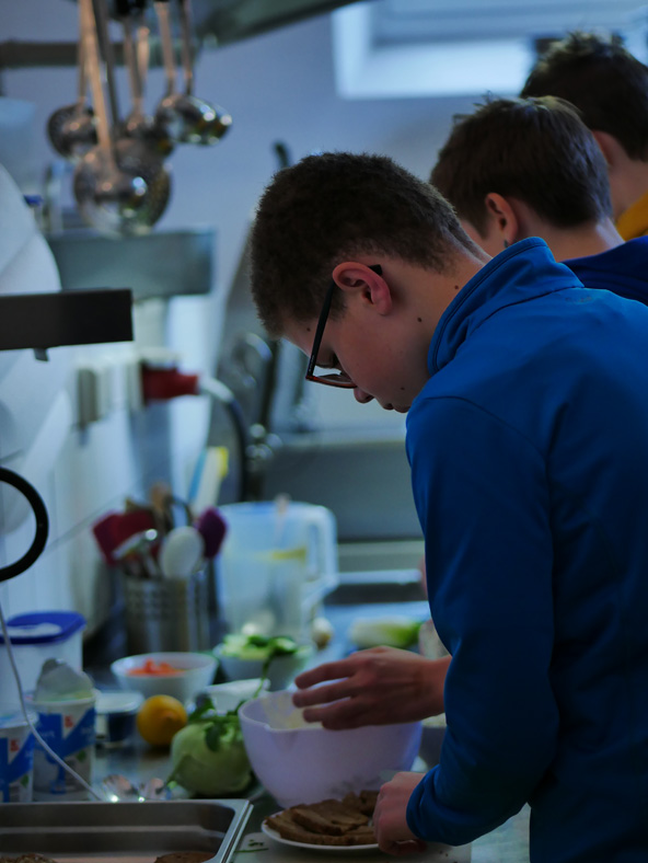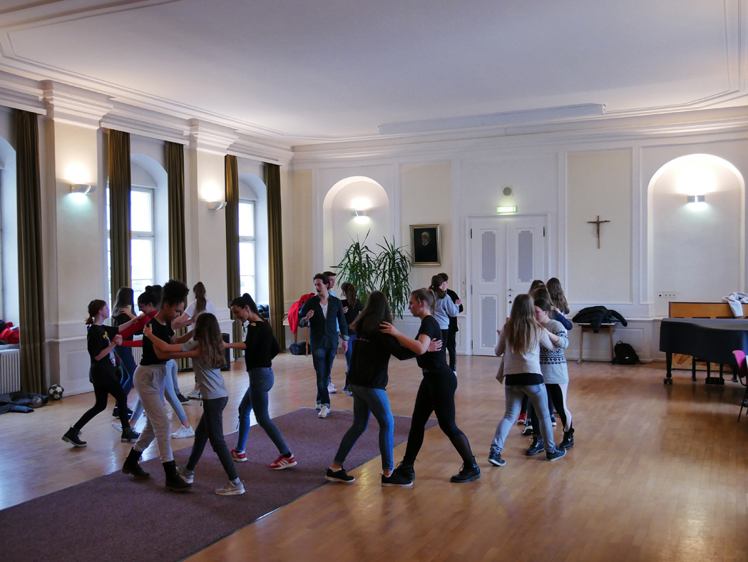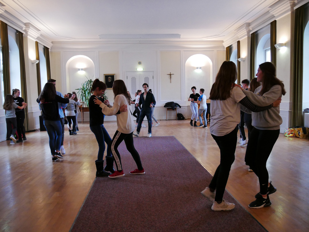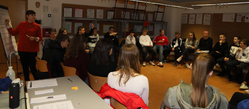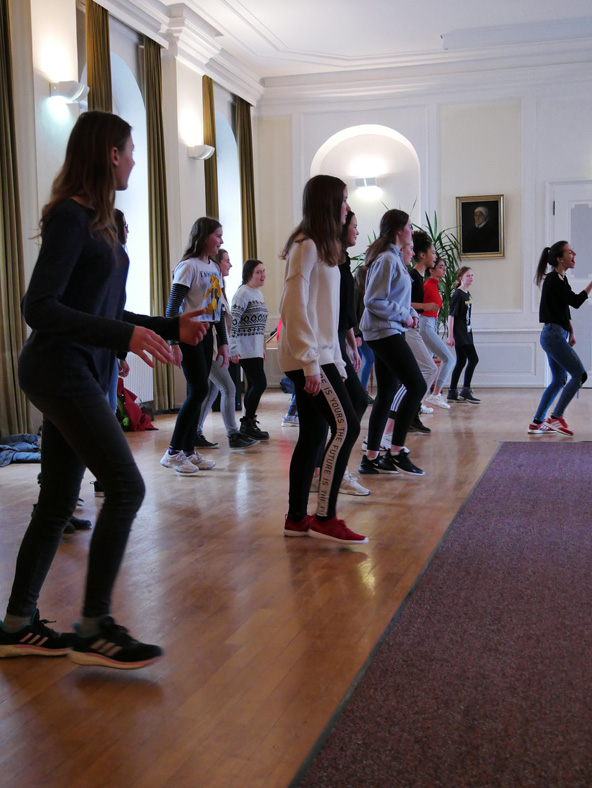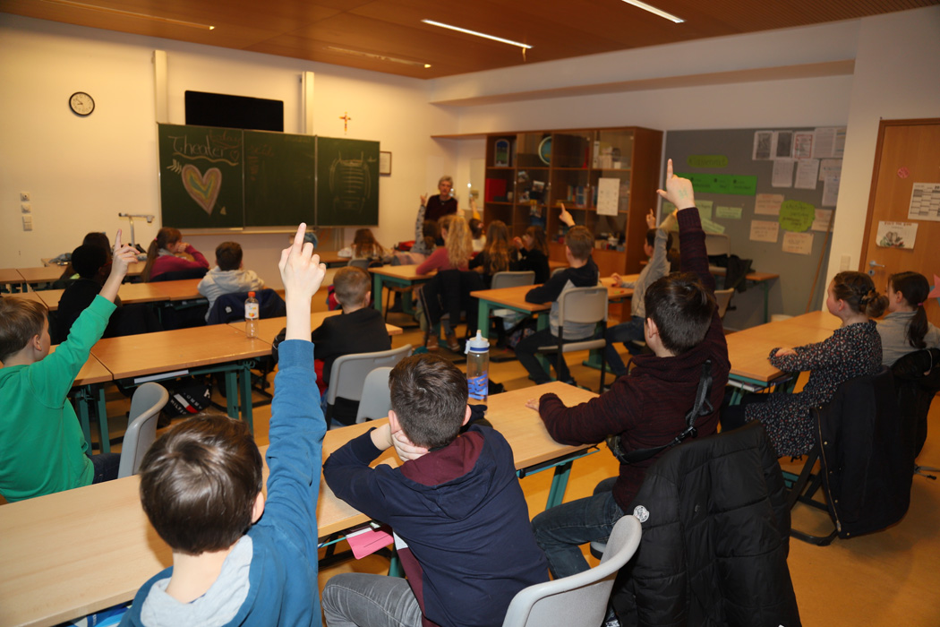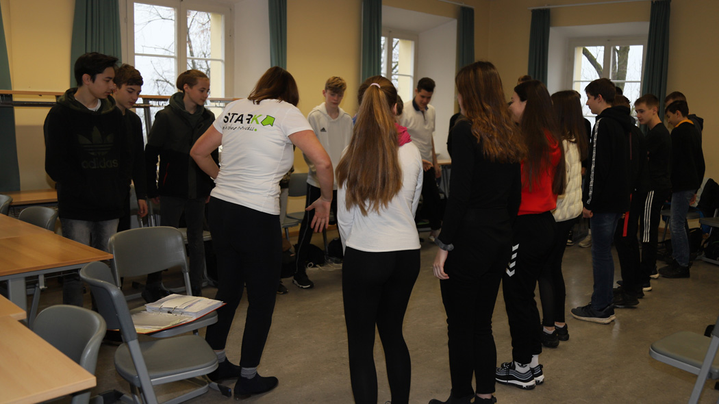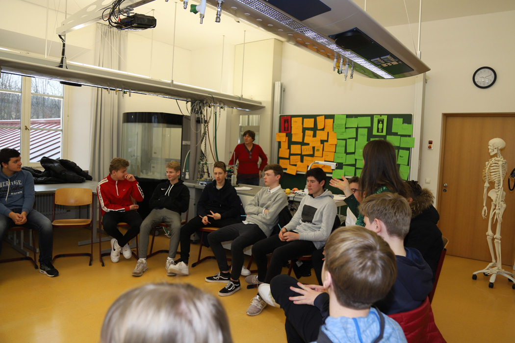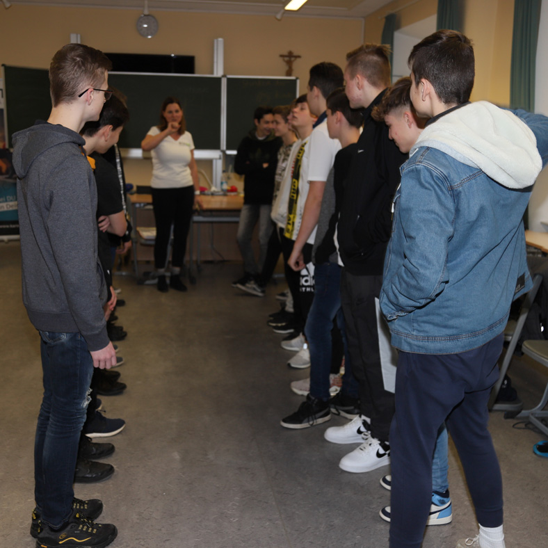 Die anschließenden Projekte förderten in vielen Klassen das faire Miteinander, die Selbstachtung und die seelische und körperliche Gesundheit, beispielsweise durch Kurse in QiGong, Selbstverteidigung, Tanzen, Ernährungslehre oder Klassenmaßnahmen wie „Fairnetzen“ und „Maßhalten“. In den 5. Klassen stand der gesamte Tag im Zeichen Astrid Lindgrens und endete mit einem Besuch der Aufführung „Karlsson vom Dach“ im Stadttheater. Die 8. Klassen konnten unter der Leitung von Antonia Schwarz in die Tanzwelt hineinschnuppern und lernten die Grundschritte von Discofox und Walzer, stärkten sich an selbst zubereiteten Speisen, betreut von Frau Inge Zacher, und nahmen an einem Projekt zur Mobbingprävention bei der Familienteamtrainerin Karin Feilmeier teil. Sie zeigte den Schülerinnen und Schülern, dass man auch ganz „ohne Muckis“ stark sein kann. Die Oberstufe hatte Gelegenheit zur Berufs- und Studienorientierung beim Besuch einer Vorlesung an der Uni oder eines geeigneten Ausbildungsbetriebs.