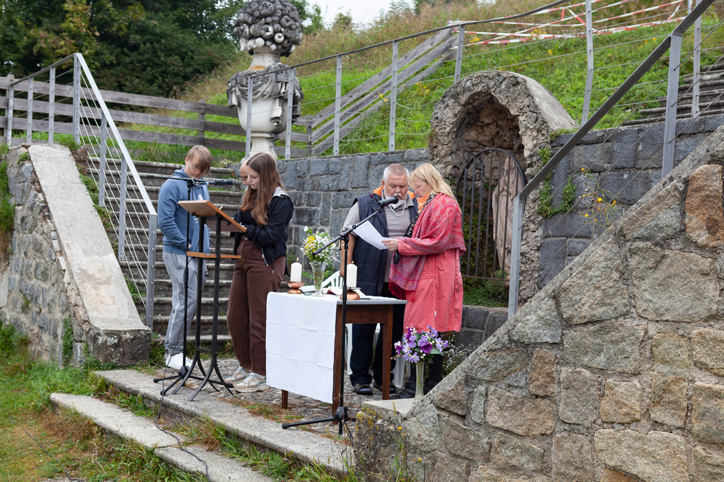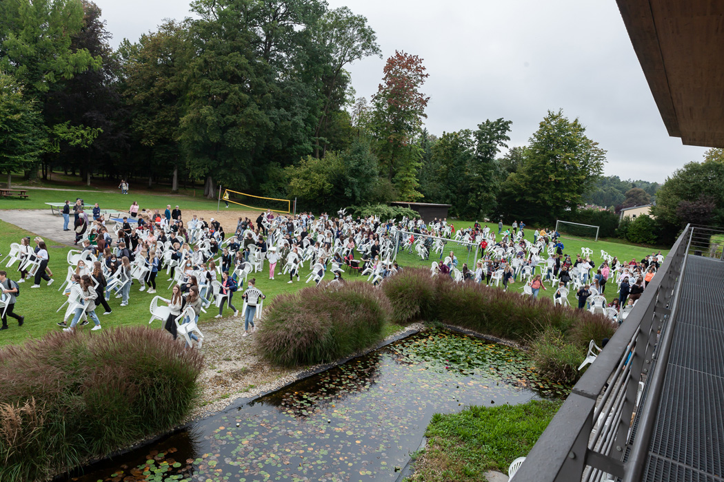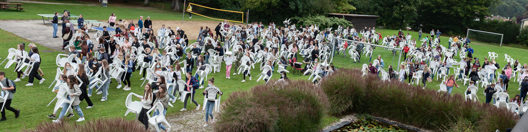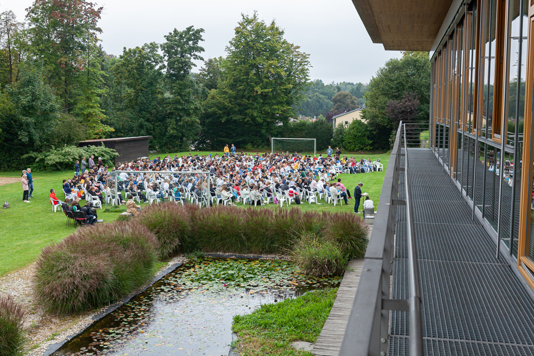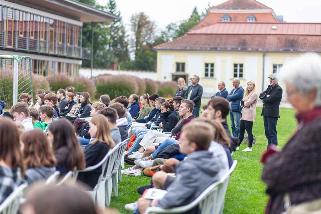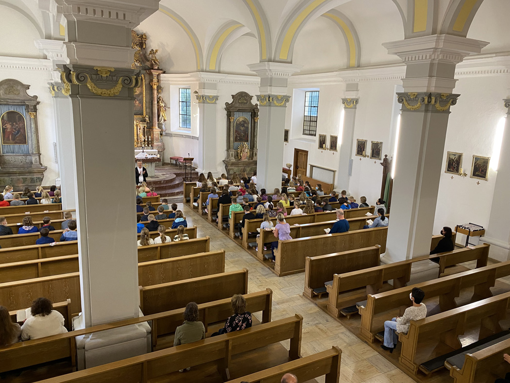 Ein Höhepunkt des Anfangsgottesdienstes war die Segnung der Kinder durch ihre TutorInnen. Dazu durften sie nach vorne kommen und sich das Kreuzzeichen – wegen Corona natürlich ohne direkten Körperkontakt – abholen. Auch die Eltern waren bei der Feier willkommen, die von Margit Weinberger und Christoph Rose musikalisch umrahmt wurde. Für die SchülerInnen der 5. bis 12. Klassen gab es als religiösen Einstieg ins neue Schuljahr am selben Tag einen extra Gottesdienst im Freien, vorbereitet von Monika Fecher und Bernhard Haberl und musikalisch umrahmt von einem kleinen Chor unter der Leitung von Claudia Seibold.