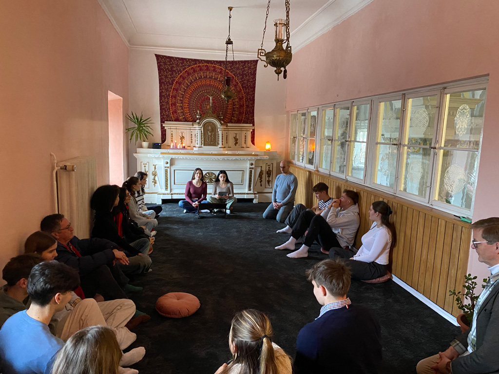 Der Schulalltag ist manchmal eine Herausforderung, geprägt von Anstrengungen und Stress, auch im schönen Schloss Freudenhain. Um dem entgegenzuwirken und der Schulfamilie einen Ort der Entspannung zu bieten, hat das P-Seminar „Meditation” der Q12 unter der Leitung von Religionslehrer André Urbanczyk am Auersperg-Gymnasium einen Ort der Entspannung und Ruhe geschaffen. Als der Raum letzten Donnerstag feierlich eingeweiht wurde, waren neben den Schülerinnen und Schülern des P-Seminars auch die Schulleitung, die SMV und die Religionslehrkräfte anwesend.