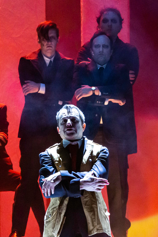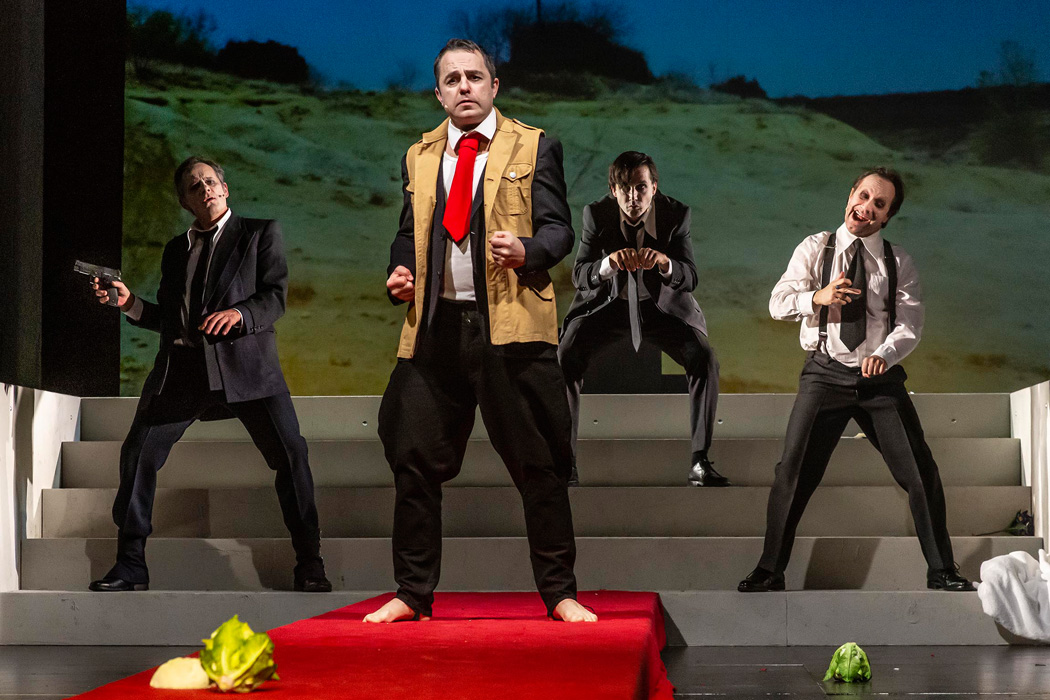 Noch vor der Premiere am 8.2. durfte die gesamte Oberstufe am 4.2. mit ihren Deutschlehrern eine Aufführung des epischen Stücks "Der aufhaltsame Aufstieg des Arturo Ui" von Bertolt Brecht am Passauer Stadttheater ansehen. Das Werk stammt von 1941 und stellt den Aufstieg Adolf Hitlers bis 1938 als Parabel dar. Das Landestheater Niederbayern hat uns freundlicherweise einige Fotos zur Verfügung gestellt.