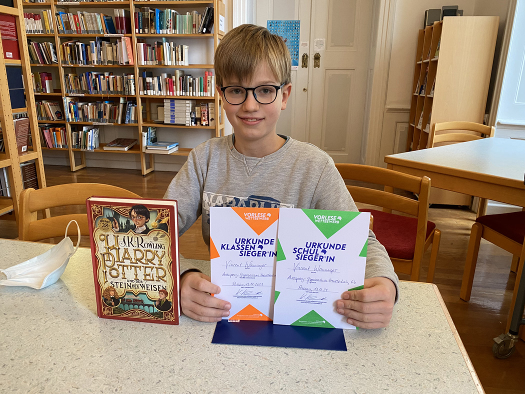Vincent Wanninger gewinnt Vorlesewettbewerb der 6. Klassen