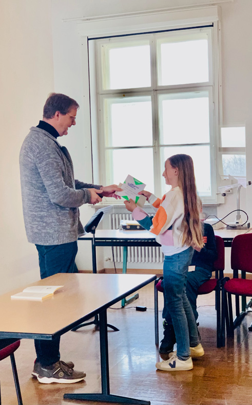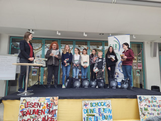 Neben den Deutschlehrerinnen der Klassen durfte Vincent Wanninger, der Sieger aus dem letzten Jahr, mitentscheiden. Zudem wurde die Jury im zweiten Teil durch den Schulleiter Herrn OStD Johannes Fuchs verstärkt, der den jungen Leserinnen und Lesern zu ihrem Sieg gratulierte. Neben Johanna Tröster kam Tizia Pflanzer aus der 6a auf den zweiten Platz und Luis Marques Nirschl aus der 6d auf den dritten Platz. Alle acht Gewinner freuten sich über eine Urkunde des Börsenvereins des deutschen Buchhandels, der den Wettbewerb initiiert, und einen Gutschein der Buchhandlung Pustet, der wir herzlich für die freundliche Unterstützung danken.