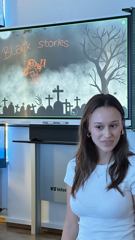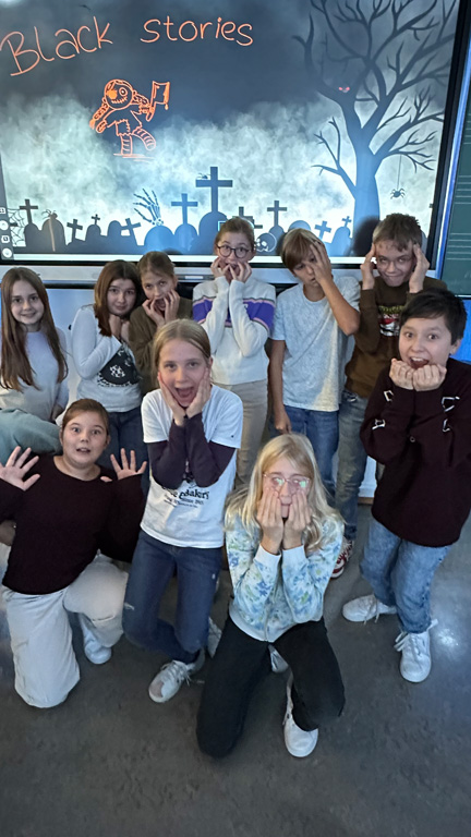 Im nächsten Bereich der Veranstaltung wurde es rätselhaft: Die Kinder durften einige gruselige „Black Stories“ erraten. Durch Fragen und cleveres Kombinieren kamen sie Schritt für Schritt der Auflösung näher, was vor allem für Spaß und Spannung sorgte.