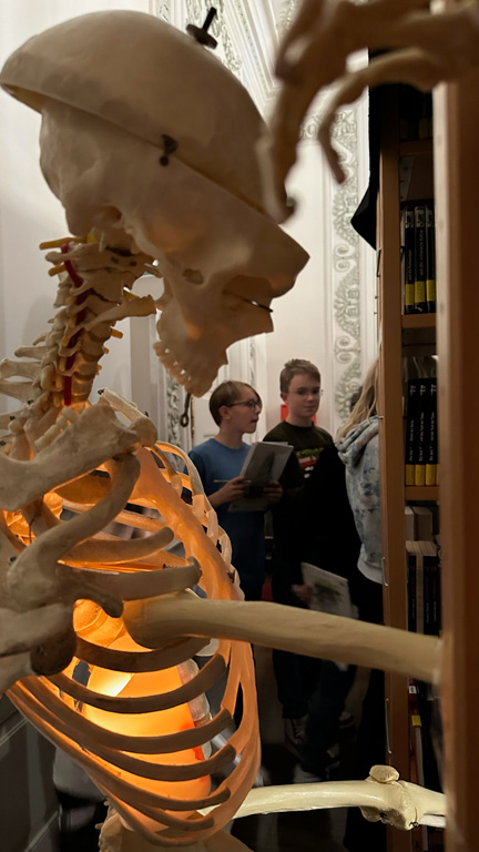 Schlussendlich wurde den Schülern die Schulbibliothek nähergebracht, die an diesem Tag in eine düstere Atmosphäre gehüllt war. Die 6.-Klässler erkundeten die Bücherregale und enthüllten ein spannendes Quiz— natürlich passend zum Gruselthema. Dies soll die Kinder dazu anregen, öfter die Bibliothek aufzusuchen, um viele spannende Bücher entdecken zu können. Später durften die Schüler-innen noch die selbst gebackenen Muffins der P-Seminar Mitglieder genießen.