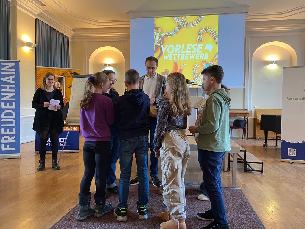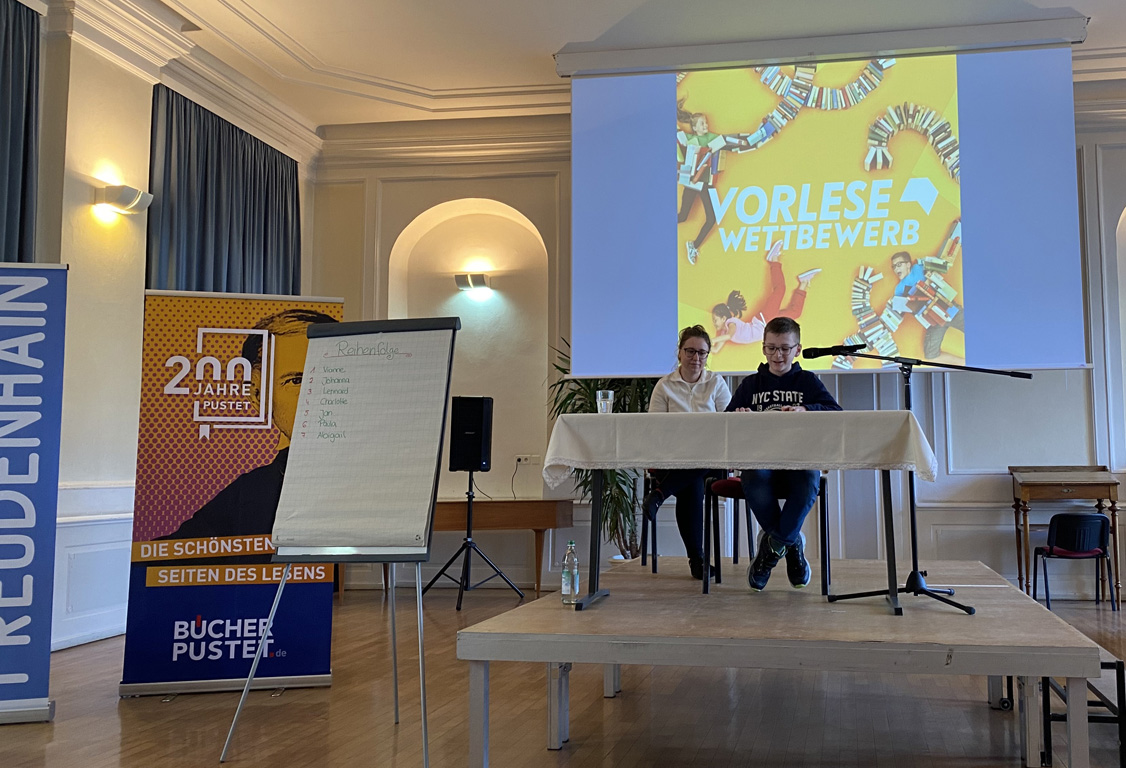 Am Samstagvormittag, den 22. Februar, verwandelte sich unser Festsaal in eine Bühne für junge Vorlesetalente. Der Vorsitzende des Stadtjugendrings, Tobias Waldherr – vielen bekannt als Praktikant und Betreuer in der OGT –, führte mit viel Charme durch das Programm. Sieben Schulsiegerinnen und Schulsieger aus Passau, darunter unsere eigene Schulsiegerin Paula Jacobi aus der Klasse 6a, stellten ihr Können unter Beweis.