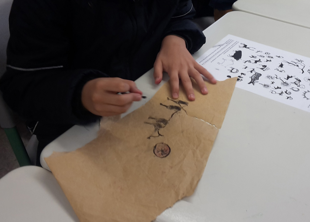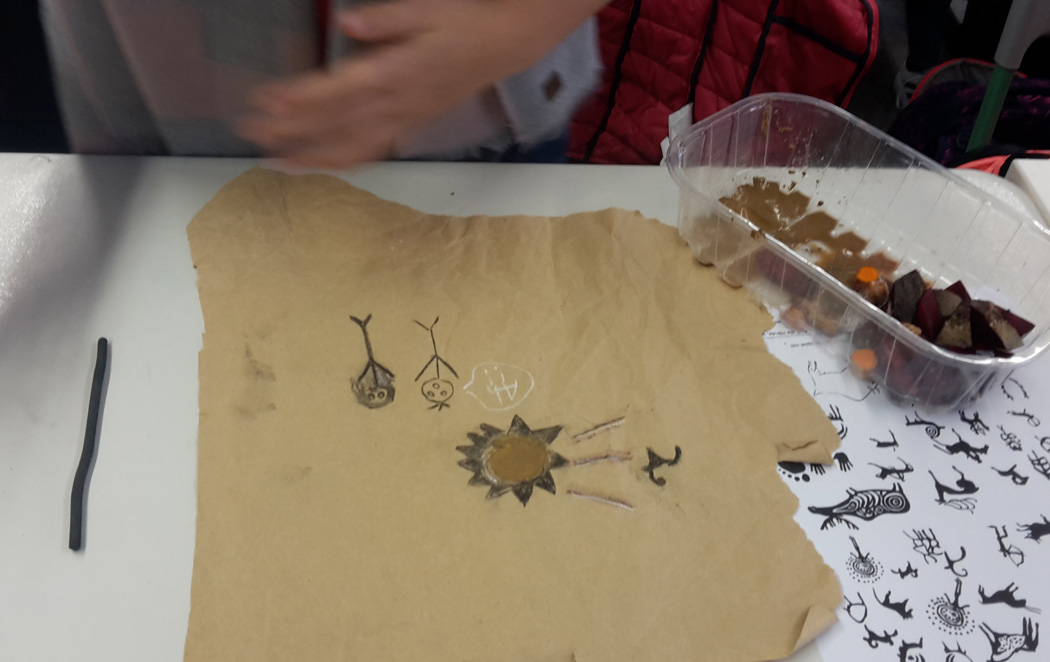 Eine Reise in die Vergangenheit unternahm der Kunstkurs 5 b/c und erstellte nach dem Vorbild von Bildern aus der Höhle von Lascaux eigene "steinzeitliche" Höhlenmalereien . Zum Malen und Zeichnen gab es diesmal aber nicht Pinsel und Bleistift, sondern Kreide, Kohle, Kurkuma, Tonerde und Rote Bete. Beim bunten Experimentieren gewannen die Steinzeitforscher der 5b/c nicht nur spannende Erkenntnisse zu Deckkraft, Mischbarkeit und Farbtönen der Naturfarben, sondern stellten auch fest, dass Kurkuma "eklig" bzw. "lecker" riecht (O-Töne Schüler) und ziemlich gelbe Finger macht :-)!
