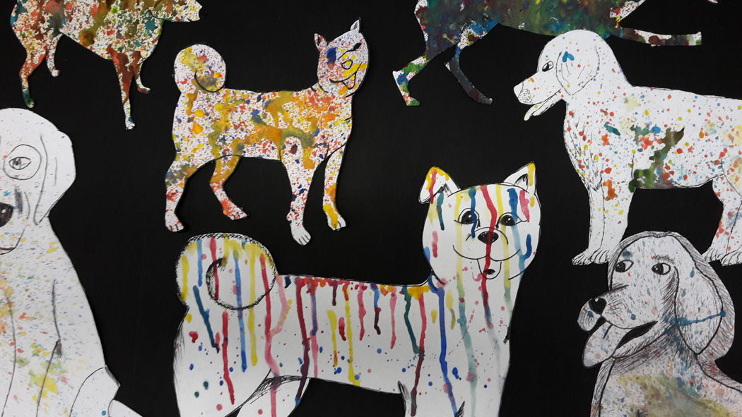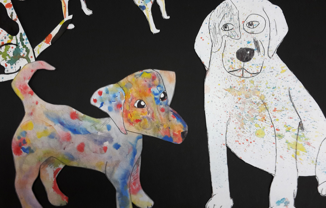 Bunte Hunde im Kunstunterricht der Kl. 7a