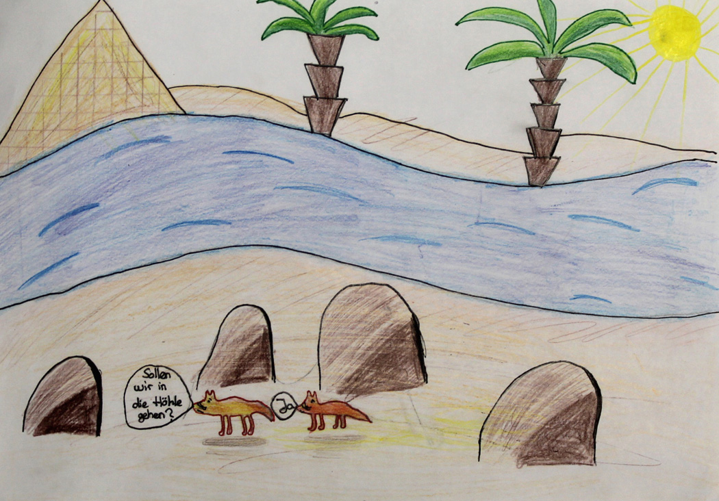 Die Schüler/-innen der Klassen 5 b/c machen vor, wie man auch von daheim aus eine Gedankenreise unternehmen kann: Unterwegs plauderten sie mit einem ägyptischen Einheimischen, schlenderten durch die Dörfer am Nil, wurden auf einem Kamelritt fast seekrank und versuchten sich im Lesen altägyptischer Wegweiser ... Text und Fotos: Heike Winter