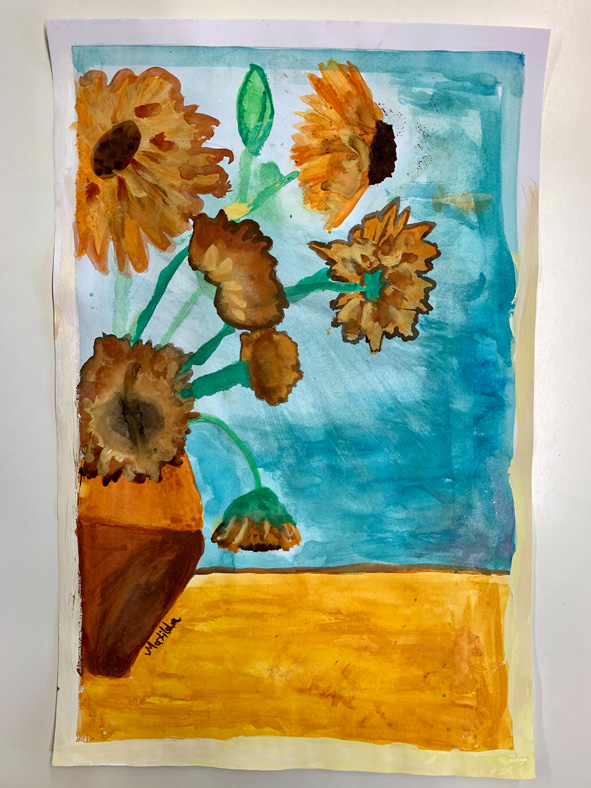 Vincent van Goghs Sonnenblumen im Kunstunterricht der Klassen 6ac und 6bd