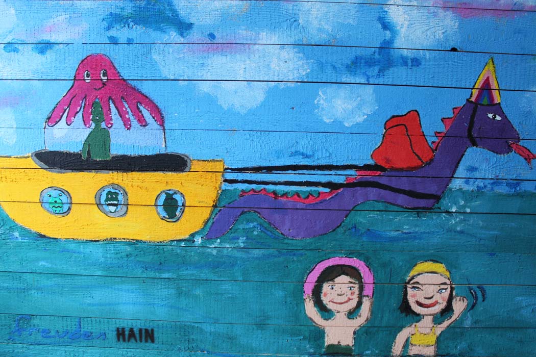 Seit nunmehr 27 Jahren findet an der Passauer Ortsspitze in lauschiger Sommernachtsatmosphäre das Eulenspiegel-Festival statt, mit Biergarten, Konzerten und Kabarettveranstaltungen. Damit dies auch im Corona-Jahr 2021 möglich ist, hatten die Organisatoren die Idee, die dafür nötigen Absperrungen von Passauer Künstler/-innen, Schulen und Kindergärten kreativ gestalten zu lassen. Entstanden ist eine kunterbunte Open Air-Galerie an der Ortsspitze, die noch den ganzen Juli hindurch vor Ort bewundert werden kann - ein Spaziergang lohnt sich also! Unsere jungen Künstler/-innen der verschiedenen Jahrgangsstufen hatten viel Spaß bei der phantasievollen Ausgestaltung der Holzelemente - die Motive reichten vom Seeungeheuer bis zur Passauer Goldpomeranze.