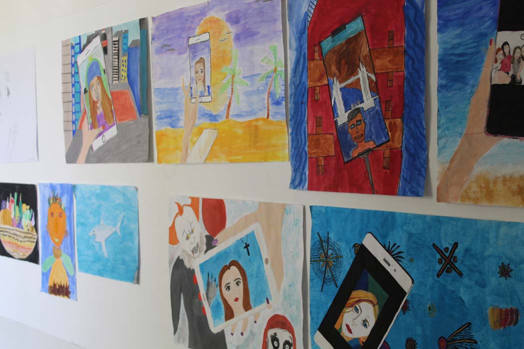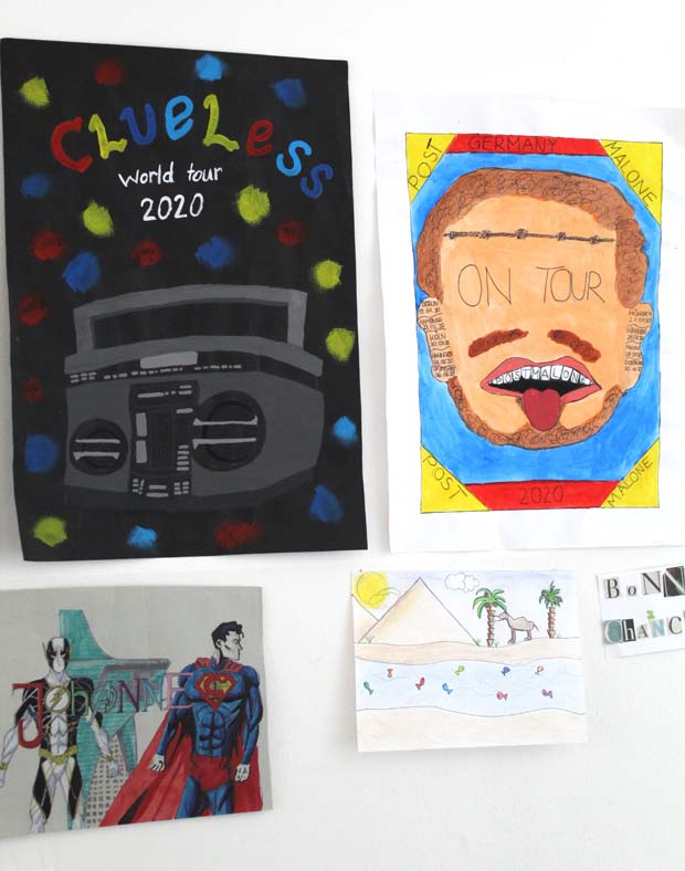 Deshalb gibt es dieses Jahr zum Schuljahresende eine kleine "Kunst to go"-Aktion: Vor dem Zeichensaal hängen nun einige der zurückgelassenen Schülerarbeiten von 2019/20 und können dort bewundert werden.