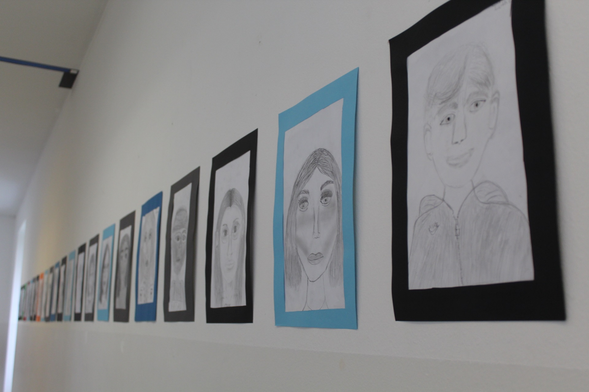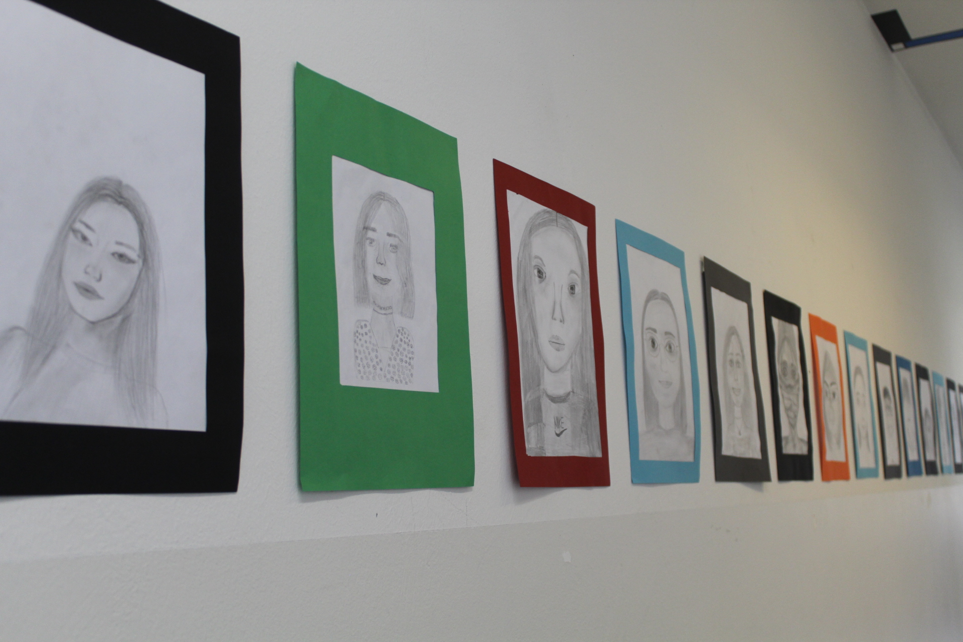 ... dass diese Methode nicht ausreicht, um ein ausdrucksstarkes Portrait zu zeichnen, stellte die Klasse 8a recht schnell bei ihren Selbstportraits fest. Deshalb beschäftigten wir uns mit Kopf- und Gesichtsproportionen und versuchten, über die genaue Beobachtung von Auge, Mund und Nase die individuellen Eigenheiten jedes Gesichts einzufangen. Die Ergebnisse kann man derzeit vor dem Zeichensaal bewundern – erkennen Sie unsere Schüler/-innen wieder? Heike Winter