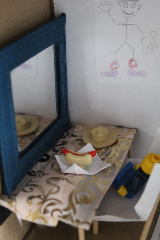 Dabei entstanden ganz unterschiedliche Essenssituationen, und für die Materialbeschaffung wurde schon mal die Spielzeugkiste geplündert. Die Ideen wurden in handlichem Päckchenformat in einer Pappbox umgesetzt und sind seit letzter Woche nun auch „live“ im Neubau zu bewundern.