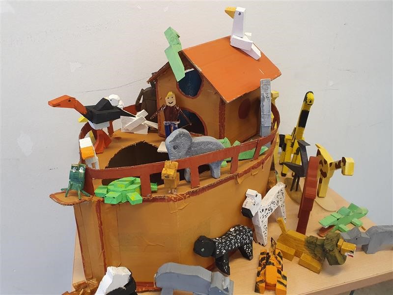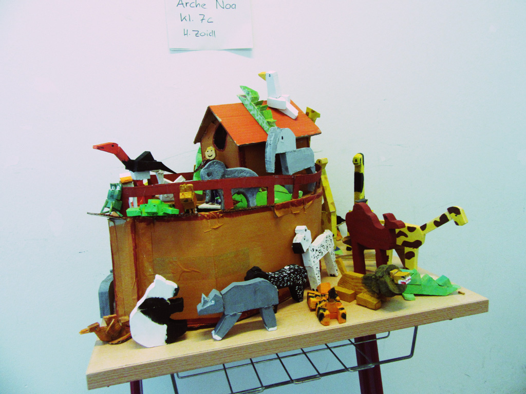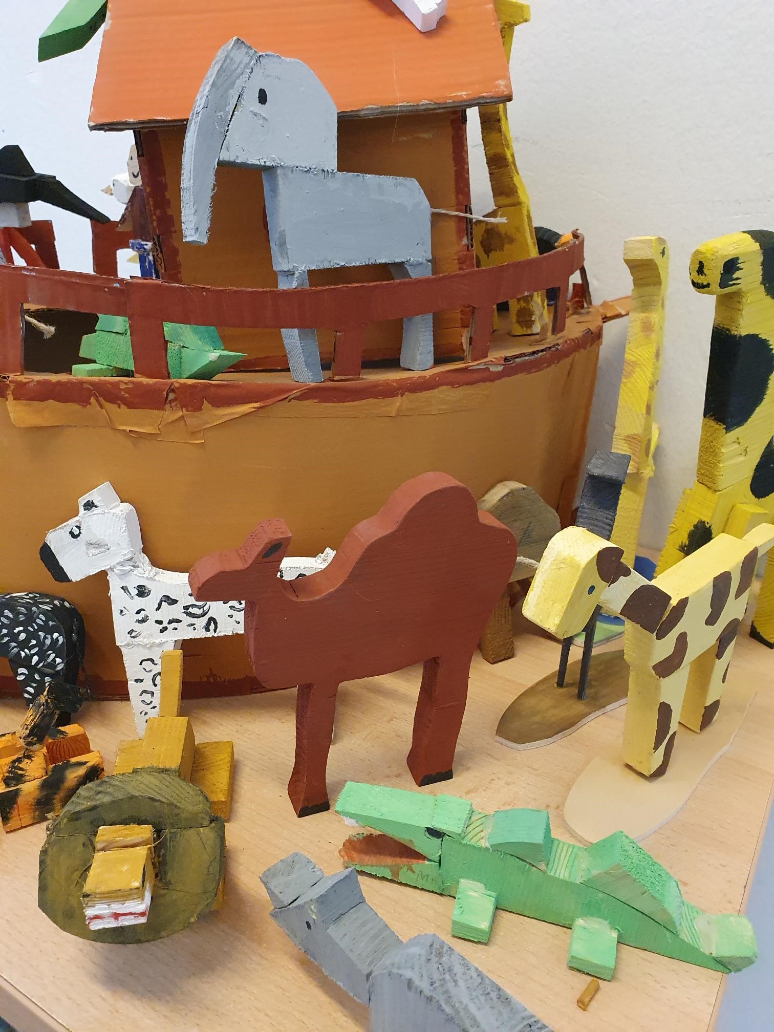 Aus Holzresten gestaltete die Klasse 7c Tiere und die berühmte Arche Noah. Dabei lernten die Schülerinnen und Schüler, ausgehend von den geometrischen Grundformen dreidimensionale Figuren zu entwickeln.