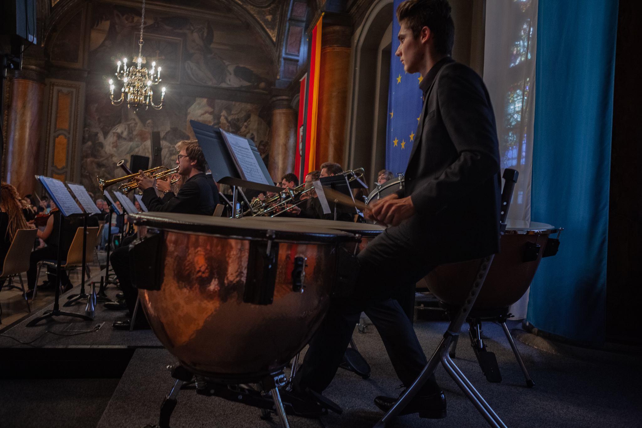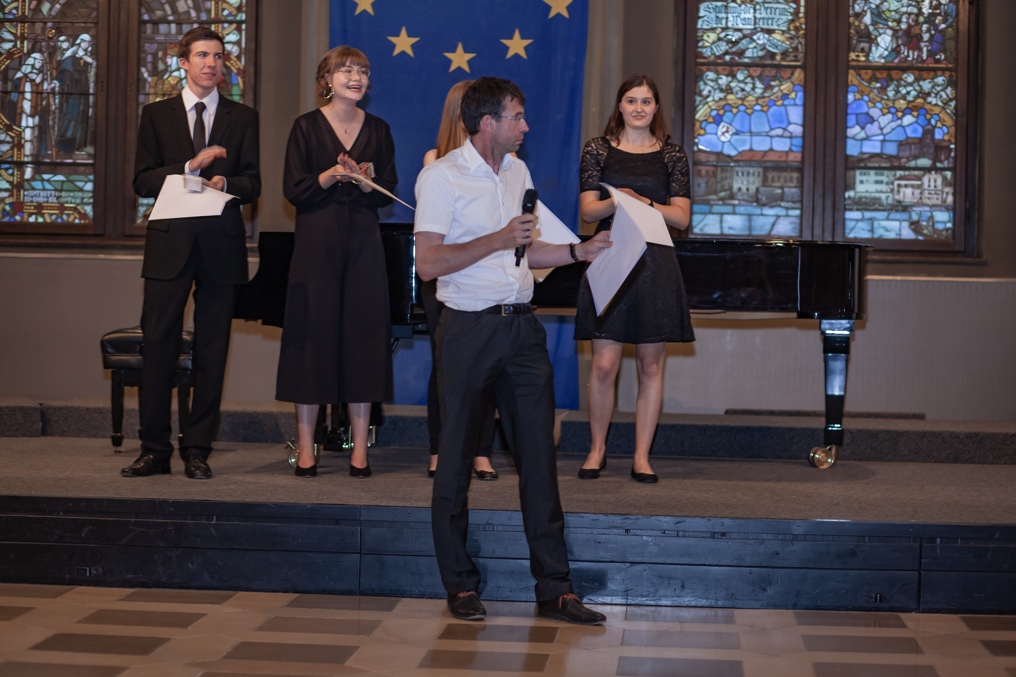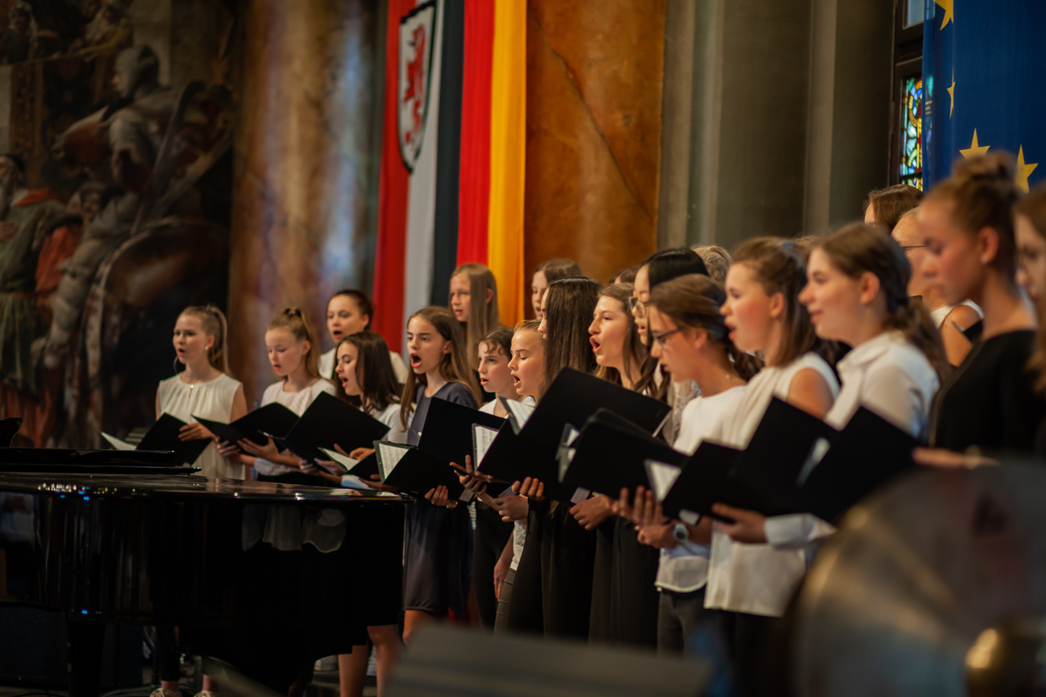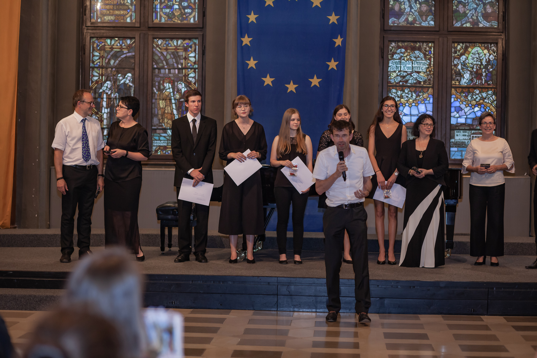 Der Schulchef verlieh den Großen Musikpreis an fünf weitere Schüler. Er würdigte Franziska Fischer, die sich in vielfältiger Weise musikalisch in das Schulleben einbrachte. Sie habe mit ihrem Violinspiel Orchester und Kammermusik bereichert und mit ihrem Streichquartett große Erfolge bei "Jugend musiziert" erzielt. Herausragende Leistungen habe sie auch im Chor gezeigt. Elisabeth Pontz könne mit ihrer klaren, analytischen Denkweise musikalische Zusammenhänge erfassen und in ihrer geschliffenen Sprache wiedergeben. Sie verfüge zudem über ausgezeichnete musikalische Fähigkeiten. Im Chor sei sie eine erfahrenen Sängerin, die auch in kleinen Ensembles zu begeistern und überzeugen weiß. Marie Groß sei ebenfalls eine hervorragende Sängerin, die auch andere zu Chor- und Ensemblearbeit animiere. Sie habe seit der fünften Klasse in Musikgruppen und Projekten mitgewirkt und auch Erfolge bei "Jugend musiziert" gefeiert. Elena Breinfalk überzeuge als herausragende Pianistin, sagte Zitzl. Zahlreiche Meisterkurse belegten die hohe Qualität ihres musikalischen Könnens. Sie setze ihre vielseitige musikalische Begabung in großem Umfang und auf höchstem Niveau ein. Martin Schmid habe in vorbildlicher Weise das Orchester unterstützt und Konzerte bereichert. Er habe seine Aufgabe als Konzertmeister in vollster Zufriedenheit und mit großem Engegement weit über das übliche Maß der Probenarbeit erfüllt. Außerdem habe er in Projekten und als erster Geiger in Kammermusiken mitgewirkt sowie mit seinem Streichquartett beim Landeswettbewerb "Jugend musiziert" geglänzt, sei humorvoll und erfrischend.