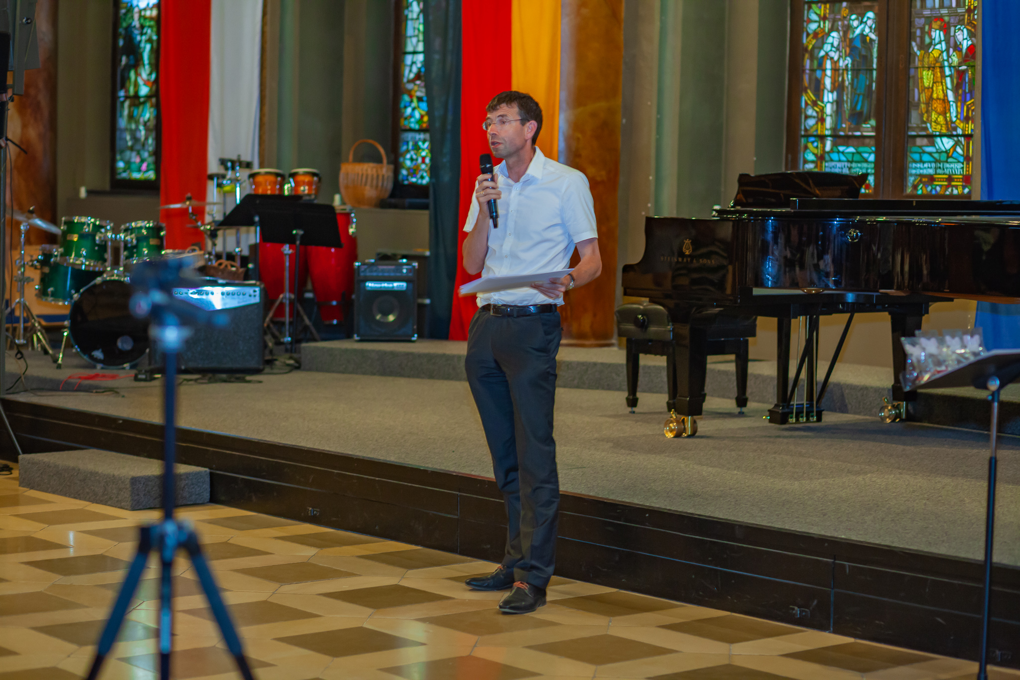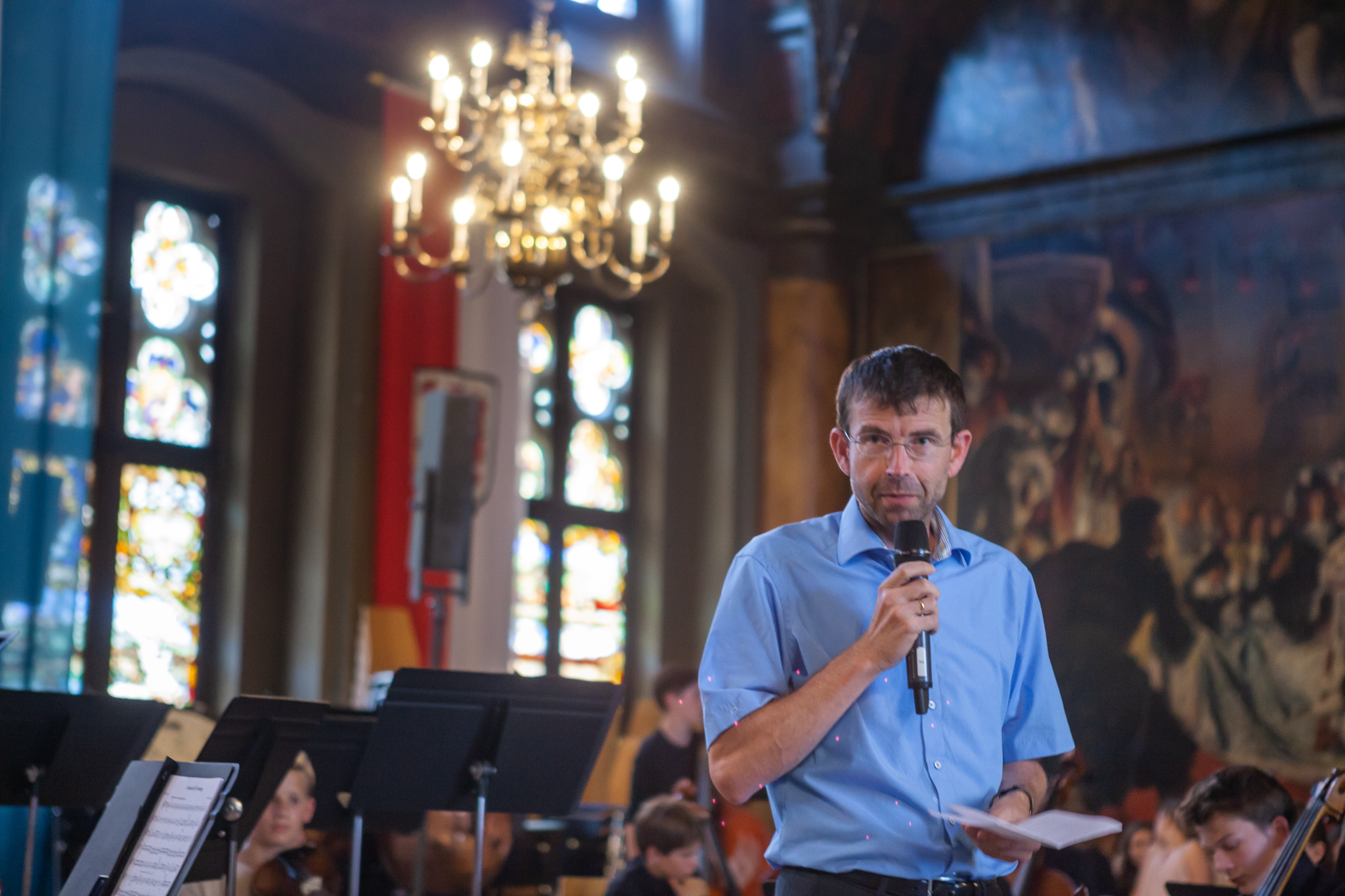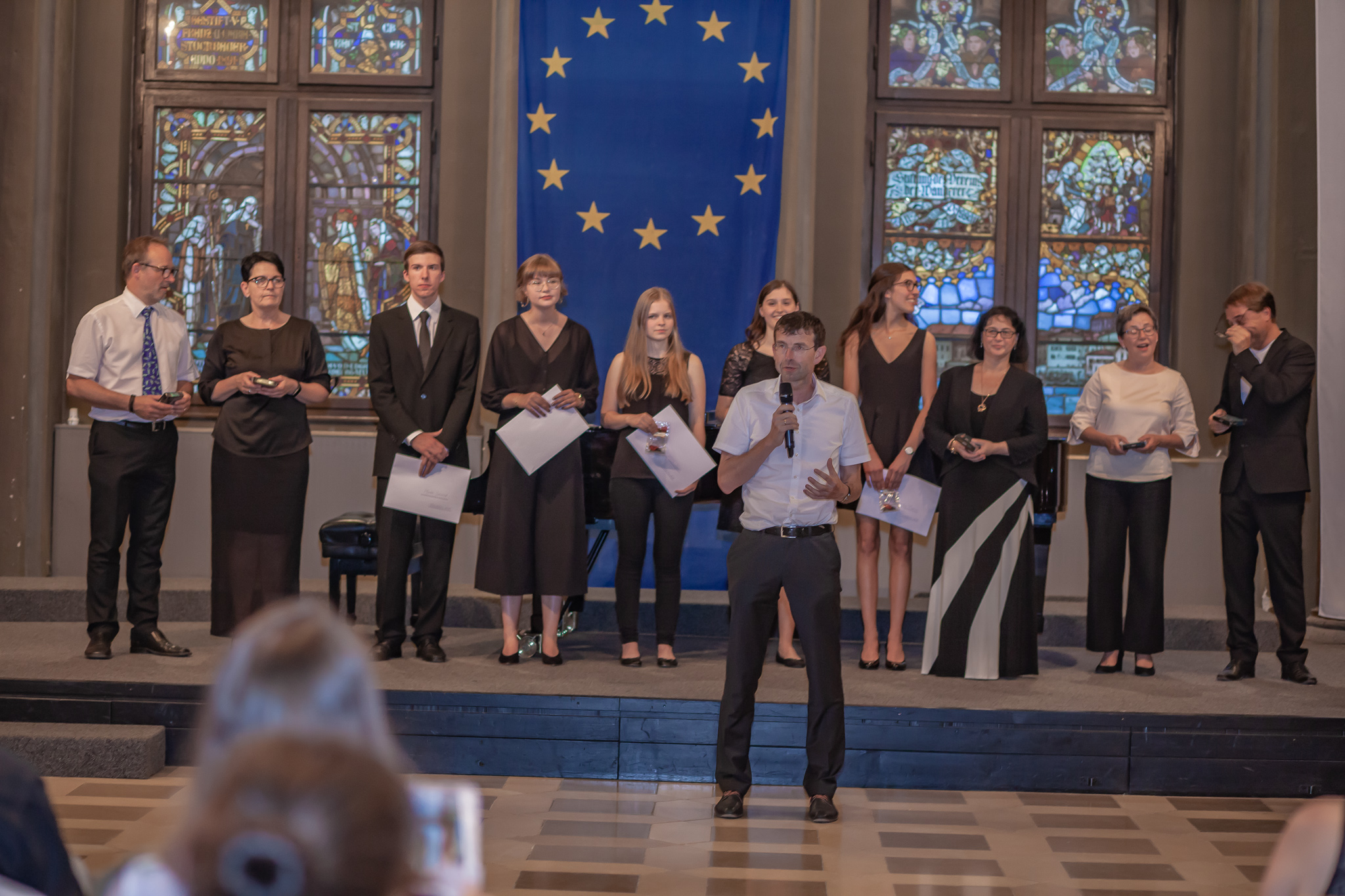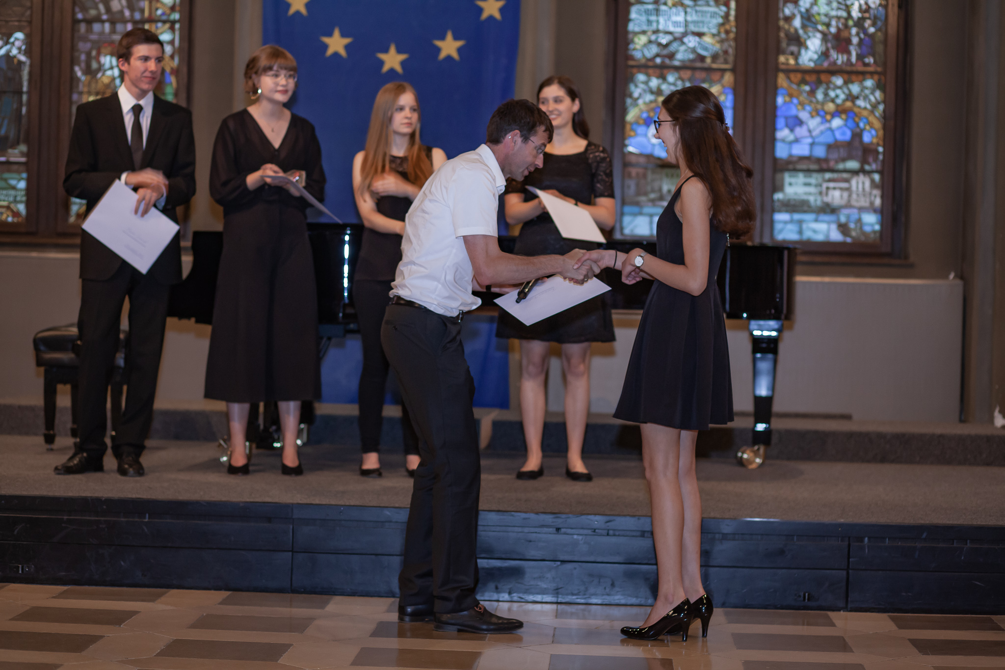 Der Schulchef verlieh den Großen Musikpreis an fünf weitere Schüler. Er würdigte Franziska Fischer, die sich in vielfältiger Weise musikalisch in das Schulleben einbrachte. Sie habe mit ihrem Violinspiel Orchester und Kammermusik bereichert und mit ihrem Streichquartett große Erfolge bei "Jugend musiziert" erzielt. Herausragende Leistungen habe sie auch im Chor gezeigt. Elisabeth Pontz könne mit ihrer klaren, analytischen Denkweise musikalische Zusammenhänge erfassen und in ihrer geschliffenen Sprache wiedergeben. Sie verfüge zudem über ausgezeichnete musikalische Fähigkeiten. Im Chor sei sie eine erfahrenen Sängerin, die auch in kleinen Ensembles zu begeistern und überzeugen weiß. Marie Groß sei ebenfalls eine hervorragende Sängerin, die auch andere zu Chor- und Ensemblearbeit animiere. Sie habe seit der fünften Klasse in Musikgruppen und Projekten mitgewirkt und auch Erfolge bei "Jugend musiziert" gefeiert. Elena Breinfalk überzeuge als herausragende Pianistin, sagte Zitzl. Zahlreiche Meisterkurse belegten die hohe Qualität ihres musikalischen Könnens. Sie setze ihre vielseitige musikalische Begabung in großem Umfang und auf höchstem Niveau ein. Martin Schmid habe in vorbildlicher Weise das Orchester unterstützt und Konzerte bereichert. Er habe seine Aufgabe als Konzertmeister in vollster Zufriedenheit und mit großem Engegement weit über das übliche Maß der Probenarbeit erfüllt. Außerdem habe er in Projekten und als erster Geiger in Kammermusiken mitgewirkt sowie mit seinem Streichquartett beim Landeswettbewerb "Jugend musiziert" geglänzt, sei humorvoll und erfrischend.