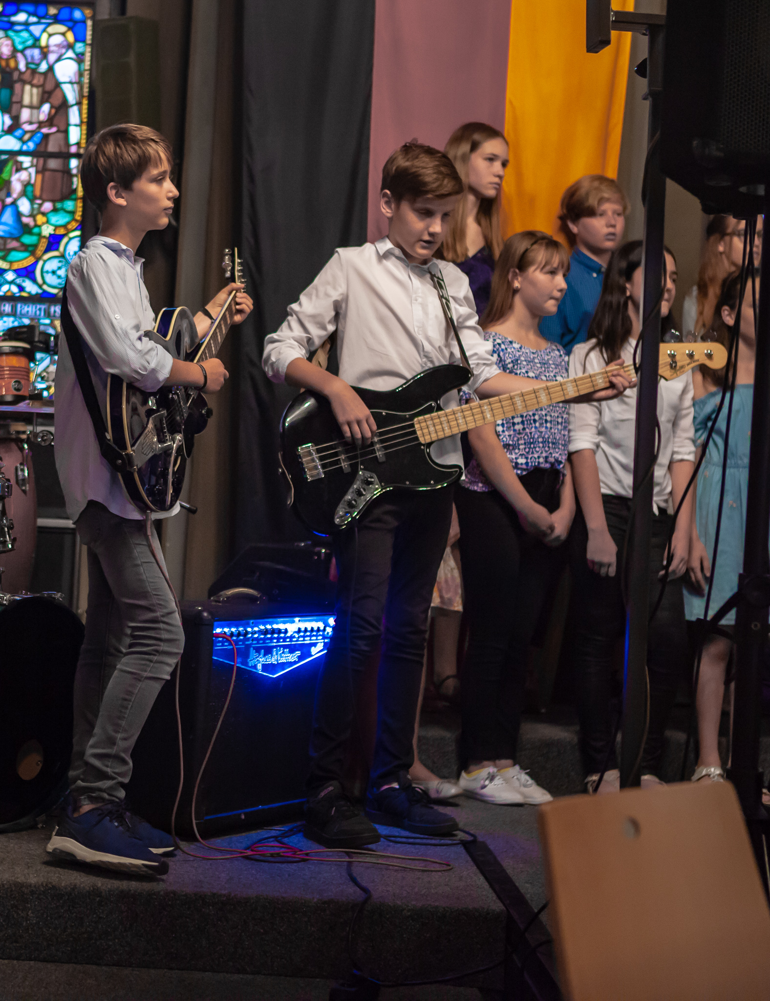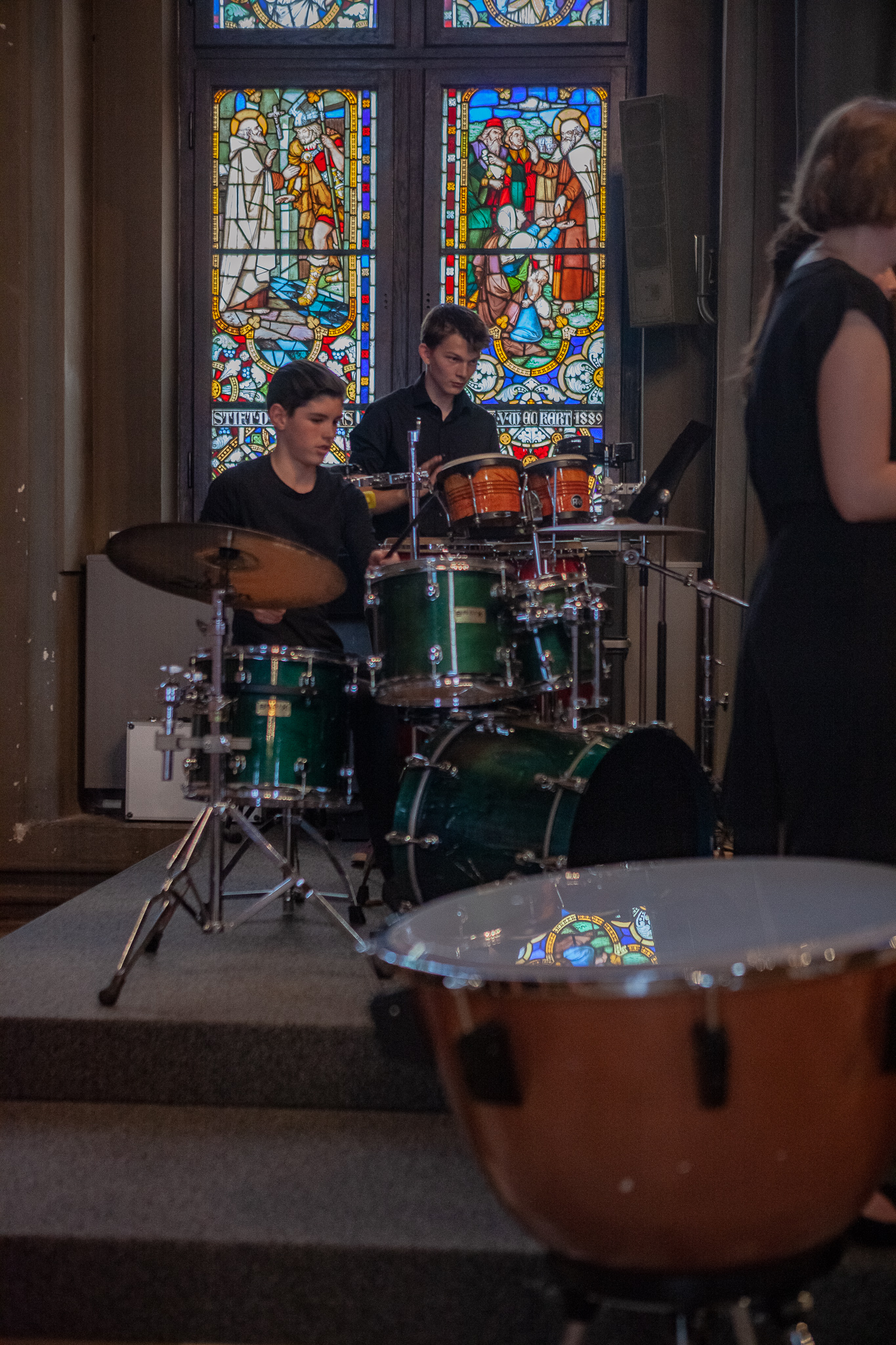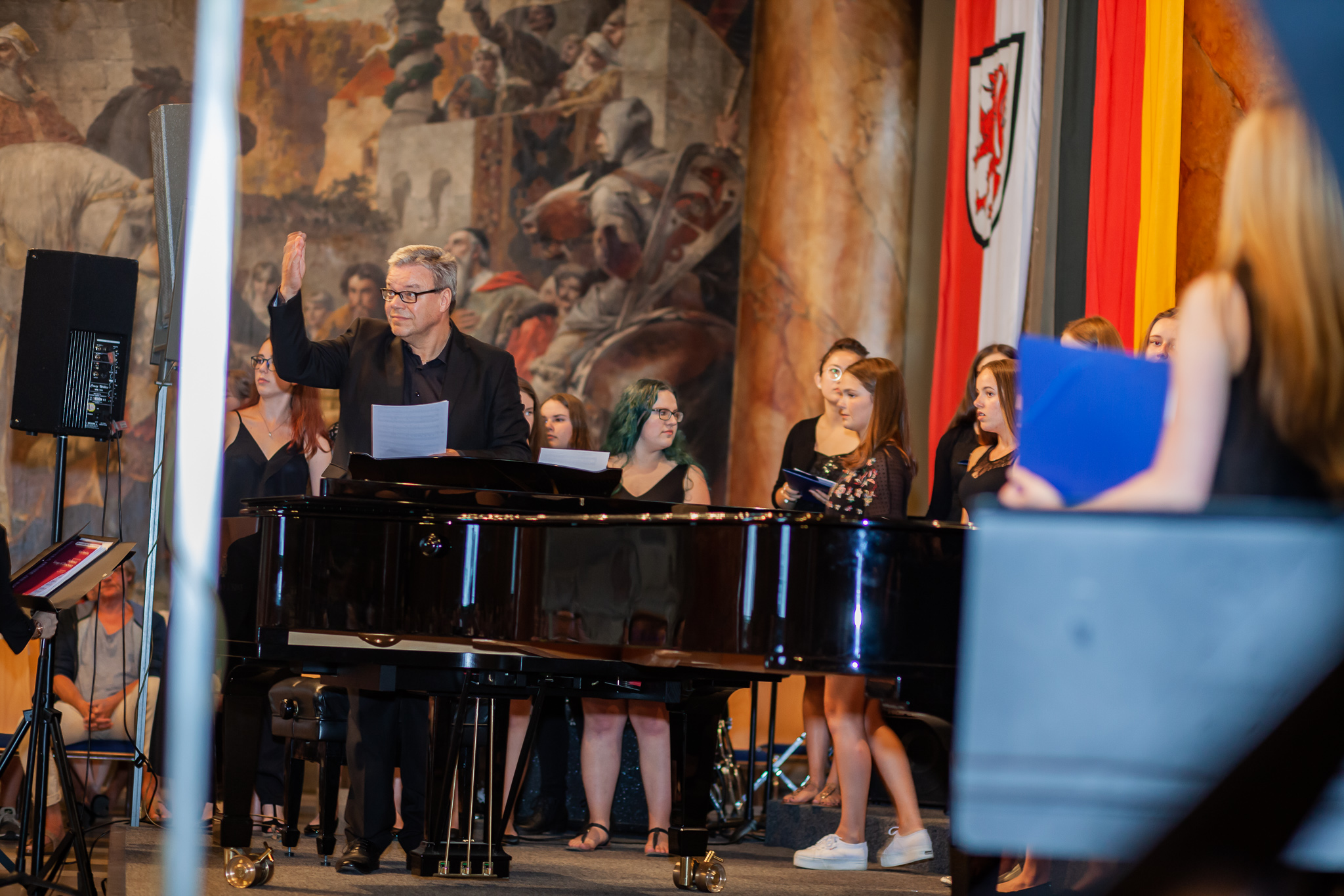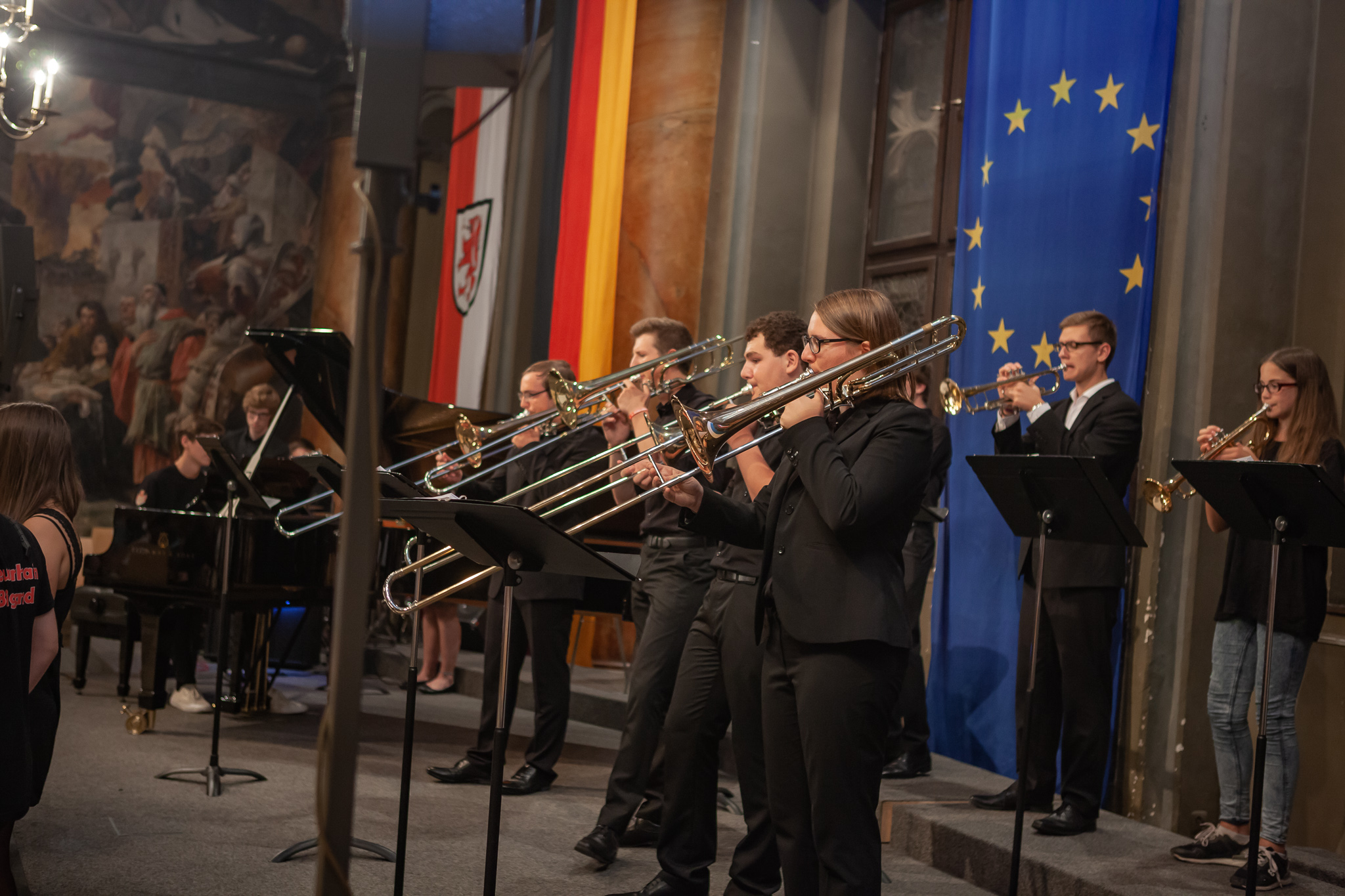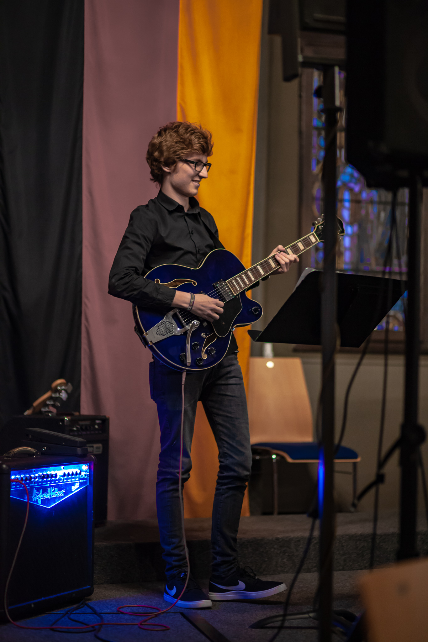 Glanzpunkte setzte am zweiten Abend auch das Vokalensemble der Q11 unter Leitung von Claudia Seibold mit einem modernen Titel und der Mittelstufenchor von Claudia Seibold mit "I have a dream" und einem Renaissance-Stück. Das Trio Philipp Kohl (Trompete), Ana-Laia König (Violine) und Jiewen Zhuang (Klavier) erntete ebenfalls stürmischen Applaus. Den fuhr auch die Bigband unter der Leitung von Christoph Rose ein, die auch mit Improvisationen die Wände zum Wackeln brachte.