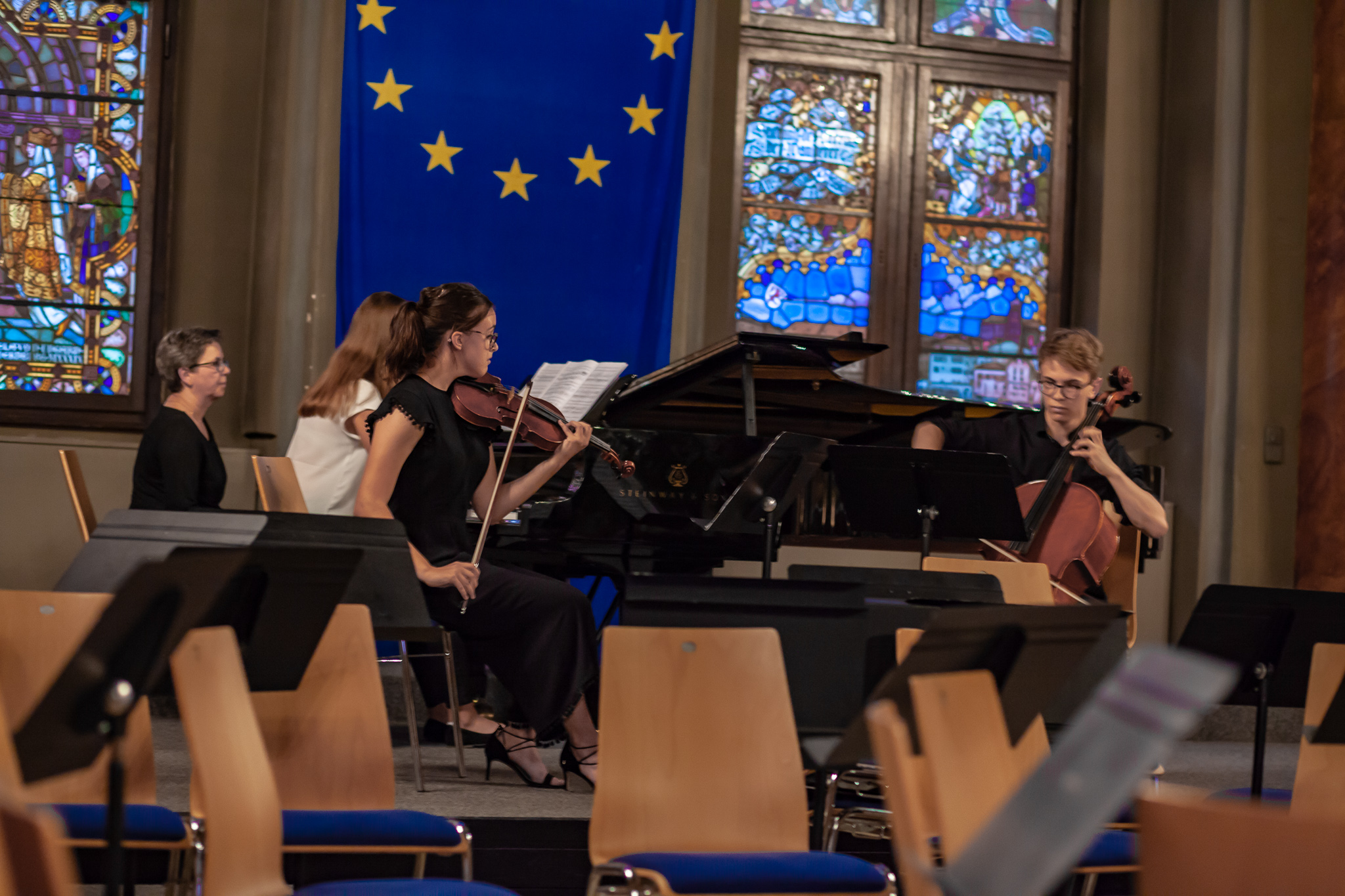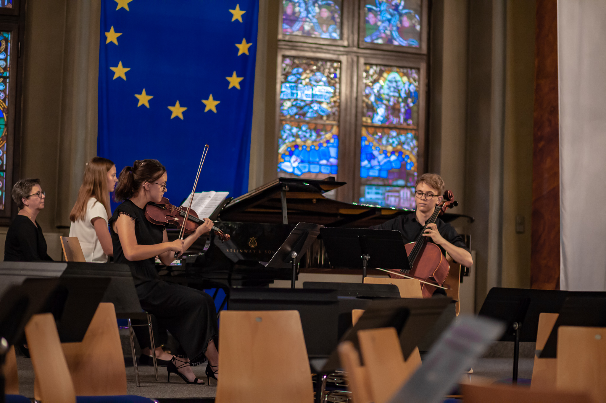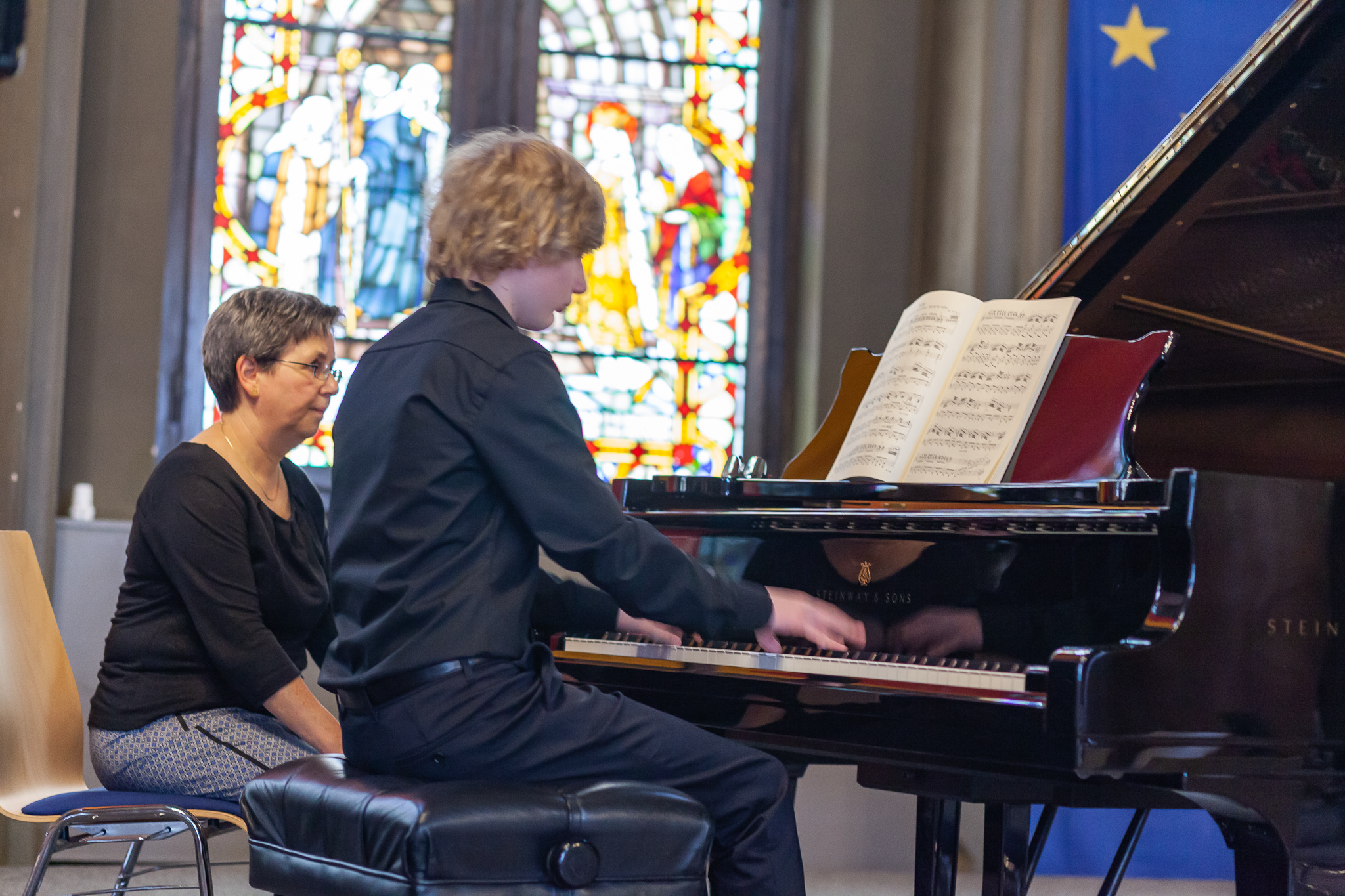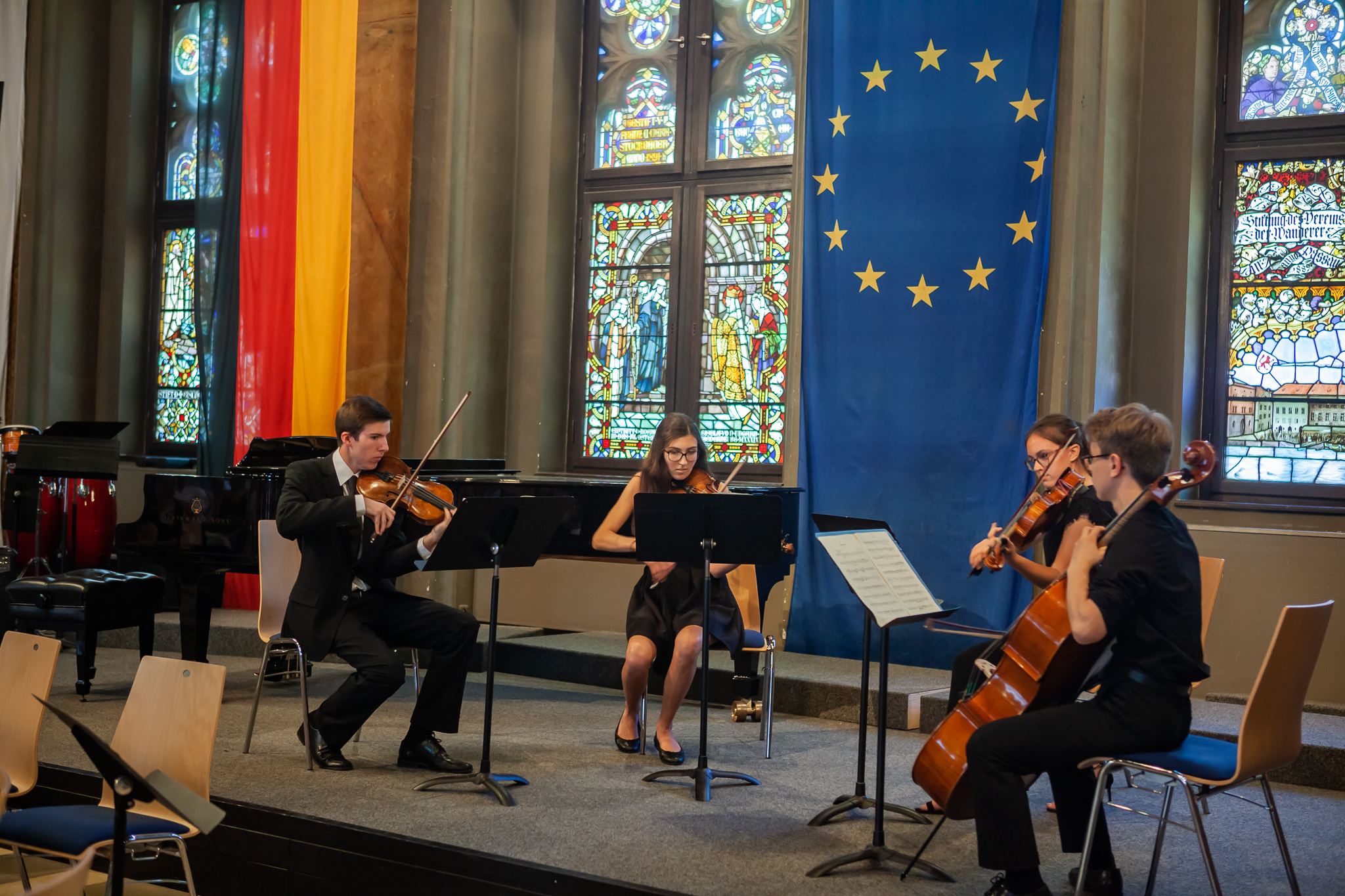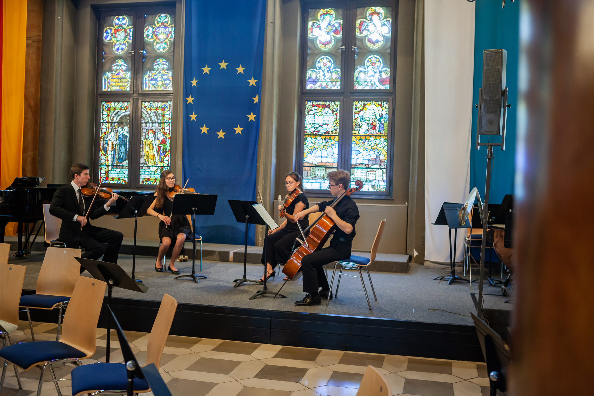 Faszierende Kostproben gab es von Franzska Fischer und Martin Schmid, die zuvor an der Violine mit einem Streichquartett von Dvorak begeisterten, zu dem auch Ana-Laia König (Viola) und Korbinian Seibold (Cello) beitrugen, und Marie Groß, die "Flow my tears away" sang, sowie Elene Breinfalk, die eine Beethoven-Sonate am Klavier vortrug.