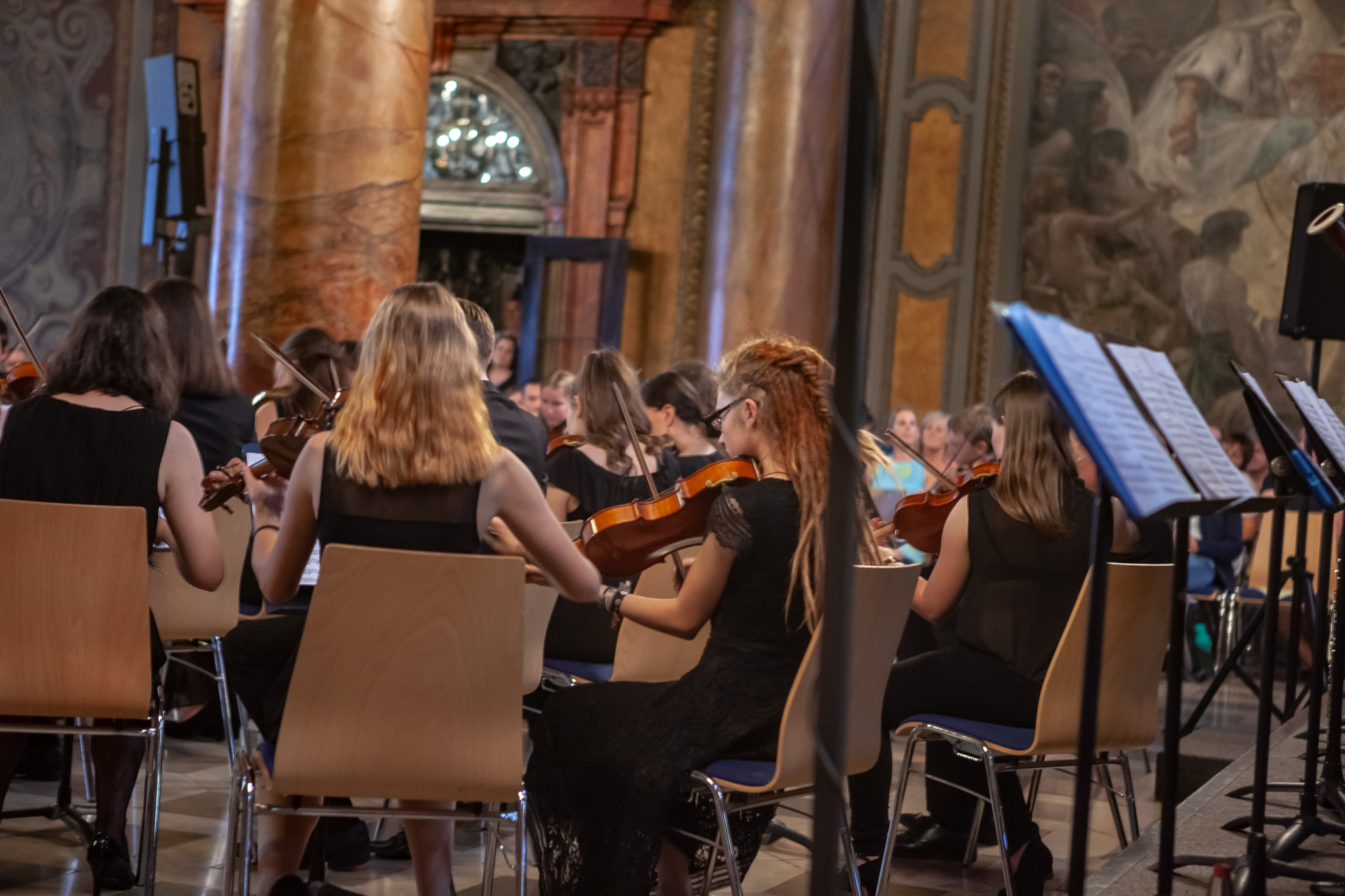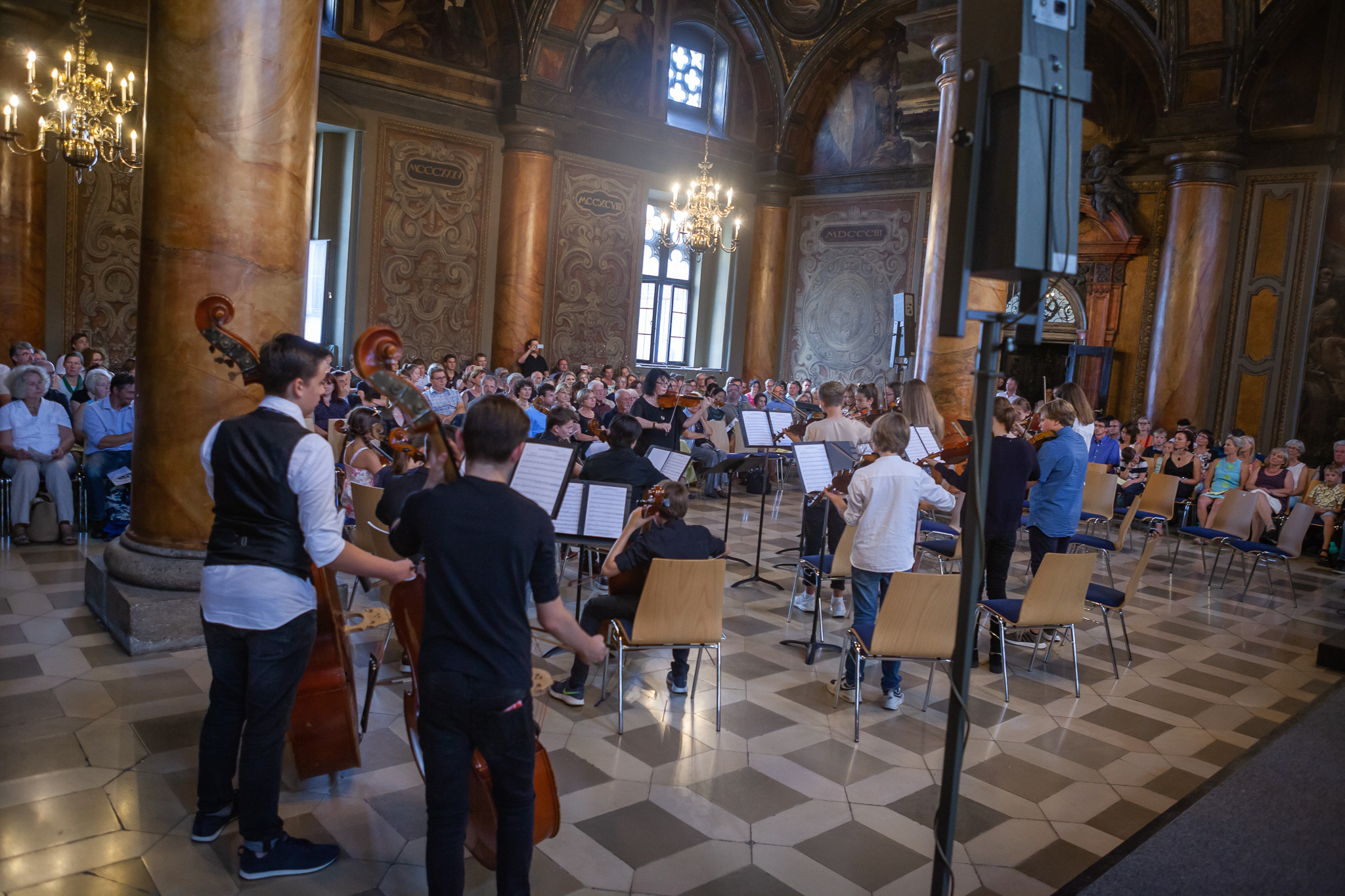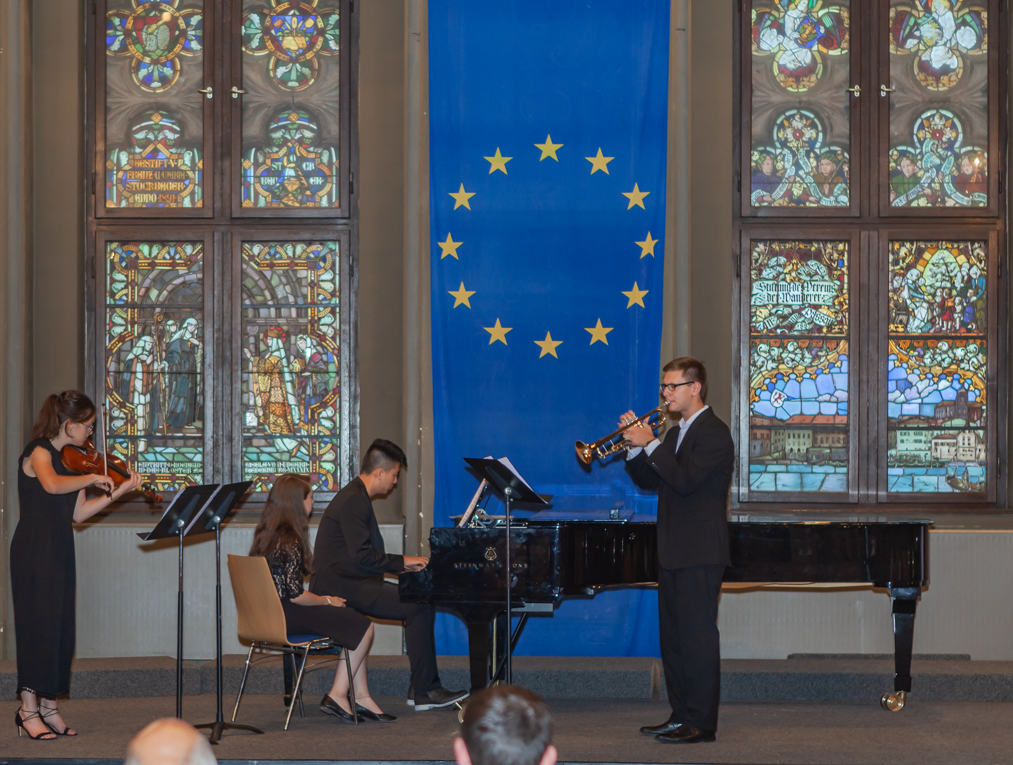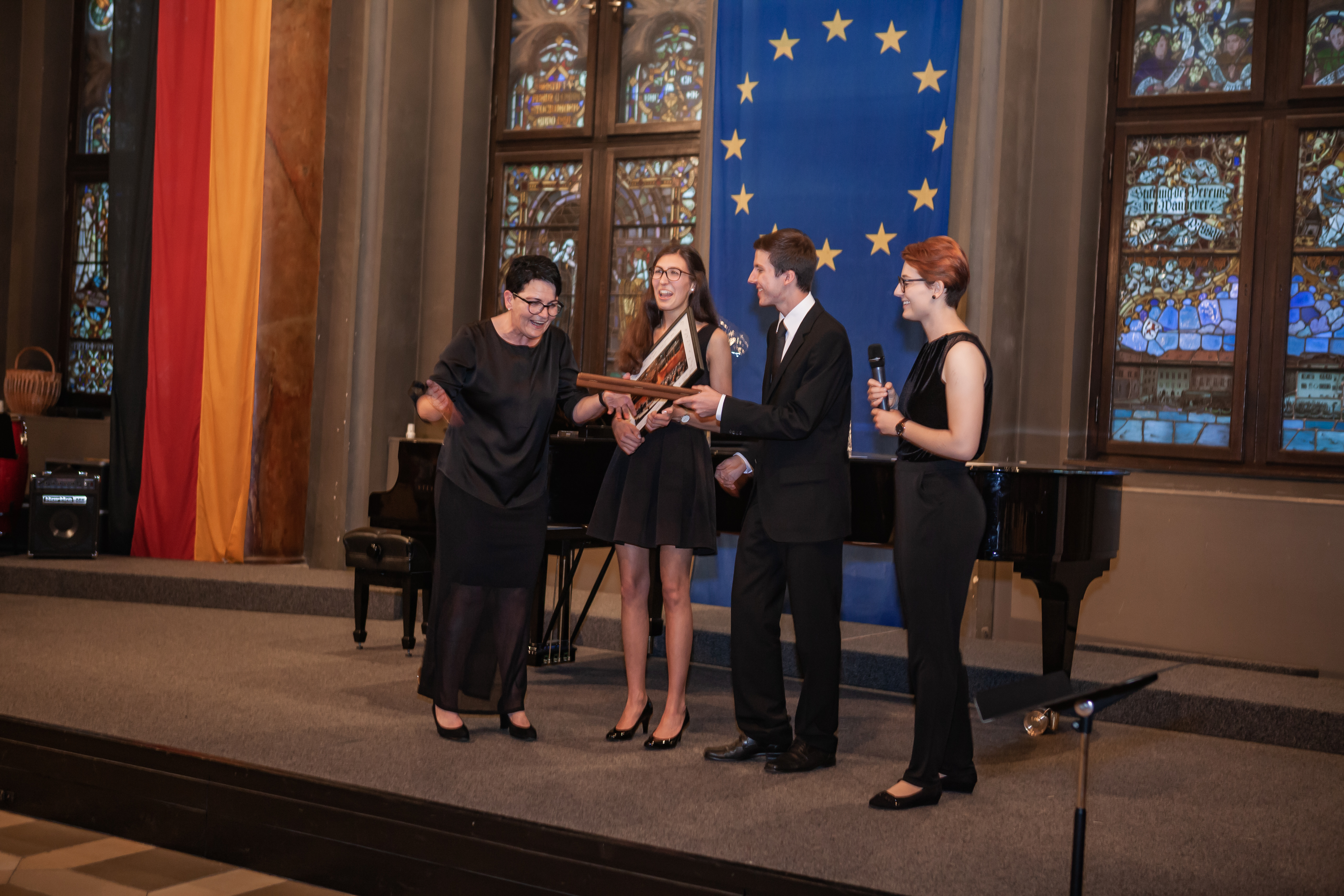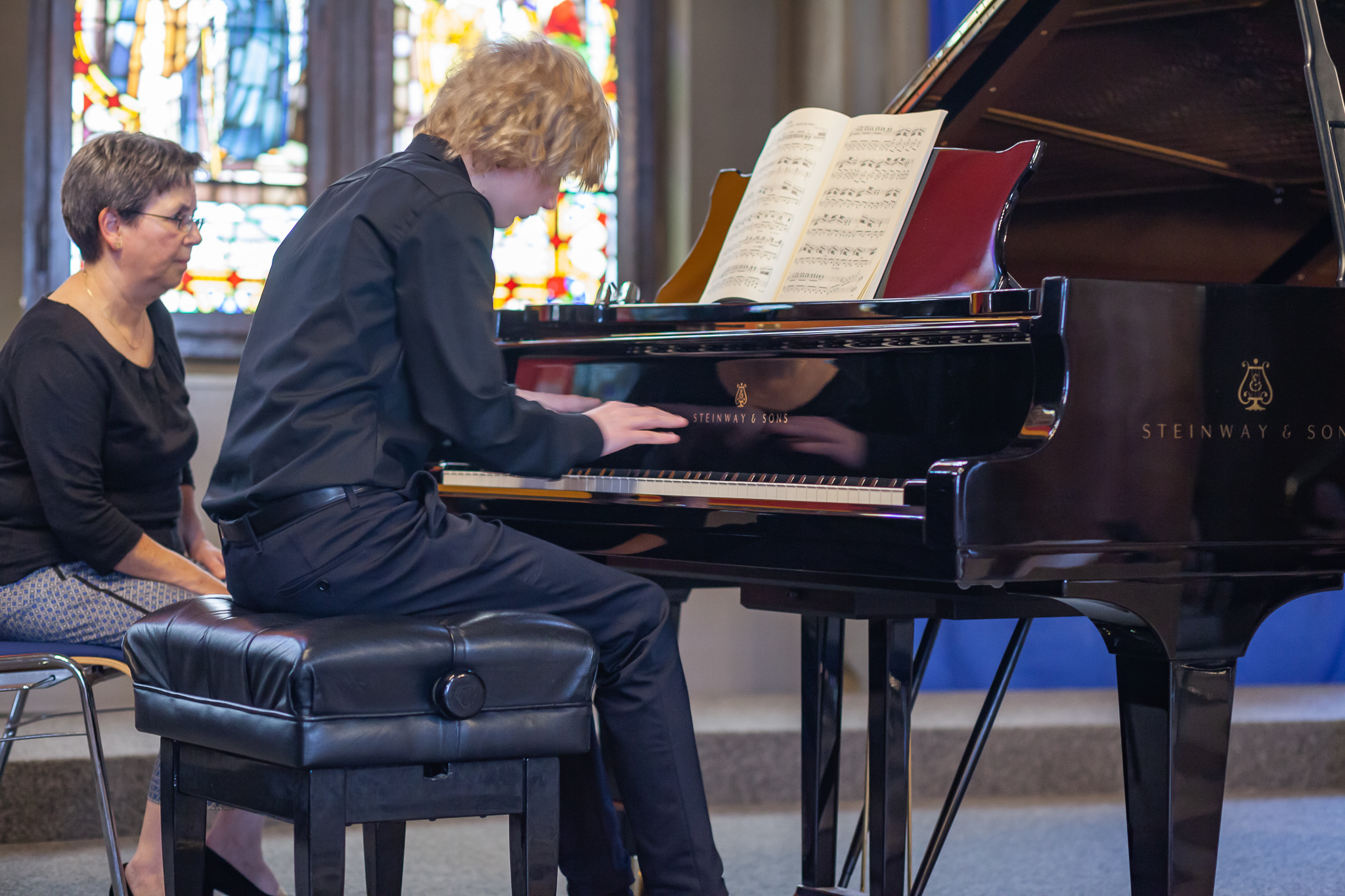 Faszierende Kostproben gab es von Franzska Fischer und Martin Schmid, die zuvor an der Violine mit einem Streichquartett von Dvorak begeisterten, zu dem auch Ana-Laia König (Viola) und Korbinian Seibold (Cello) beitrugen, und Marie Groß, die "Flow my tears away" sang, sowie Elene Breinfalk, die eine Beethoven-Sonate am Klavier vortrug.
