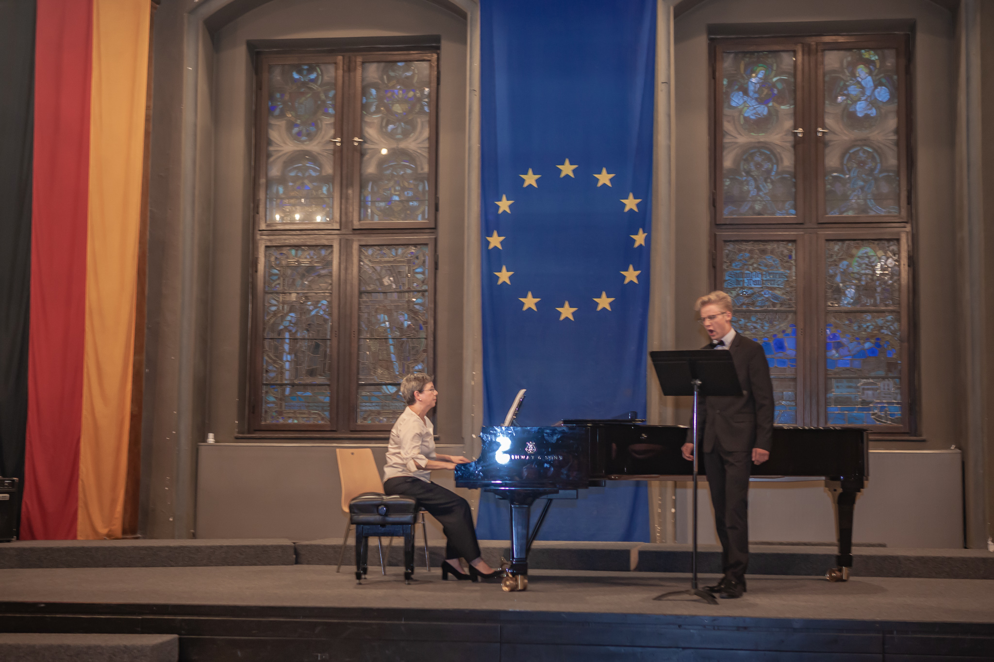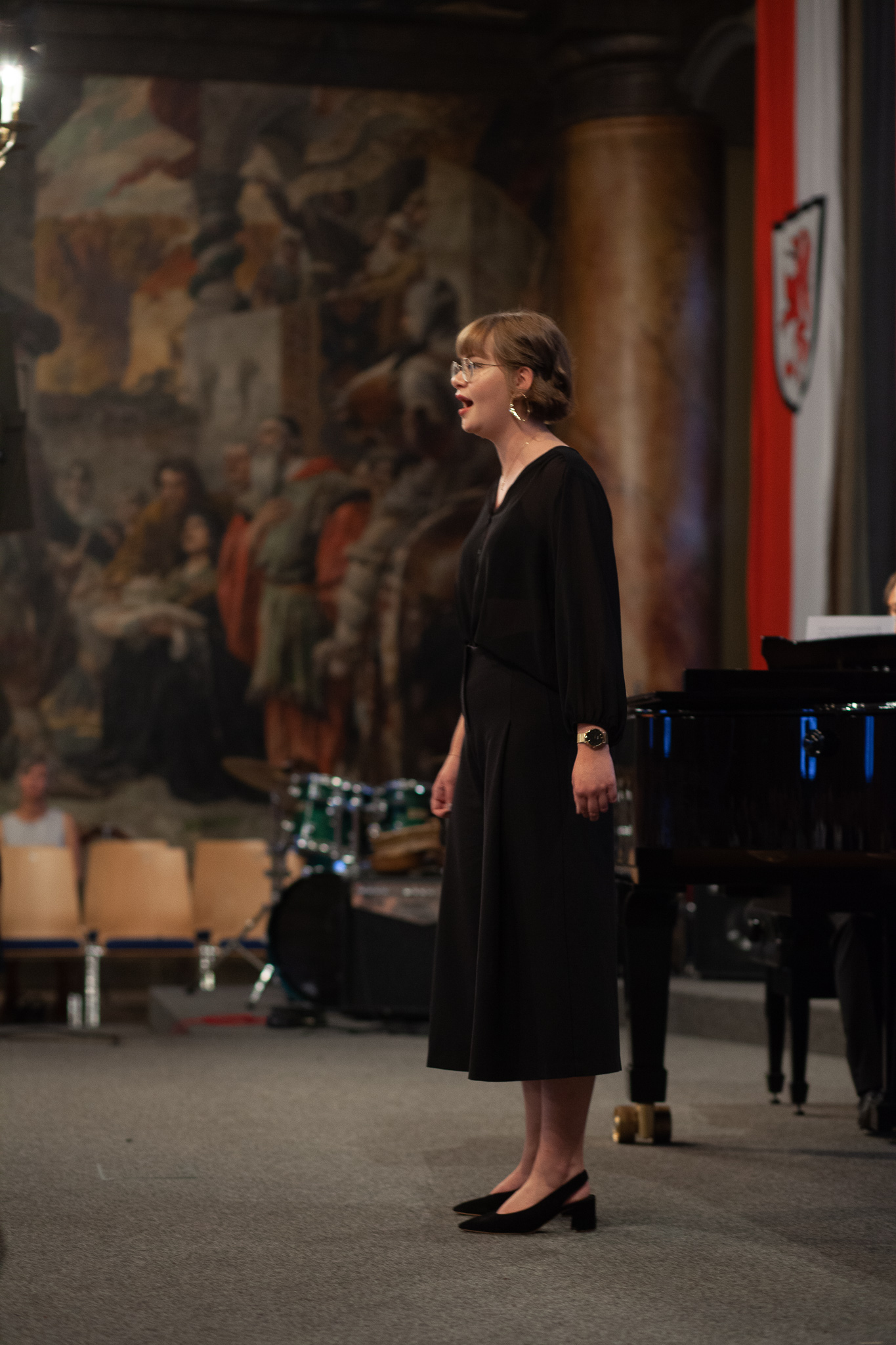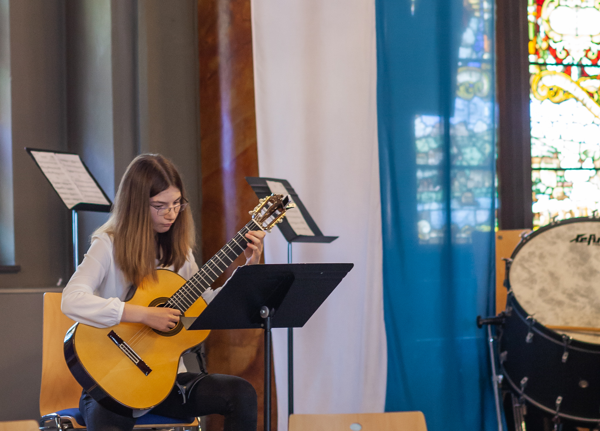 Nicht minder stimmmungsvoll bot Solist Maximilian Weiß den "Leiermann" aus der "Winterreise" von Schubert dar. Johanna Keilhofer begeisterte mit einem modernen Titel und ihrer Gitarre, mit dem sie im Landeswettbewerb von "Jugend musiziert" den zweiten Preis erobert hatte. Leo Heinrich gab mit einem Stück von Grieg Einblick in sein Können, für das er mit seinem Klavier-Duo den zweiten Bundespreis bei "Jugend musiziert" geholt hatte. Alina Striedl brachte unplugged ihr selbstkomponiertes Preisträgerlied aus dem "Songcontest Schulwettbewerb 2018" zu Gehör und Paul Melissen sang mit traumhafter Bassstimme eine Bellini-Arie.