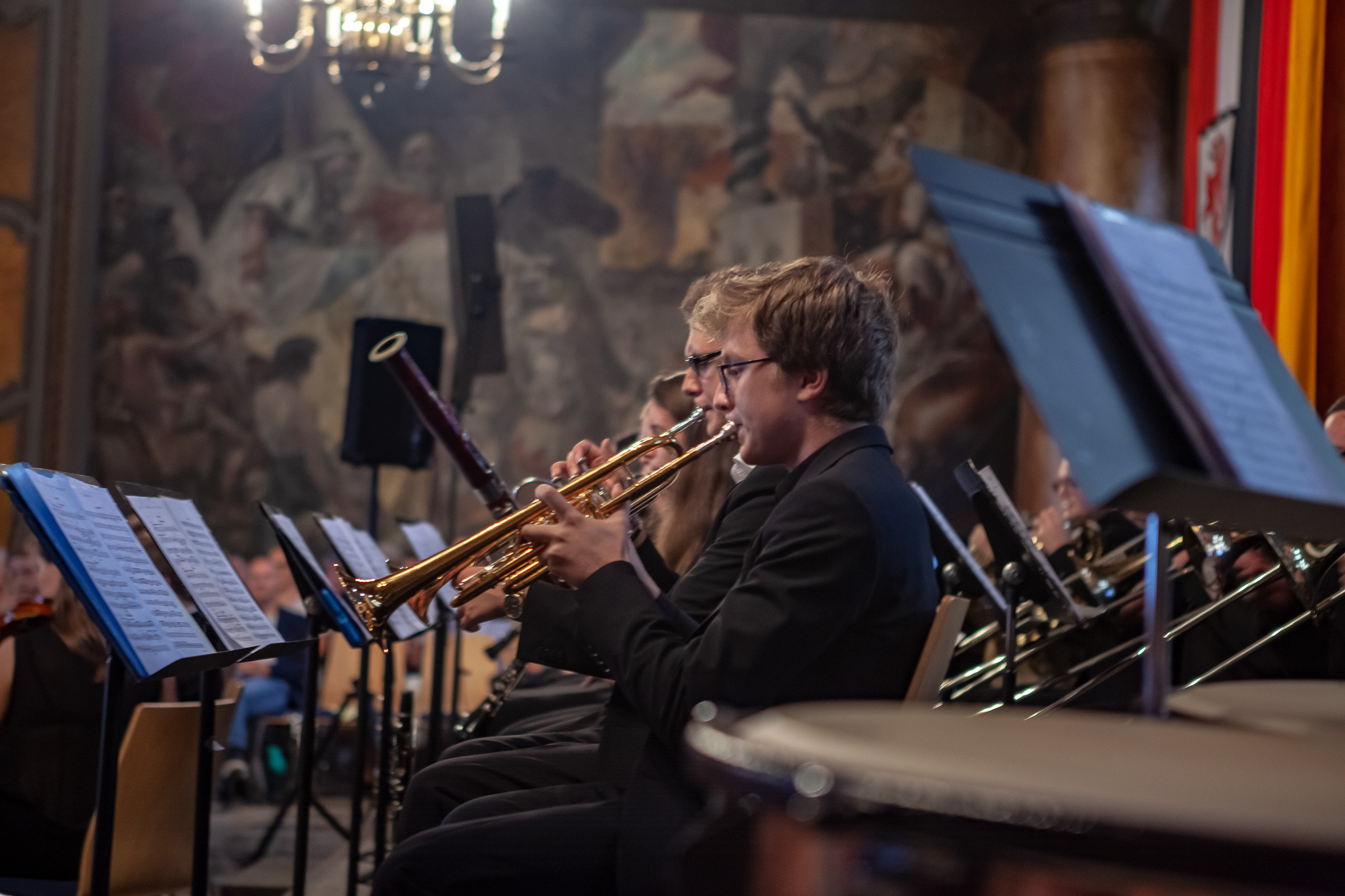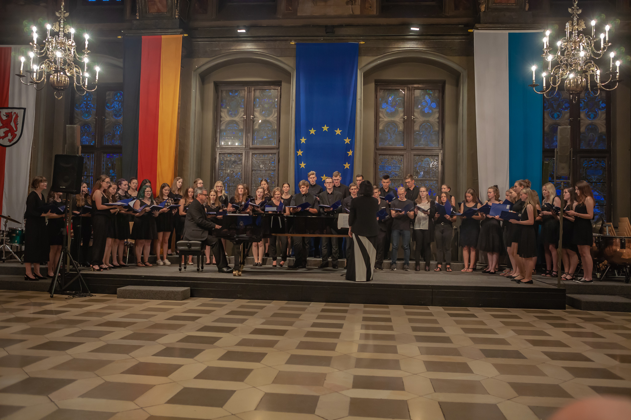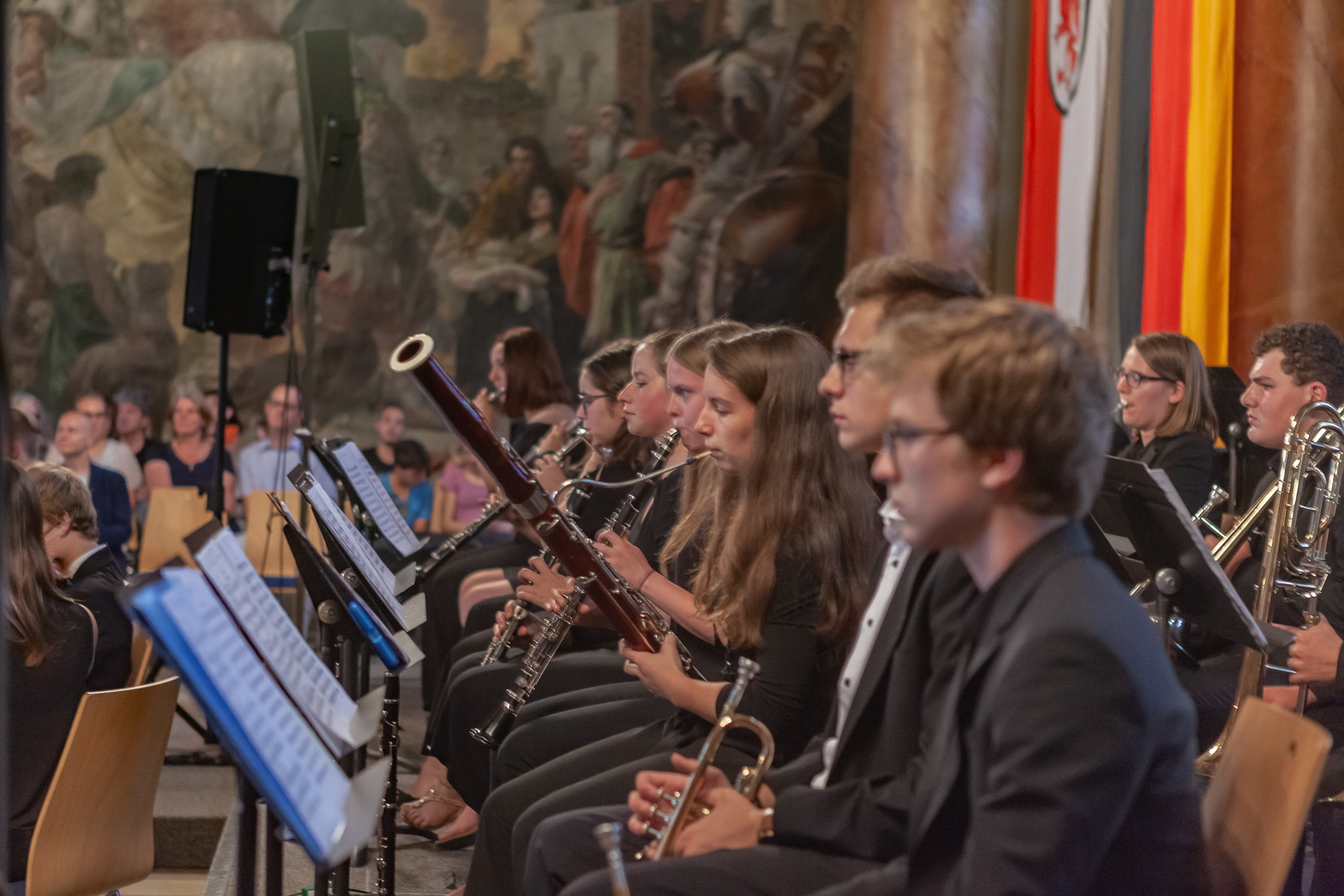 Einen fulminanten Höhepunkt setzte an beiden Konzertabenden das Oberstufenorchester unter der Leitung von Margit Weinberger mit dem russischen Tanz aus dem "Nussknacker" von Tschaikowsky, einem Ausschnitt aus Bizets "Arlesienne-Suite", einem Walzer aus der Suite "Maskerade" von Chatschaturian und Beethovens Ouvertüre zu "Egmont". Das riesige, durchaus professionelle Orchester, das sich vor Kurzem am Münchner Kulturzentrum Gasteig präsentierte, brachte mit seinem packenden Spiel die Rathaussäle zum Beben und erntete tosenden, langanhaltenden Applaus mit stehenden Ovationen.