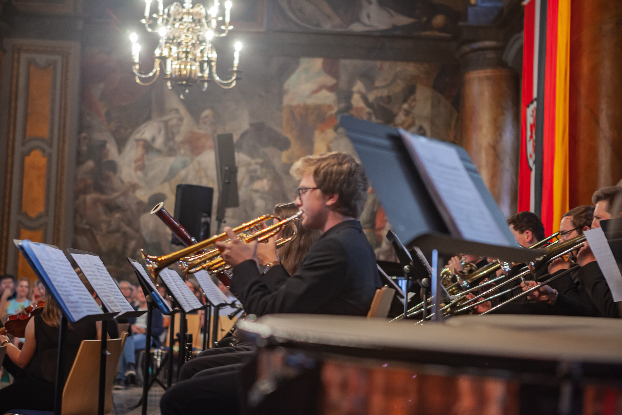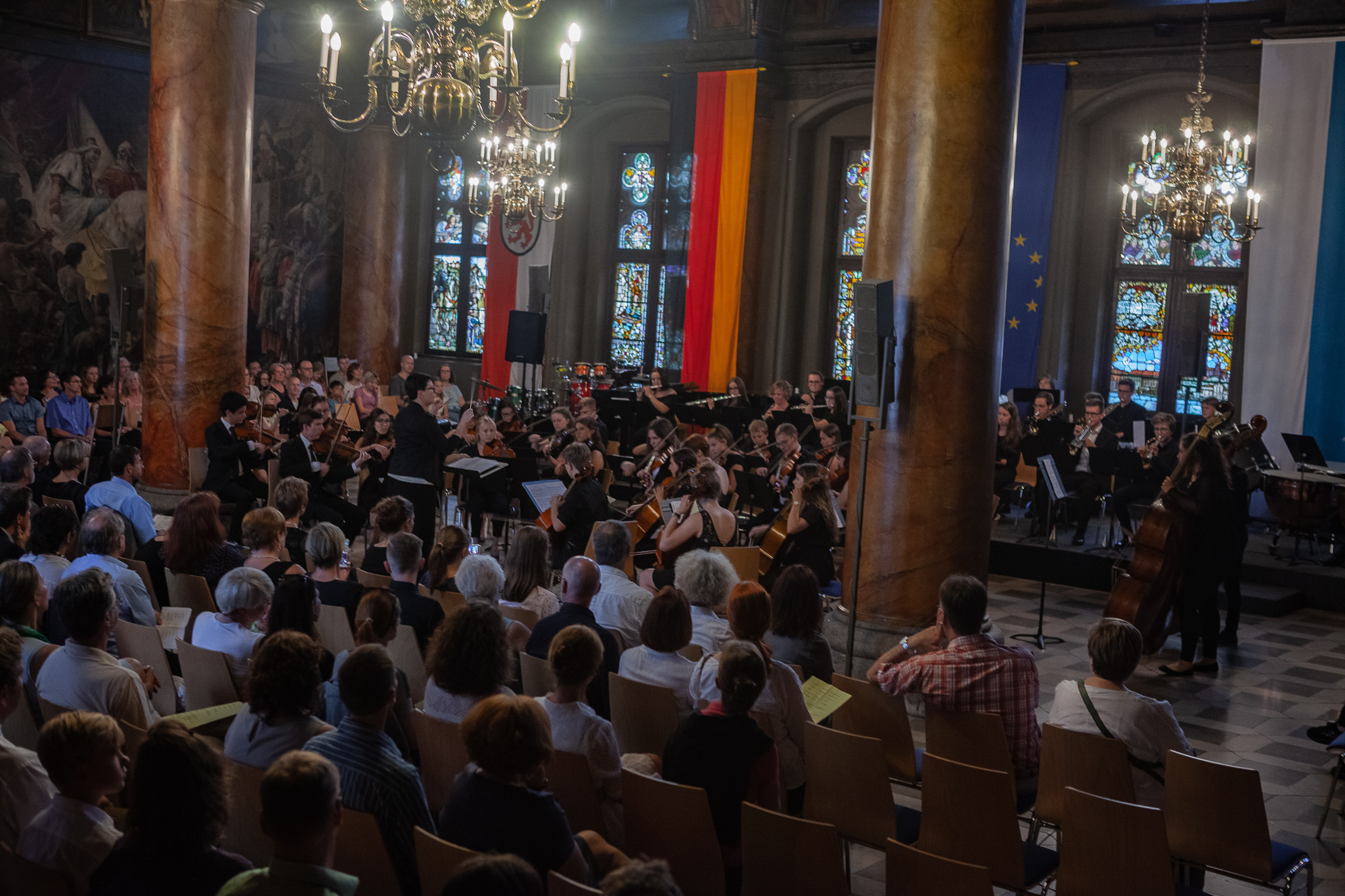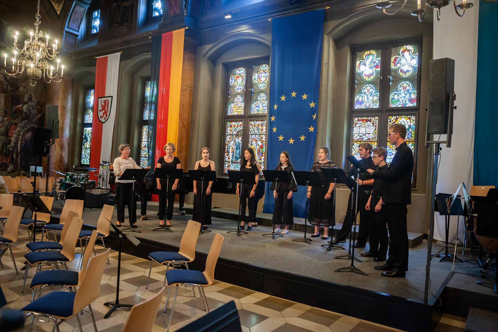 Einen fulminanten Höhepunkt setzte an beiden Konzertabenden das Oberstufenorchester unter der Leitung von Margit Weinberger mit dem russischen Tanz aus dem "Nussknacker" von Tschaikowsky, einem Ausschnitt aus Bizets "Arlesienne-Suite", einem Walzer aus der Suite "Maskerade" von Chatschaturian und Beethovens Ouvertüre zu "Egmont". Das riesige, durchaus professionelle Orchester, das sich vor Kurzem am Münchner Kulturzentrum Gasteig präsentierte, brachte mit seinem packenden Spiel die Rathaussäle zum Beben und erntete tosenden, langanhaltenden Applaus mit stehenden Ovationen.