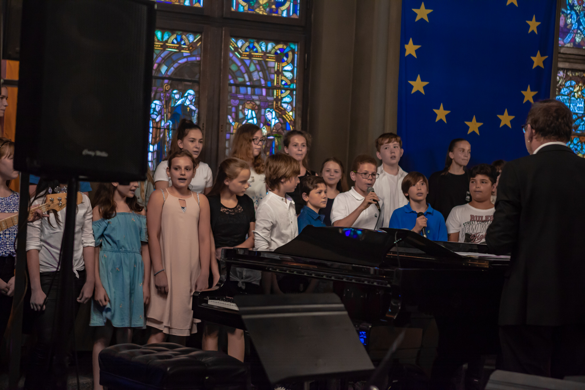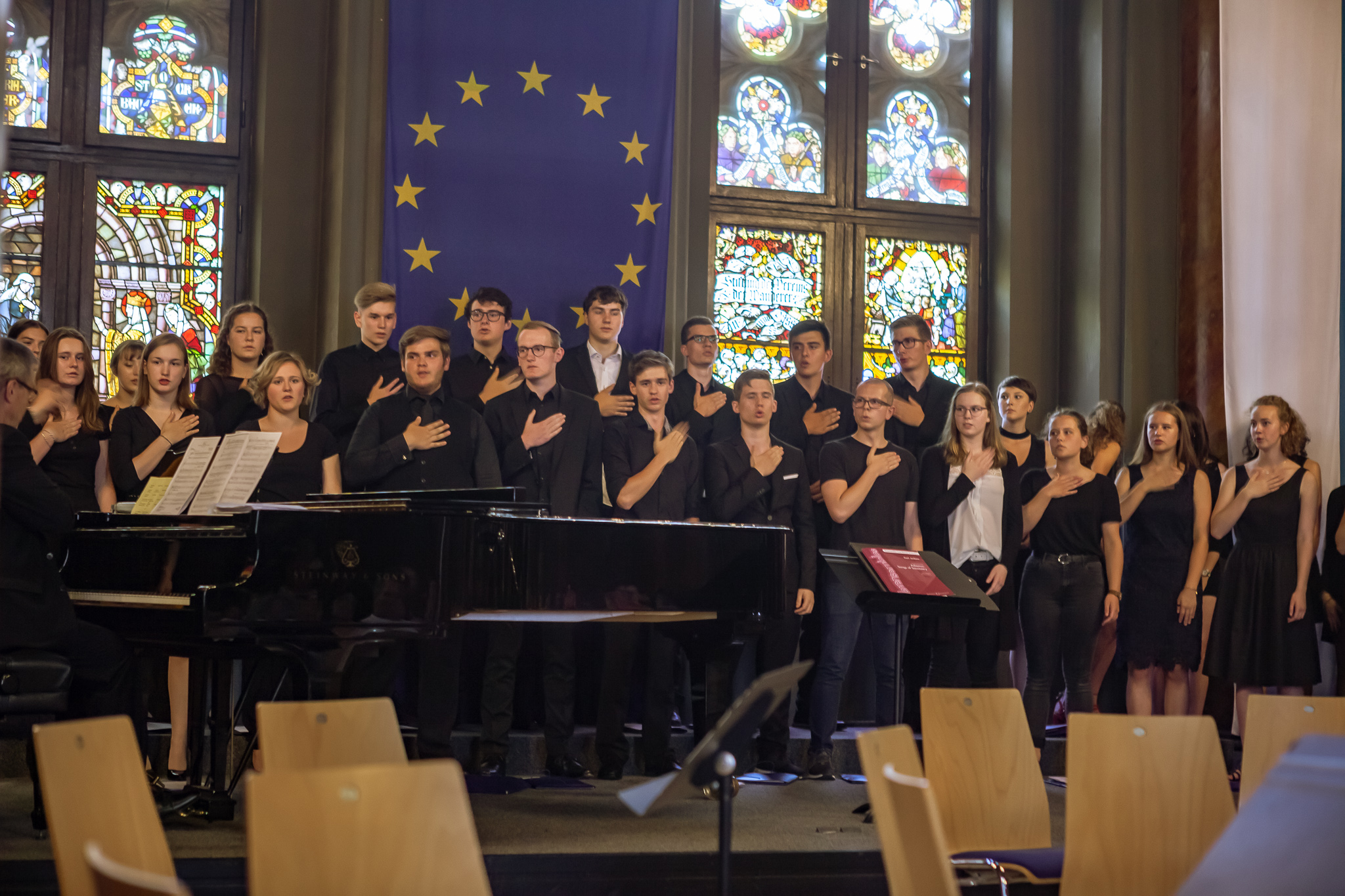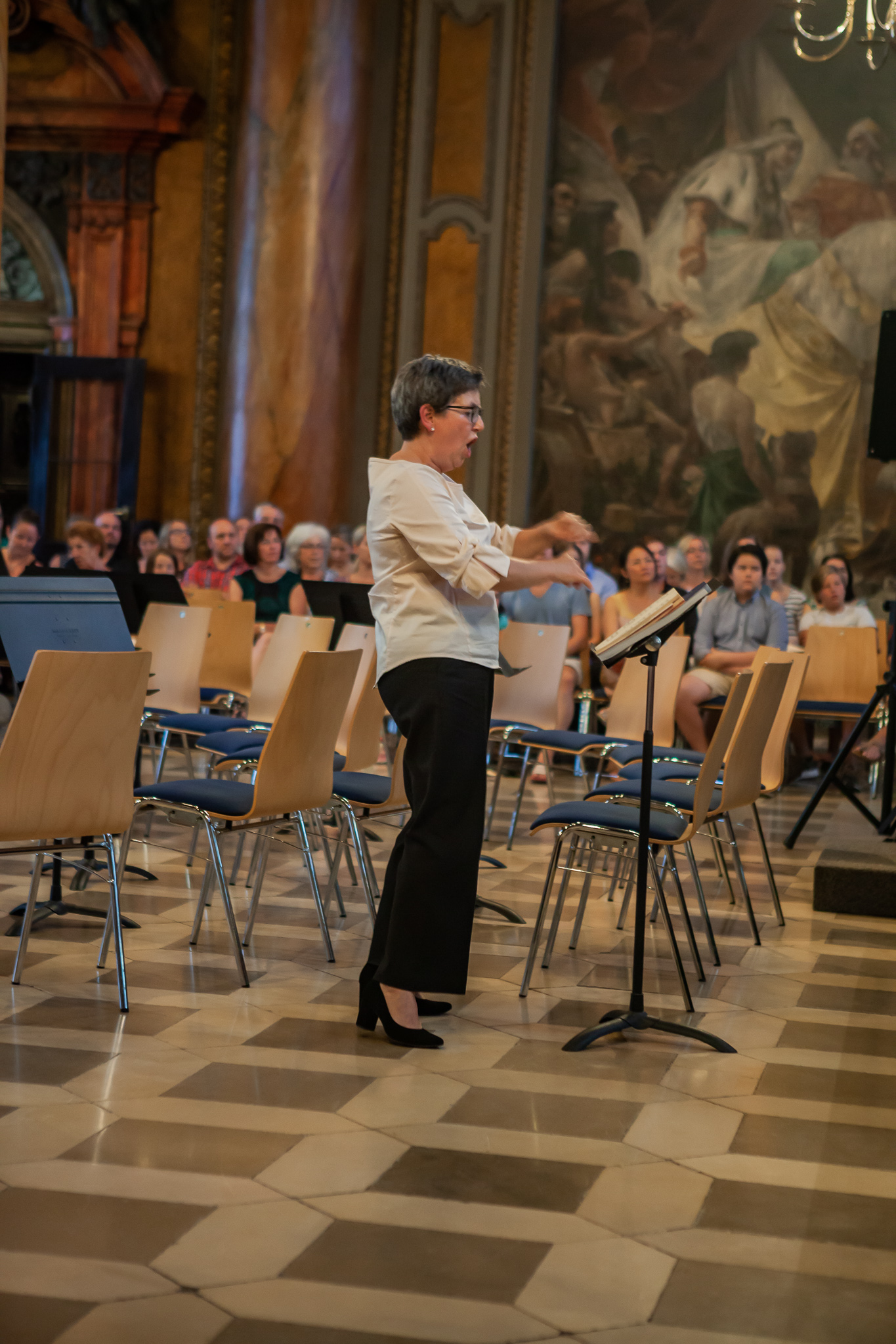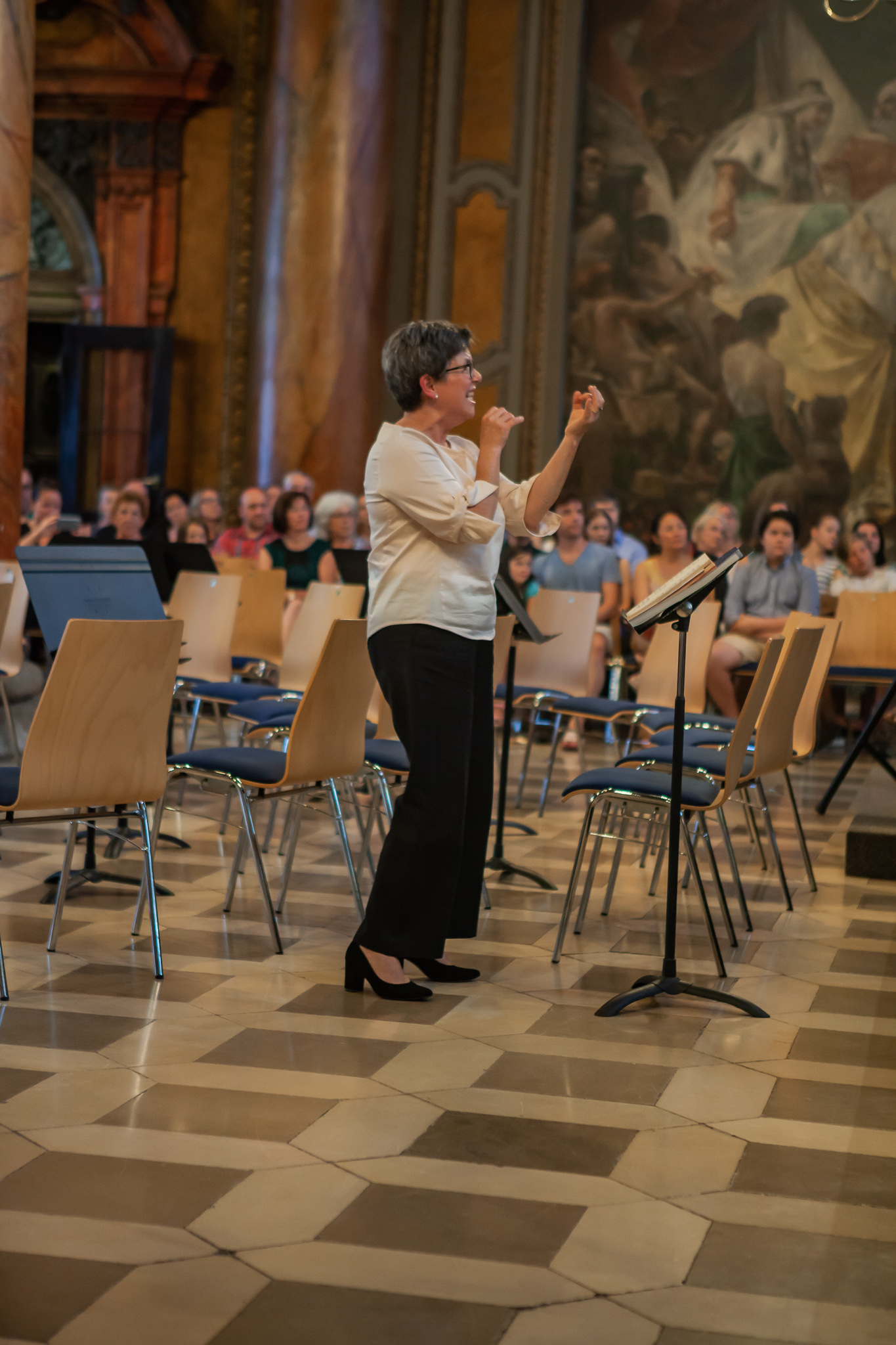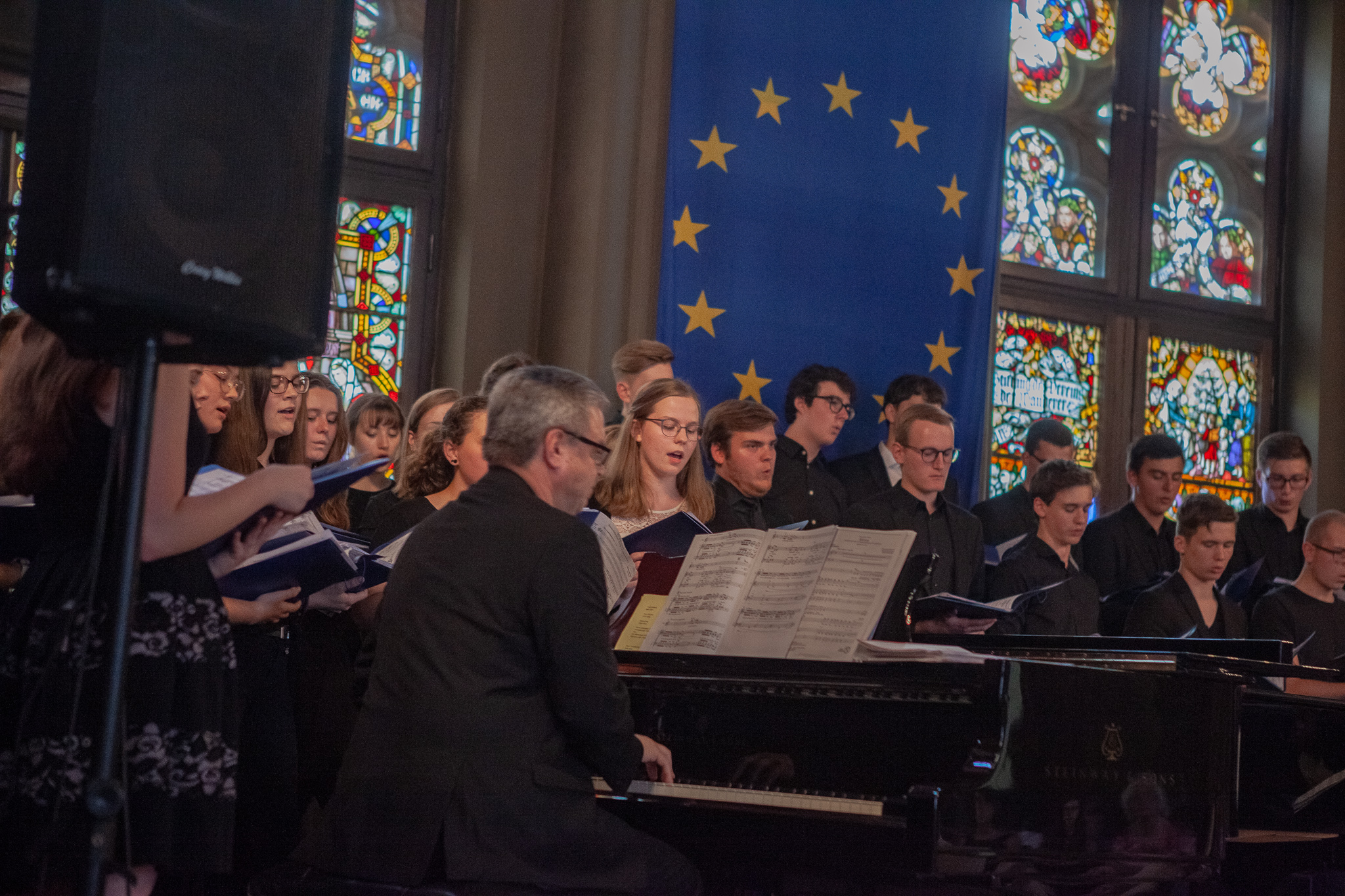 Micht minder faszinierend stellte sich der riesige vier- bis sechststimmige Oberstufenchor unter der Regie von Brigitte Glas und Kurt Brunner vor, der mit dem Mitmachstück "Sing with us" einlud und mit einem virtuosen "Africa" von Toto, bei dem die Sänger mit Klatschen und Stampfen tropischen Regenwald, Wolkenbruch, Blitz und Donner inszenierten, für Beifall sorgte. Er beeindruckte auch mit dem geistlichen Lied "God be in my head" von John Rutter, einem modernen Chorstück mit perkussiven Elementen und Kunstsprache, sowie "Adiemus" von Karl Jenkins, mit dem der Chor im Januar 2019 in der New Yorker Carnegie Hall aufwarten wird. Am zweiten Abend strahten Frauen- und Männerchor zuerst getrennt, dann gemeinsam mit "What a wonderful world".