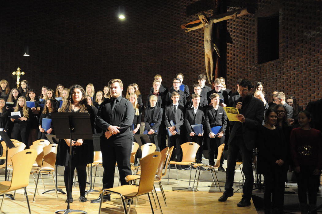 Mit harmonischem Gesang und herrlichen Stimmen überzeugte der Oberstufenchor von Brigitte Glas, der, begleitet von Kurt Brunner am Klavier, die Herzen der Besucher noch weiter öffnete. "Wie schön leuchtet der Morgenstern", sangen Chor und Solistin Jennifer Schäfer "die Könige" von Peter Cornelius. Faszinierend und im Dialog von Frauen- und Männerstimmen erklang "For the Beauty of the World", um mit dem Titel "Sternstunden für die Welt" von Jochen Rieger zur Sternstundenhymne von Bayern 3 überzuleiten. (...)