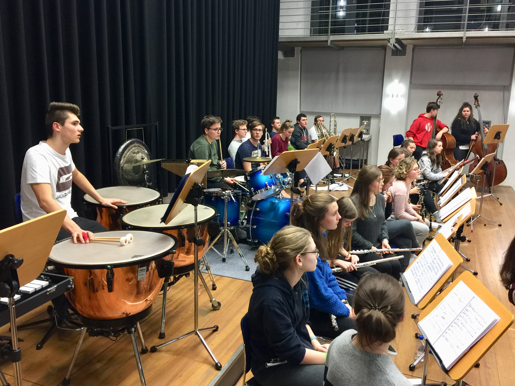 Das Orchester bereitete in großer Bläser- und Schalgwerkbesetzung Werke für das Faschingskonzert vor und erfüllte mit beschwingten Werken die Räume und beflügelte die Schüler. Die Bigband erweiterte ihr großes Repertoire mit Improvisationen . In der ersten Hälfte der Woche war neben der Probenarbeit für das Unter- und Mittelstufenorchester auch die Theatergruppe 6-10 unter Leitung von Ursula Kraft mit vollem Einsatz für ihre nächste Aufführung in Aktion. Trotz all der musischen Aktivitäten kam jedoch auch das Gesellige und die soziale Komponente nicht zu kurz!