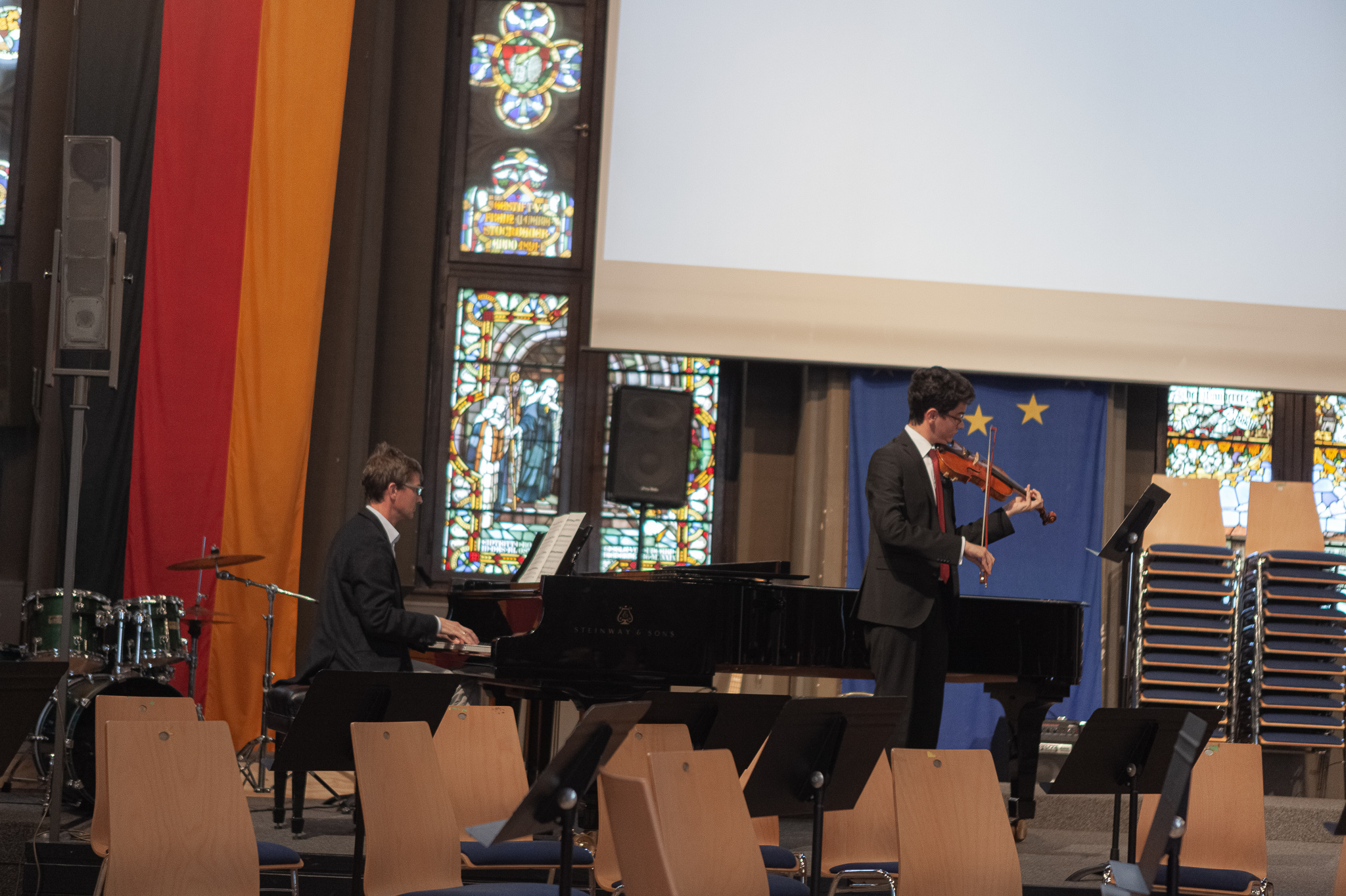 Antonia Lerchl stimmte mit ihrer hellen Glockenstimme zum Auftakt des zweiten Konzerttags die sehr elegische, besinnlich wirkende „Abendempfindung“ von Wolfgang Amadeus Mozart an. „Wake me up“ schmetterte das Ensemble der Q11, die ihren poppigen A-Cappella-Gesang mit Schnipsen und Geräuschen vortrug. Lena Appel erfreute mit dem romantischen Klavierstück „Herbstgesang“ aus dem „Jahreszeiten“- Zyklus von Peter Tschaikowsky. Felix Lambsdorff wartete an der Violine mit einem gregorianisch anmutenden, mystischen Stück im Tintinnabuli-Stil von Arvo Pärt auf. Ausdrucksvoll sang Laura Vicari eine romantische Komposition von Edvard Grieg. Alina Schlichtenmayer bereicherte das Programm mit einer anspruchsvollen Ballade aus ruhigen und virtuosen Passagen an der Querflöte. Den ersten Abend eröffnete das Unter- und Mittelstufenorchester mit dem fast martialisch klingenden „Einzug des Königs“ sowie weiteren modernen Titeln, darunter „Poker Face“ von Lady Gaga. Jennifer Schäfer zeigte ihr Können mit einem „Scherzo“ am Kontrabass. Die Fünftklässler Christian Luther und David Zhuang ließen mit einer Melodie von Claude Debussy am Klavier aufhorchen und Nick Czerny mit einem Tenorsolo von Georg Friedrich Händel.