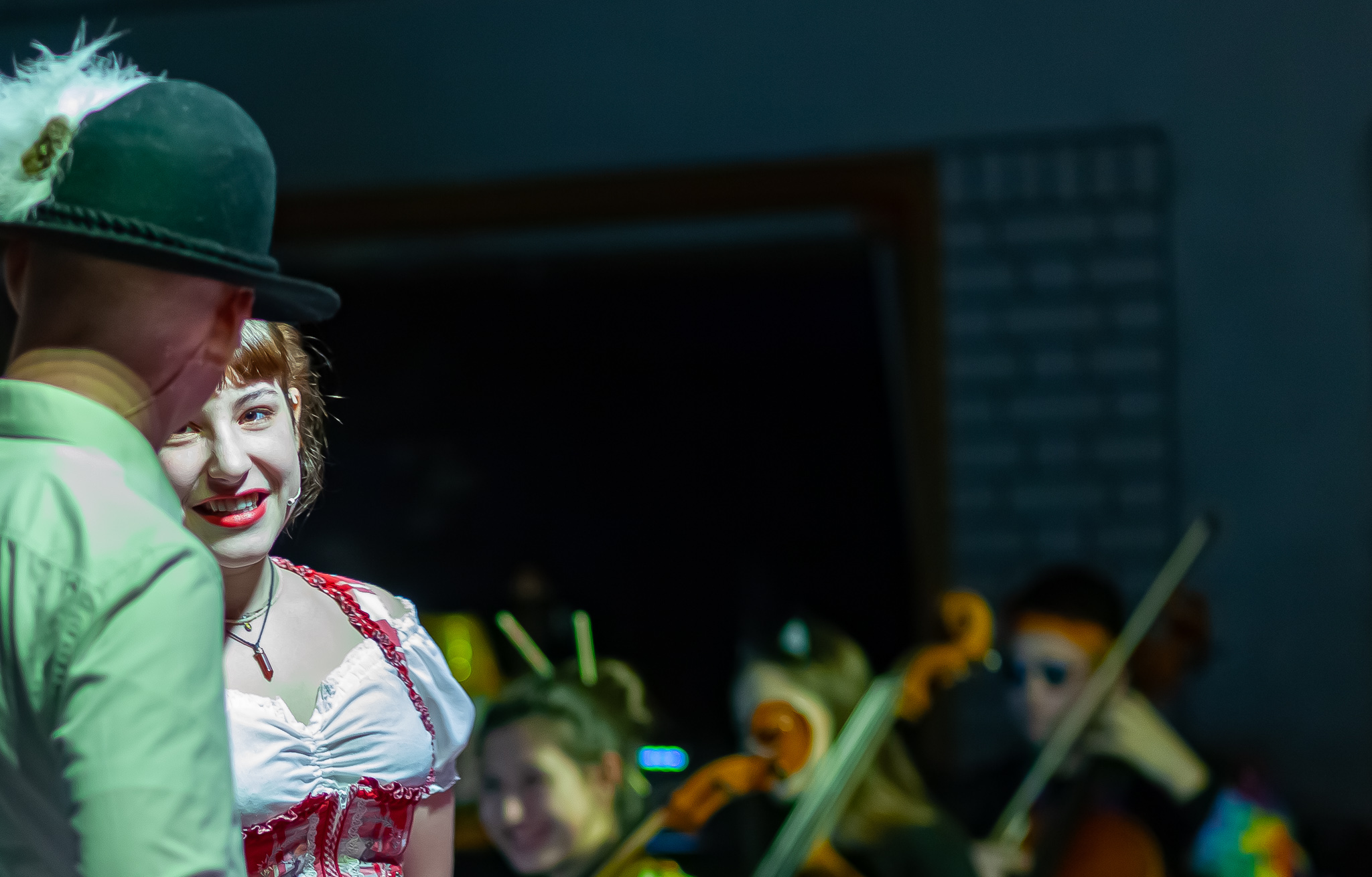 Zweieinhalb Stunden kurzweiliges Programm bot die zweite Auflage des Freudenhainer Faschingskonzerts der Oberstufe am Abend vor dem Unsinnigen Donnerstag. Margit Weinberger, Leiterin des Oberstufenorchesters und Initiatorin des Abends, hatte mit ihren Schülern trotz kurzer Probenzeit viele mitreißende Stücke einstudiert. Ihre äußerst disziplinierte Truppe glänzte mit reiner Orchestermusik, wie zum Beispiel dem Radetzkymarsch oder Stücken von Leroy Anderson. Vor allem aber begleitete sie mehrere Arien aus Operetten wie „Saison in Salzburg“, „Weißes Rössl“ oder „Herzogin von Chicago“, die das Publikum zum Schwelgen brachten.