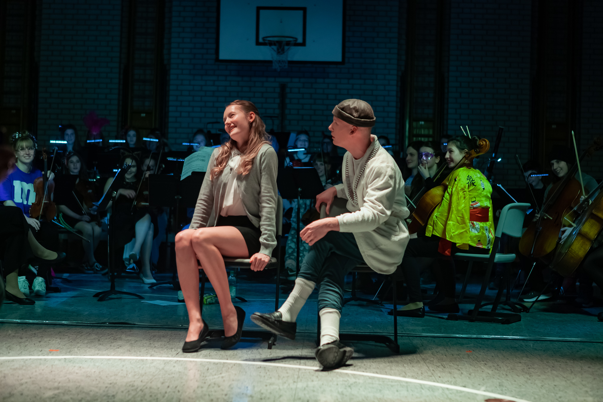 Zweieinhalb Stunden kurzweiliges Programm bot die zweite Auflage des Freudenhainer Faschingskonzerts der Oberstufe am Abend vor dem Unsinnigen Donnerstag. Margit Weinberger, Leiterin des Oberstufenorchesters und Initiatorin des Abends, hatte mit ihren Schülern trotz kurzer Probenzeit viele mitreißende Stücke einstudiert. Ihre äußerst disziplinierte Truppe glänzte mit reiner Orchestermusik, wie zum Beispiel dem Radetzkymarsch oder Stücken von Leroy Anderson. Vor allem aber begleitete sie mehrere Arien aus Operetten wie „Saison in Salzburg“, „Weißes Rössl“ oder „Herzogin von Chicago“, die das Publikum zum Schwelgen brachten.