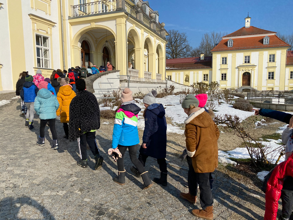 Den einen oder anderen Erwachsenen mochte der Anblick gerührt haben: so viele „Kinderbesucher“, die, - warm eingepackt in Anoraks und Mützen – hintereinander, nebeneinander, eilig zuliefen auf Schloss Freudenhain. Dort fand nämlich am späten Nachmittag im Festsaal des Auersperg-Gymnasiums ein Klavierkonzert statt mit Tanztheater: Mädchen und Buben der Kunst-Grundschule Haidenhof (unterwiesen von ihren Lehrerinnen und Lehrern) traten auf, zusammen mit Schülerinnen und Schülern der Klavierklasse Elmar Slama des Auersperg-Gymnasiums Freudenhain. Johannes Fuchs, Rektor am Auersperg-Gymnasium dankte den Akteuren, ebenso den erwachsenen Mitverantwortlichen , der Rektorin der Kunst-Grundschule Haidenhof, Bettina Stummer, deren Kooperationspartner der Kunst-Grundschule, dem Vorstand des BBK, Hubert Huber. Und natürlich galt Dank und Anerkennung Elmar Slama. Regelmäßig initiiert Elmar Slama, Pianist und langjähriger bewährter Musikpädagoge in Freudenhain solch hochkarätiges Event mit seiner jeweiligen Klavierklasse in Kooperation mit Kindern einer anderen Schule.