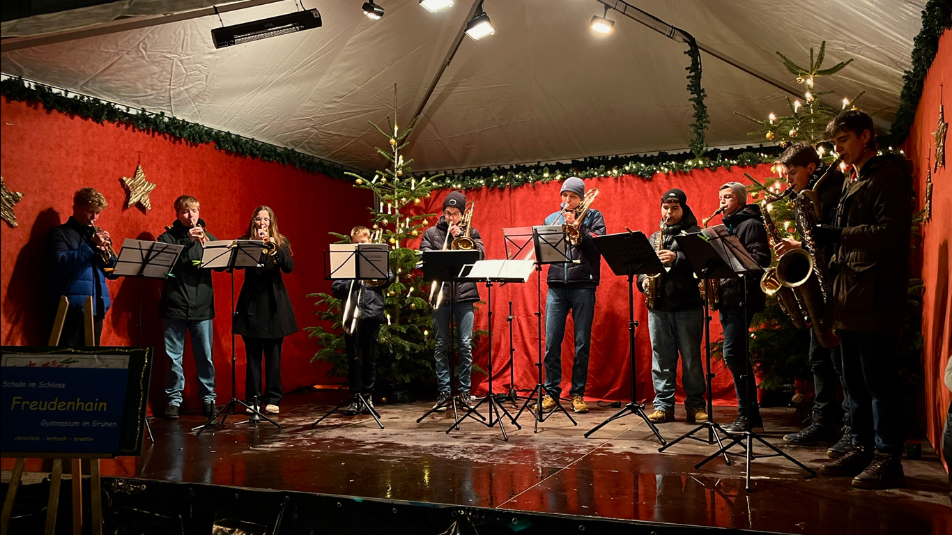 2023 Christkindlmarkt Freudenblech 2Die schöne Tradition des Christkindlmarkt-Auftritts der BigBand-Bläser unter dem Namen „Freudenblech“ hat wieder stattgefunden.