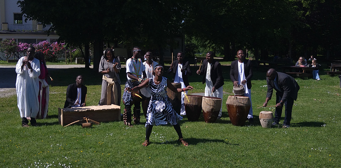 Eine Musikgruppe aus Uganda ist in der Stadt. Die 10 Musiker kommen von der St.Padre Piu Youth Initiative, geben mehrere Konzerte in Niederbayern und Oberösterreich und einen Workshop in Freudenhain.