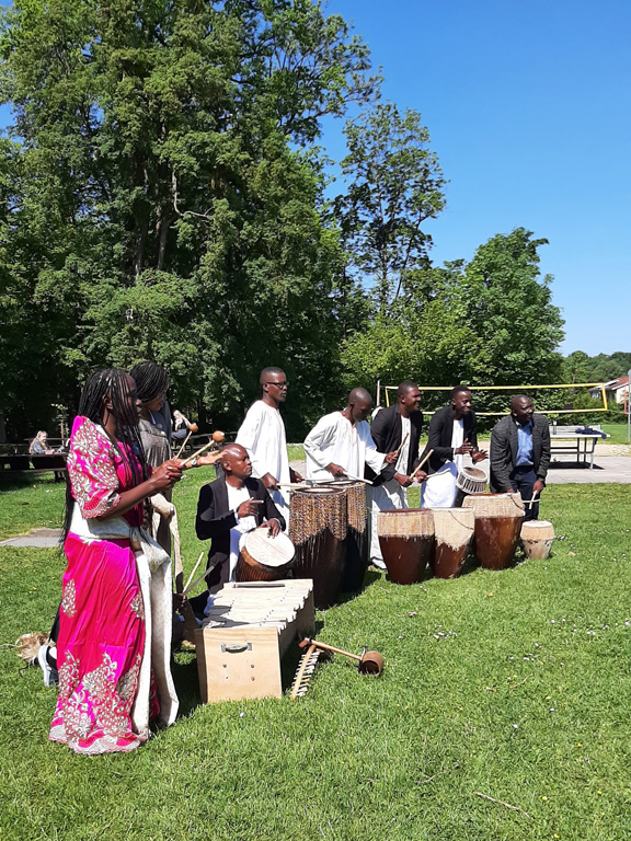 In der Pause wechselten die Musiker spontan in den Park, wo weiter gesungen, getrommelt und getanzt wurde. Ein paar Mutige ließen sich sogar zum Mittanzen überreden.