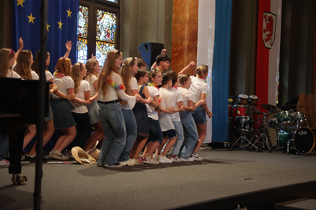 Der Chor der Klasse 7/8, geleitet von Christoph Rose, überraschte durch fast lautlose Klanggebung bei „Fischers Nachtgesang“ von W. Hiller. „Sing“ von den Pentatonix war das packende Pendant durch eine engagierte und zupackende Interpretation, wobei die Solistin Anna Mangold hervorzuheben ist.