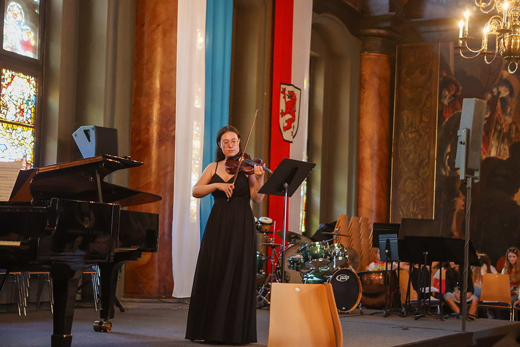 Am ersten Abend war die Chorarbeit im Mittelpunkt, am zweiten Abend die Oberstufenschüler, die solistisch das Programm bereicherten, wie eine überzeugende Amelie Zöls mit „Think of me“ von A. L. Webber. Mit schöner klarer Stimme und heller Höhe vermochte sie die Zuhörer einzunehmen. Benedikt Sattler zeigte sein virtuoses Können und seinen künstlerischen Ausdruckswillen im „Scherzo“ von John Gart, dem eine überzeugende Interpretation der „Rhapsodie“ op 72 von J. Brahms, ausdrucksvoll und nuancenreich gespielt von Lukas Schedlbauer, folgte. Dazwischen intonierte Lara Anderson mit sauberem Ton und präzisem Spiel die „Romanze“ von Max Reger. Viel Beifall gab es für die Preisträgerin Johanna Gabriel mit „Someday“ von Alan Menken.