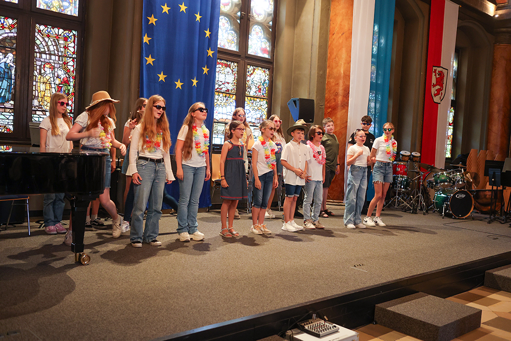 Der sich anschließende Chor der 6. Klasse unter dem Dirigat von Margit Weinberger bot eine sichere und klangschöne Interpretation von Harald Denzels „Urlaubszeit“. Mit voller Kehle und sauberer Intonation wussten sie in allen drei Liedern die Zuhörer einzunehmen.