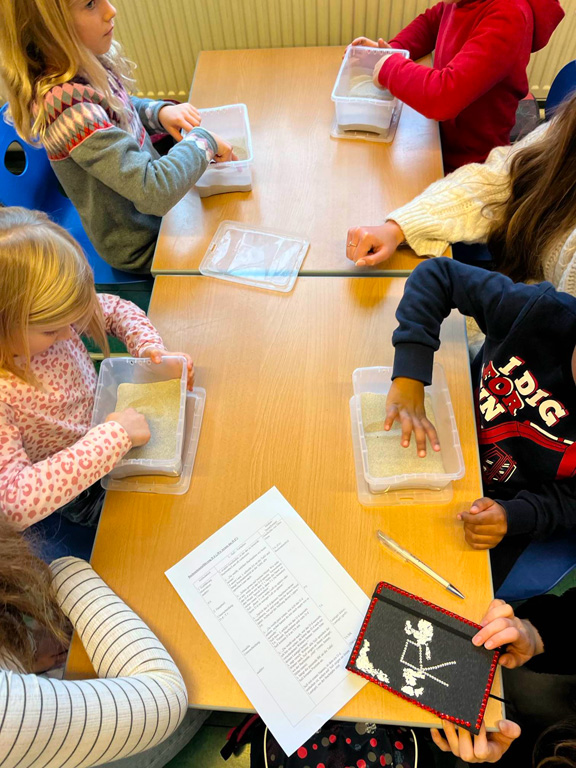 Hier wurden viele Fragen über die verwendeten Unterrichtstrategien, das Vorgehen beim Lesenlernen, aber auch zum Arbeiten mit Kindern und zum Lehrerberuf gestellt und beantwortet. Die Seminarteilnehmer*innen bekamen einen aufschlussreichen und interessanten Einblick in den Alltag an der Grundschule und in den Lehrerberuf, dem einige von ihnen nach dem Abitur nachgehen wollen. Der Unterrichtsbesuch hat allen Teilnehmer*innen des P-Seminars Leseförderung sehr gefallen und die Kurseilnehmer*innen bereiten bereits eine Buchstabenrallye im Schlosspark für die Erstklässler vor, die das Gymnasium in einer Gegeneinladung im Frühsommer besuchen wollen.