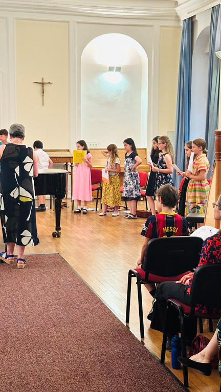 Beim ersten Vorspielabend der Klasse 5a im Schuljahr 2023/24 wurde nicht nur gesungen und gespielt. Nein, unsere jüngsten Musen sind auch die Meister und Meisterinnen des Tanzes! Und so begann das erste Konzert der Klasse mit Uli Führes Lied „Singen macht Spaß“, wozu sich die Fünften im Vorfeld eine richtig coole Performance überlegt hatten, sodass der Titel des Liedes gleich zum Motto des Abends wurde. Aber nicht nur das Singen beherrschen und lieben die Fünftklässlerinnen und Fünftklässler, auch ihre Instrumente liegen den jüngsten Freudenhainern sehr am Herzen. Alle hatten hervorragend geübt und vom Lampenfieber der Konzertanten bekam das Publikum nichts zu spüren. Hier standen durch die Bank junge Profis auf der Bühne.