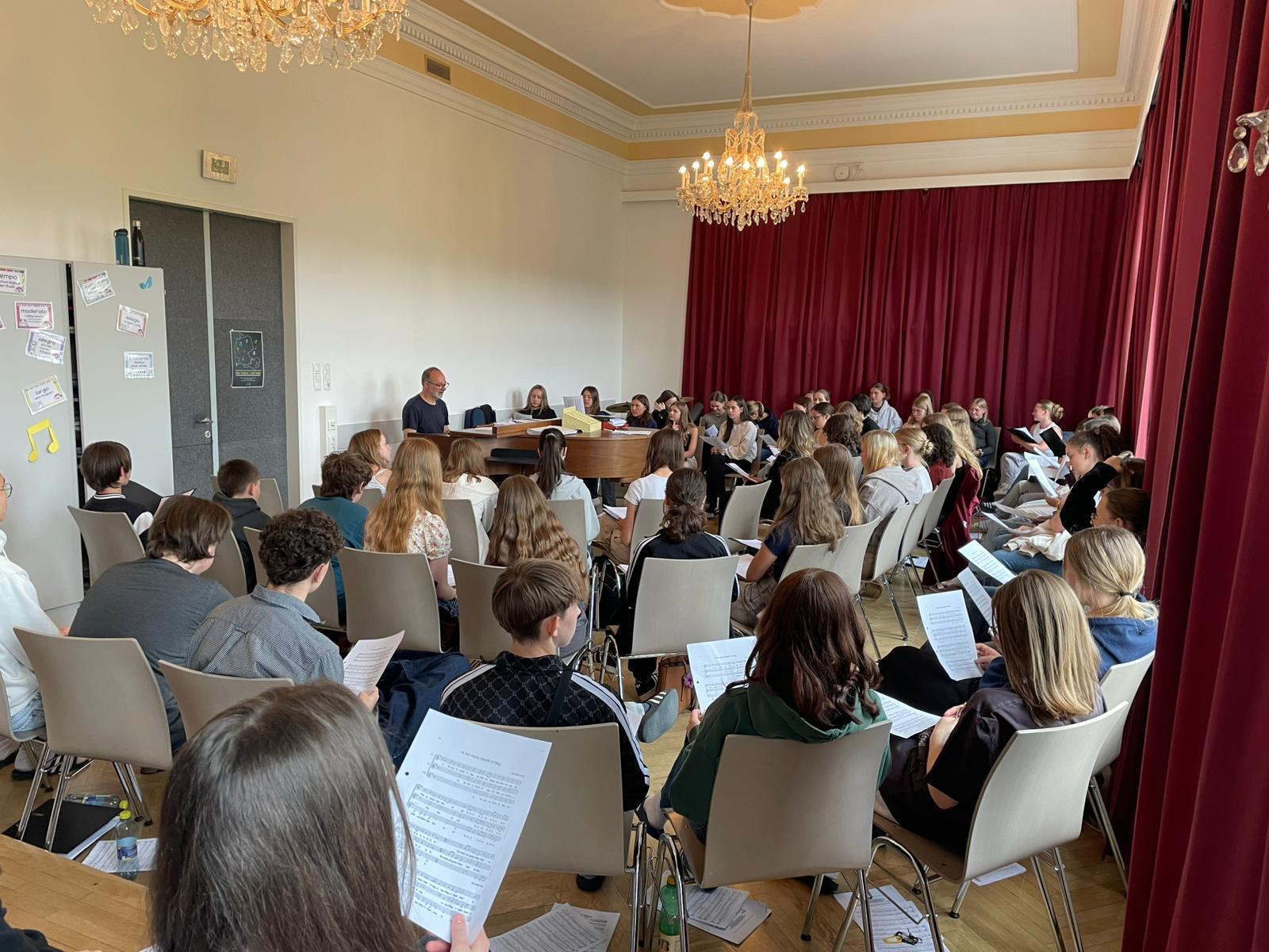 Es gab gefühlvolle Balladen, Humorvolles aus den 30ern, Raumfüllendes aus Afrika, Die Chöre beider Gymnasien boten tolle Musik aus Ihren eigenen Repertoires und verbanden sich in einigen Stücken zum großen 2-Länder-Chor 2025.