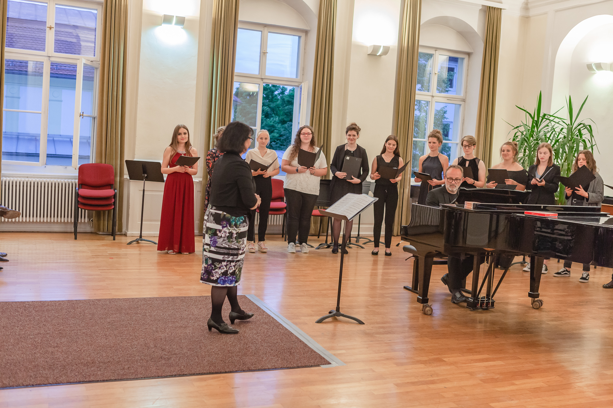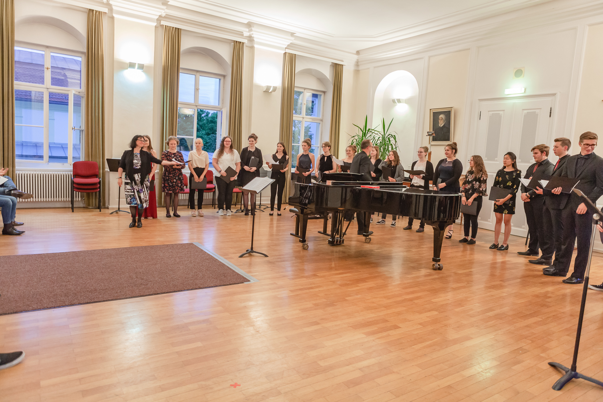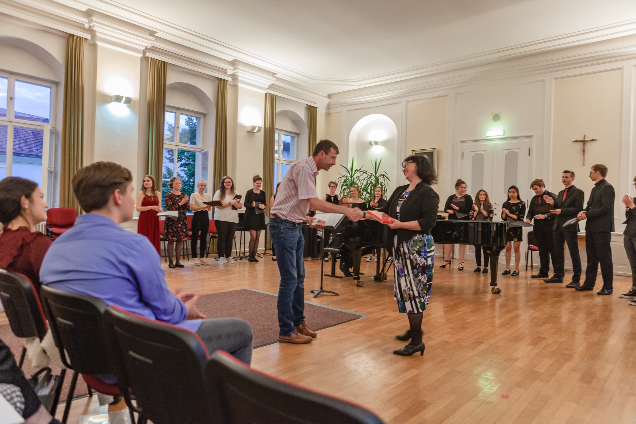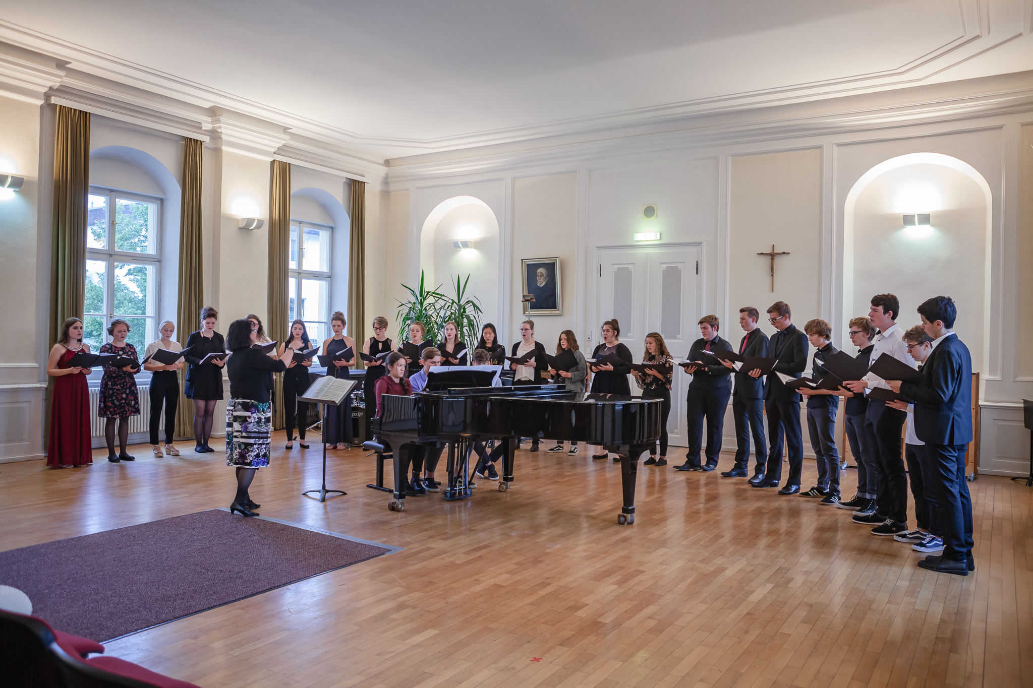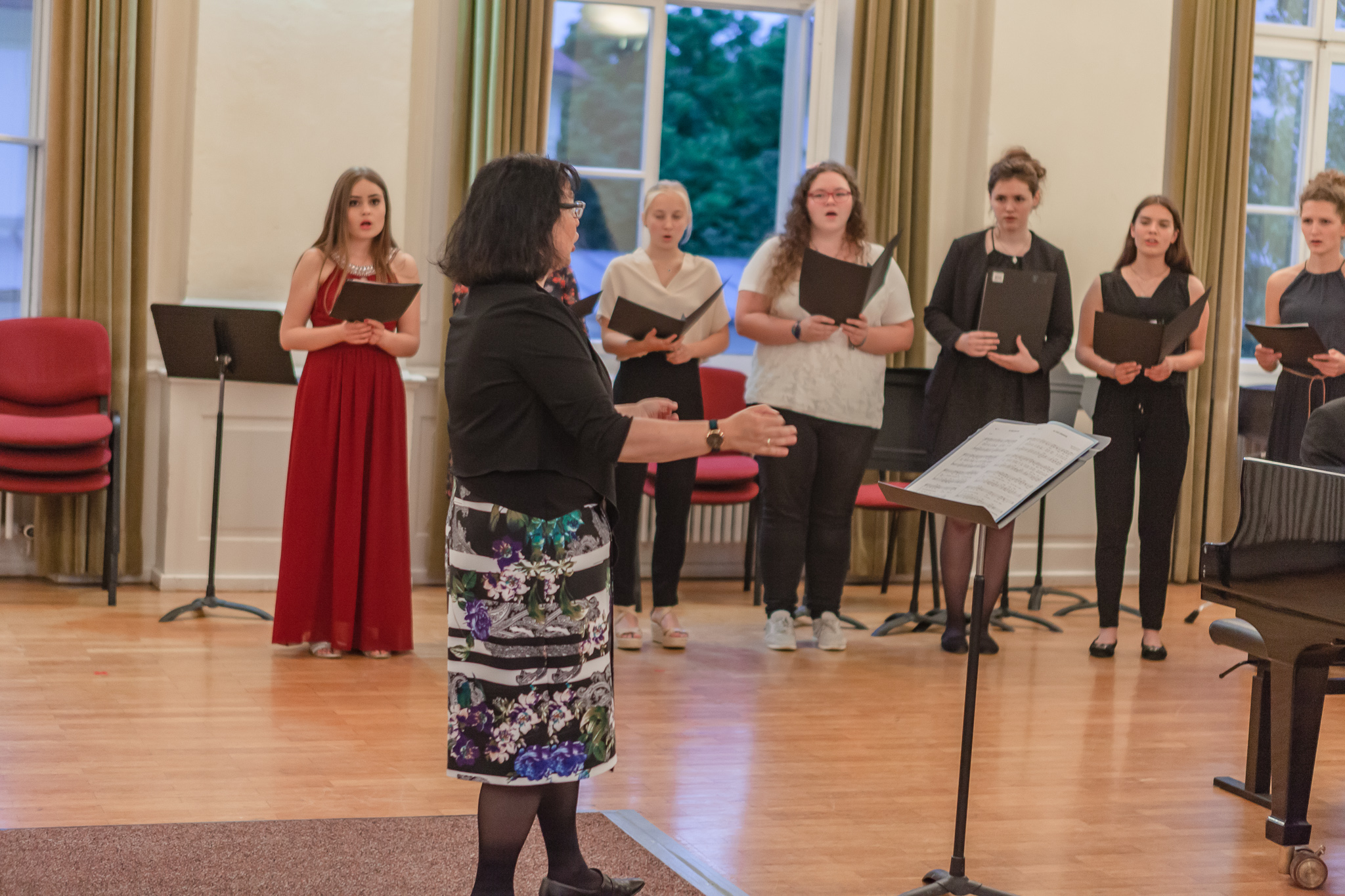 Die herausragenden gesanglichen Leistungen zeigten sich auch im Chorgesang, Die Kursleiterin wählte dazu das Lied „Ein hübscher Vogel“ aus den „Liebesliederwalzern“ von Johannes Brahms, das spritzig und fein artikuliert den ersten Teil des Abends abrundete. Chiara Andrée und Julius Hörner als Begleiter überzeugten in ihrem exakt aufeinander abgestimmten, sicheren und kraftvollen Spiel. Mit dem Lied „Irish Blessing“ verabschiedete die Q 11 die Zuhörer nach einem eindrucksvollen Konzert.