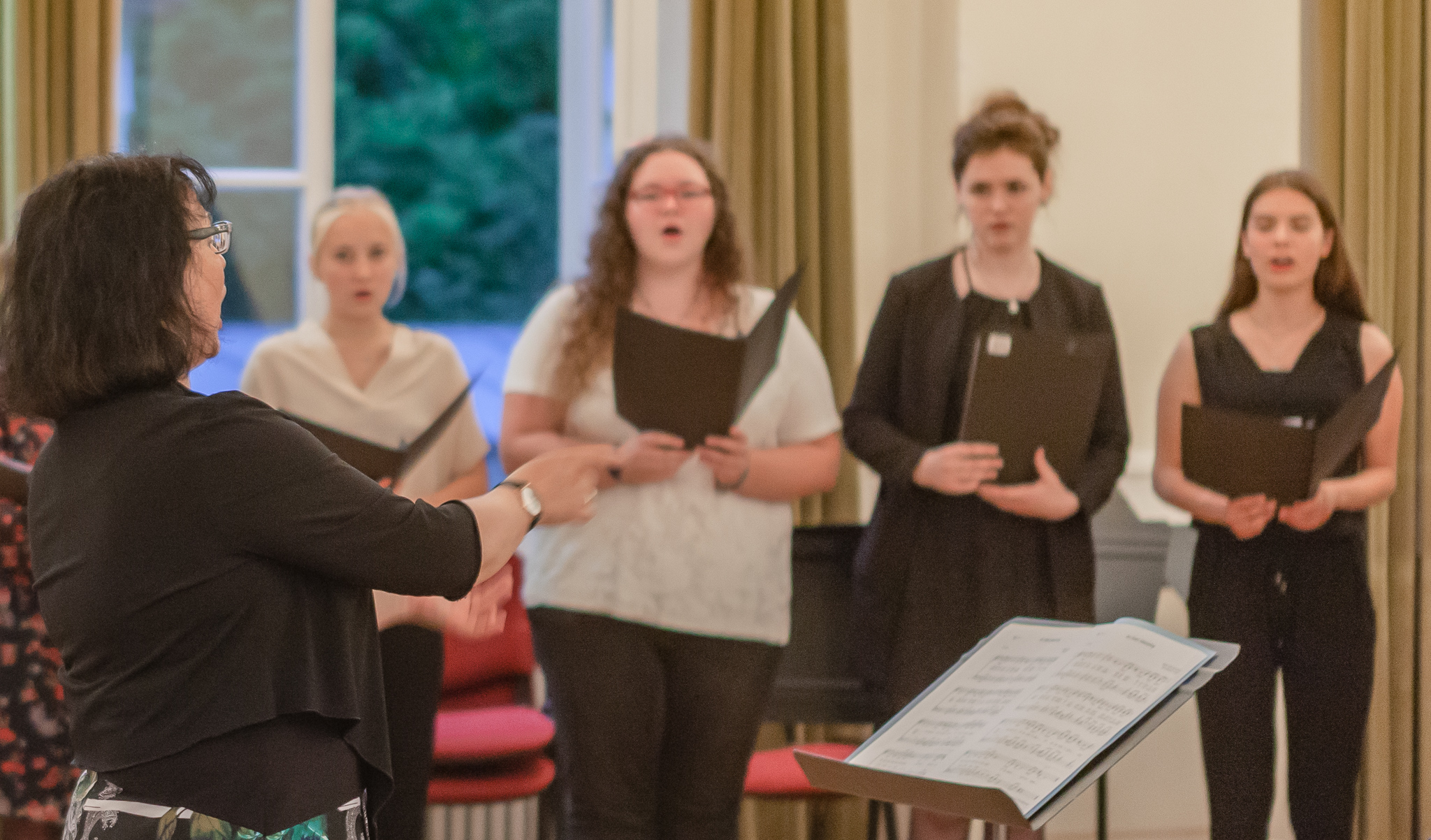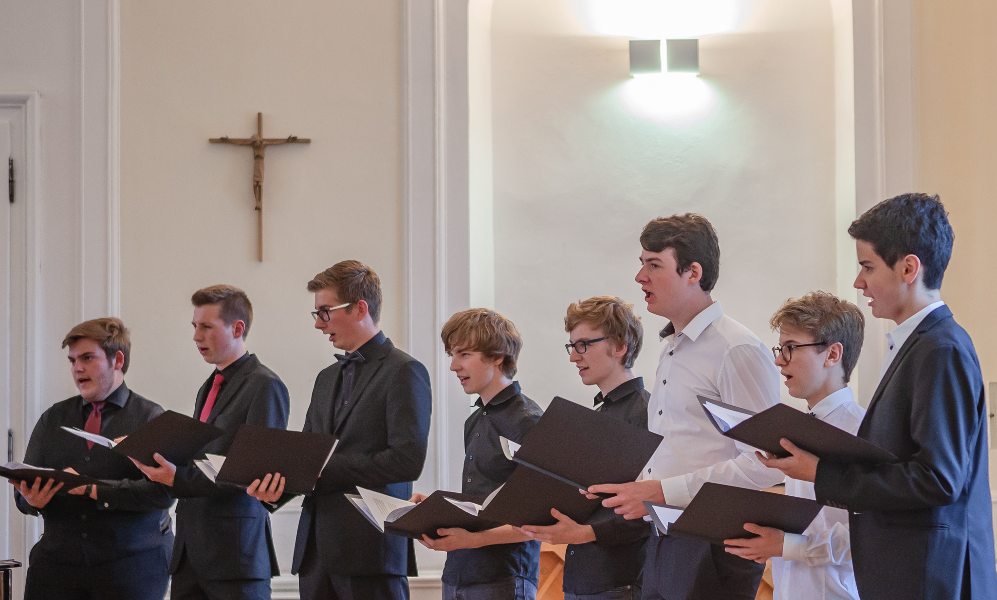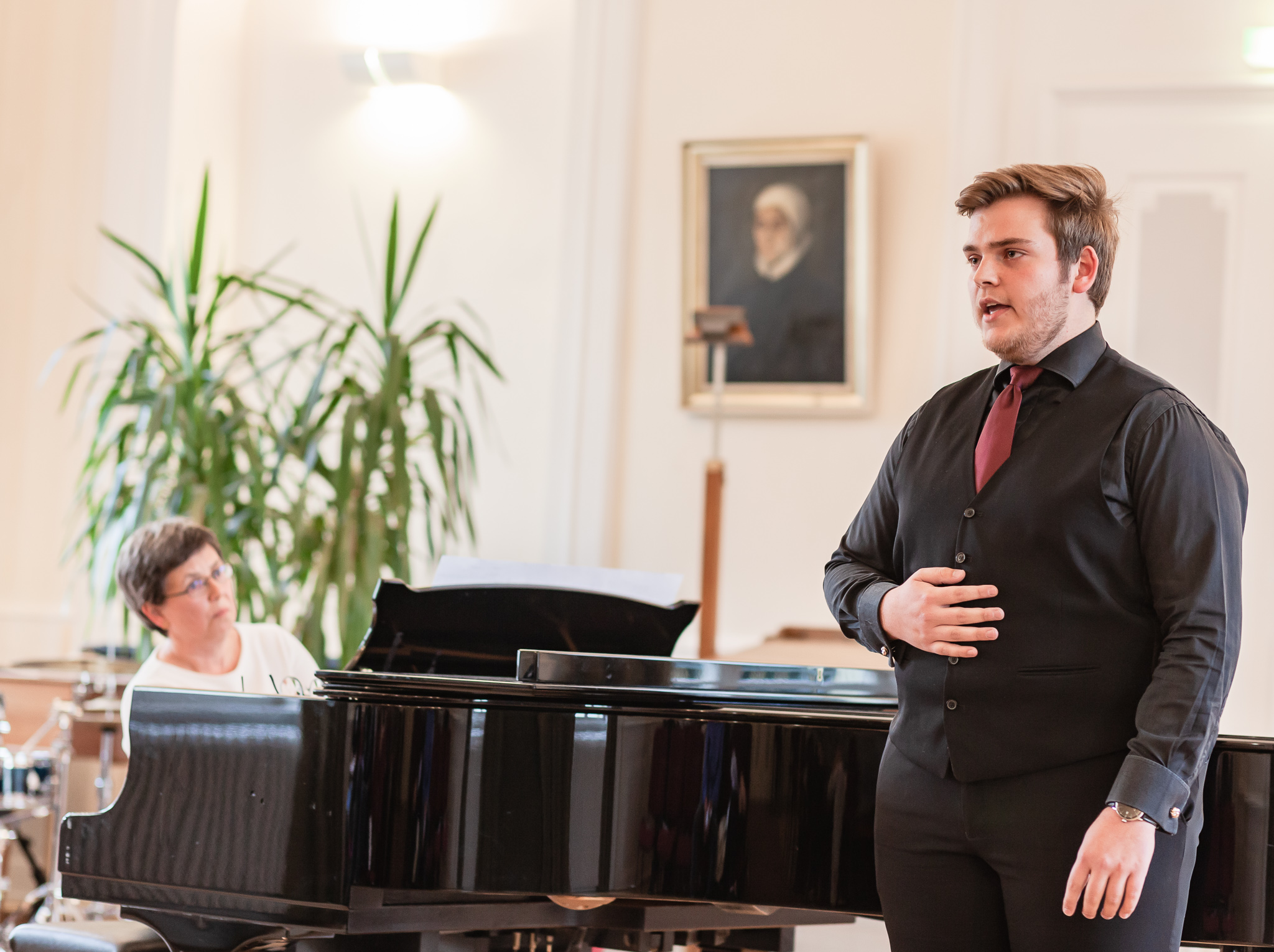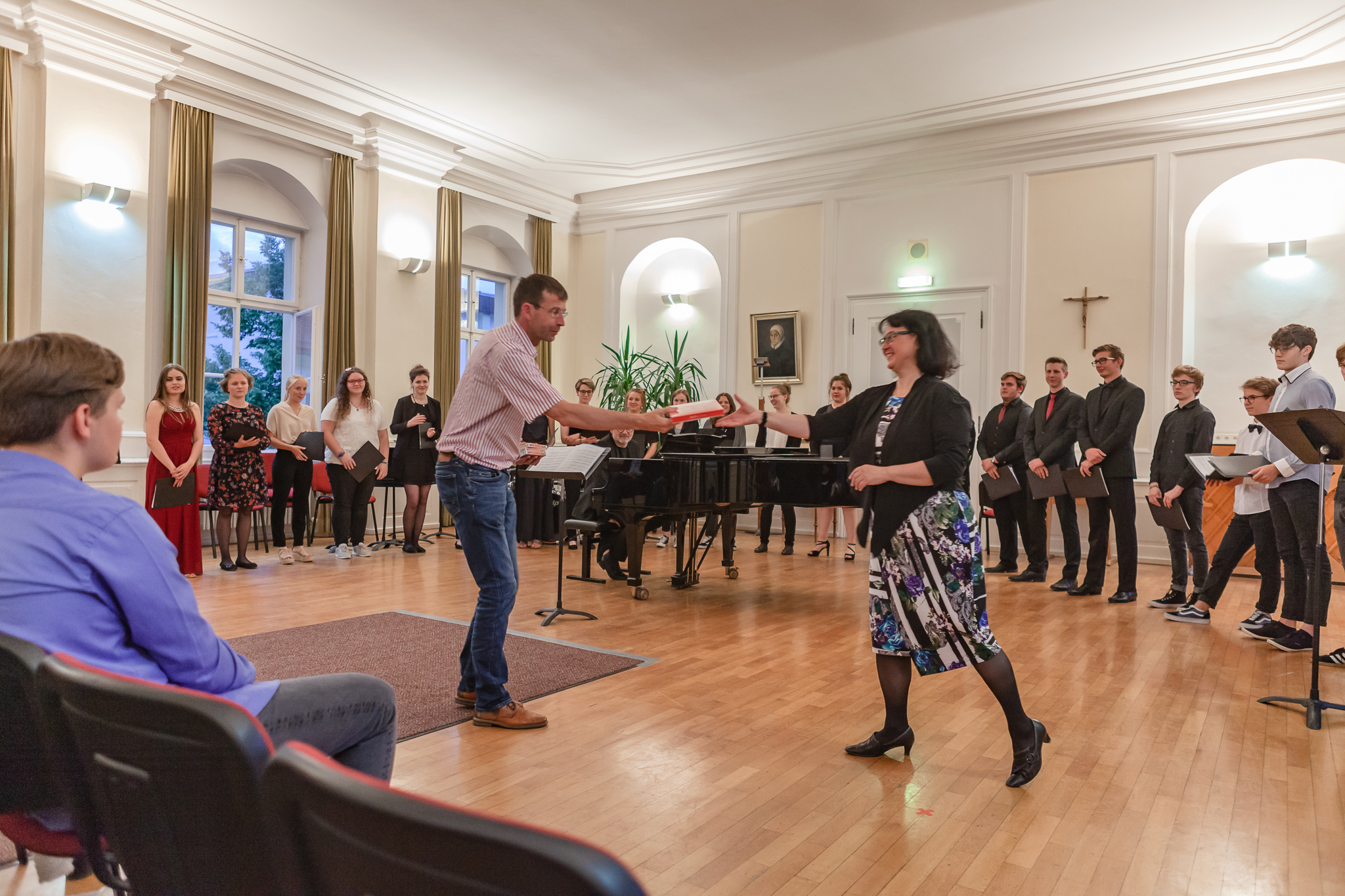 Die herausragenden gesanglichen Leistungen zeigten sich auch im Chorgesang, Die Kursleiterin wählte dazu das Lied „Ein hübscher Vogel“ aus den „Liebesliederwalzern“ von Johannes Brahms, das spritzig und fein artikuliert den ersten Teil des Abends abrundete. Chiara Andrée und Julius Hörner als Begleiter überzeugten in ihrem exakt aufeinander abgestimmten, sicheren und kraftvollen Spiel. Mit dem Lied „Irish Blessing“ verabschiedete die Q 11 die Zuhörer nach einem eindrucksvollen Konzert.