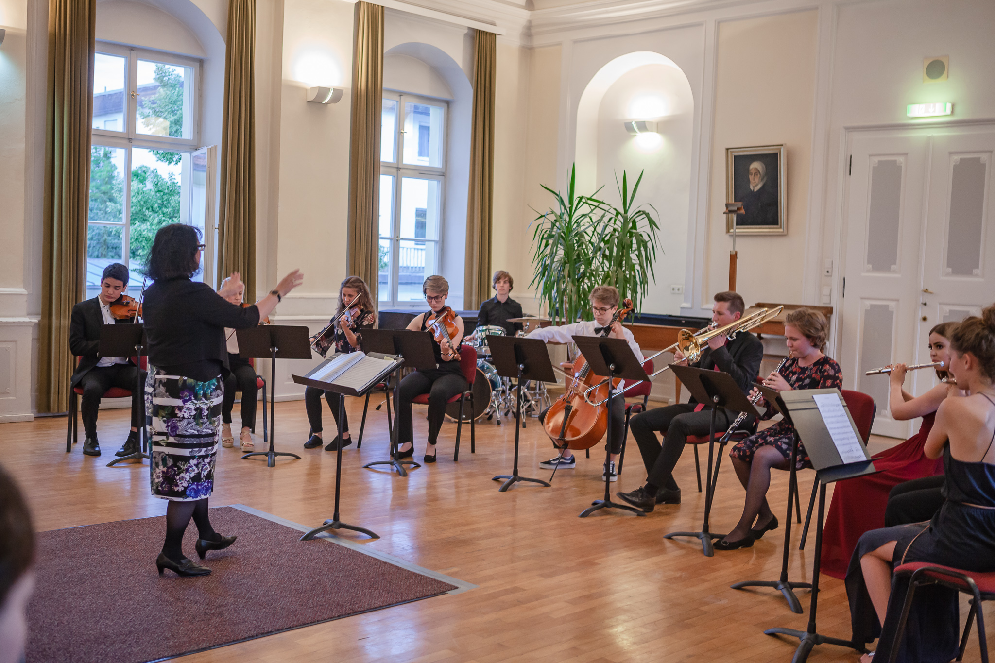 Die vielfältigen instrumentalen Leistungen wurden gebündelt in einem Kammermusiktrio aus Oboe, Viola und Kontrabass, sehr musikalisch interpretiert von Martin Pia, Bauer Vanessa und Schäfer Jennifer und in einem Orchesterensemble , geleitet von der Kursleiterin Brigitte Glas, das zu „City of Nights“ schwungvoll geradezu zum Tanzen aufforderte.