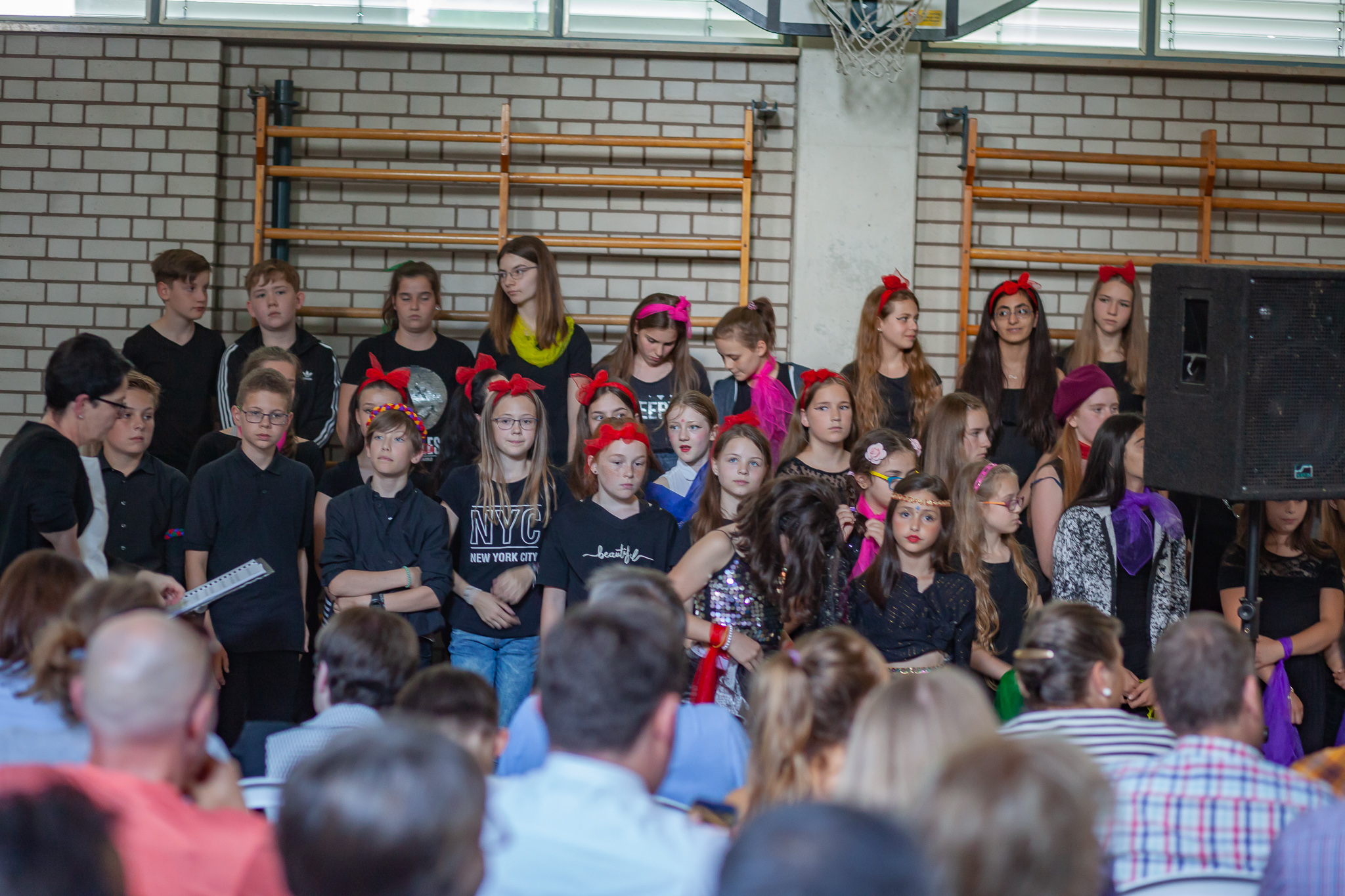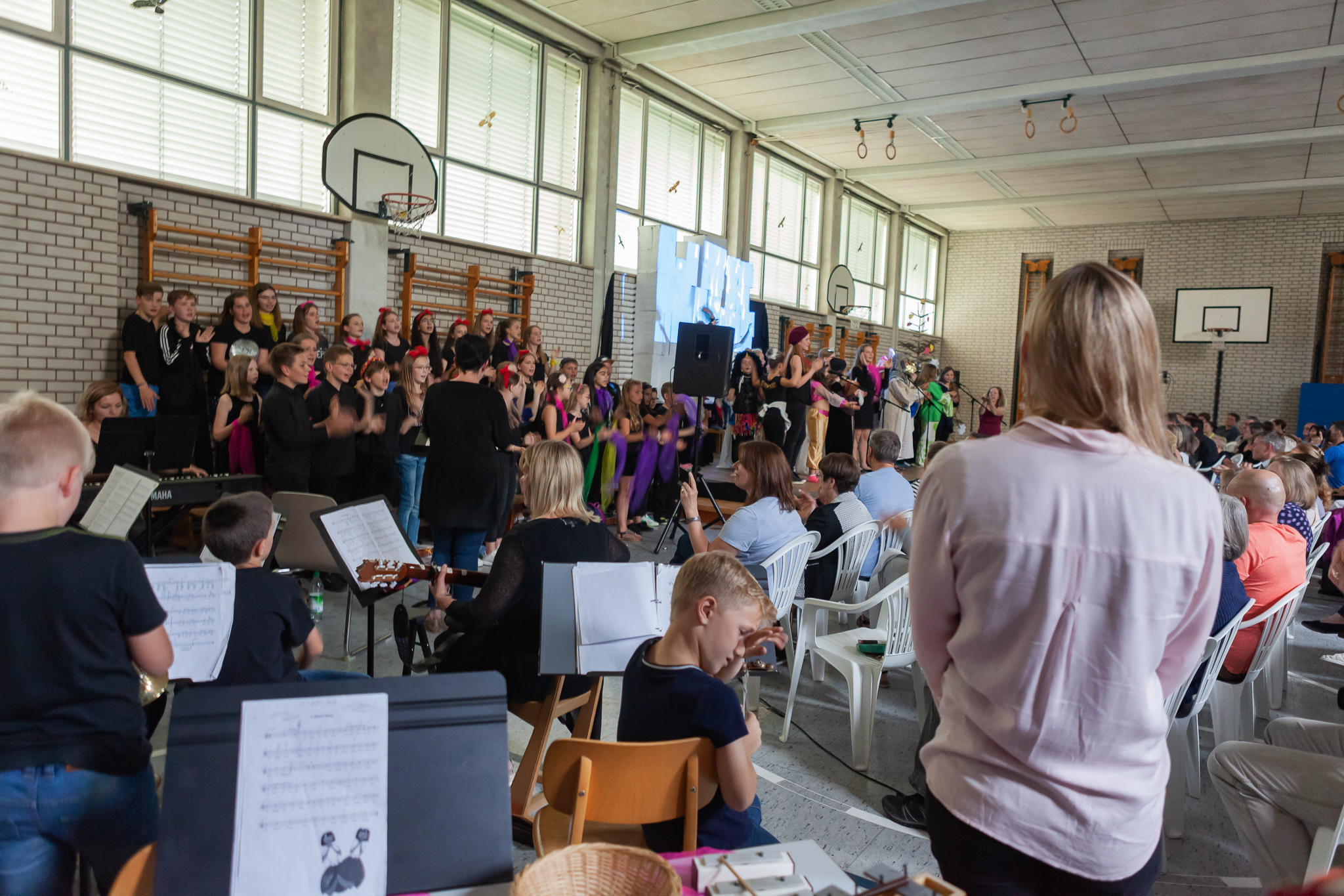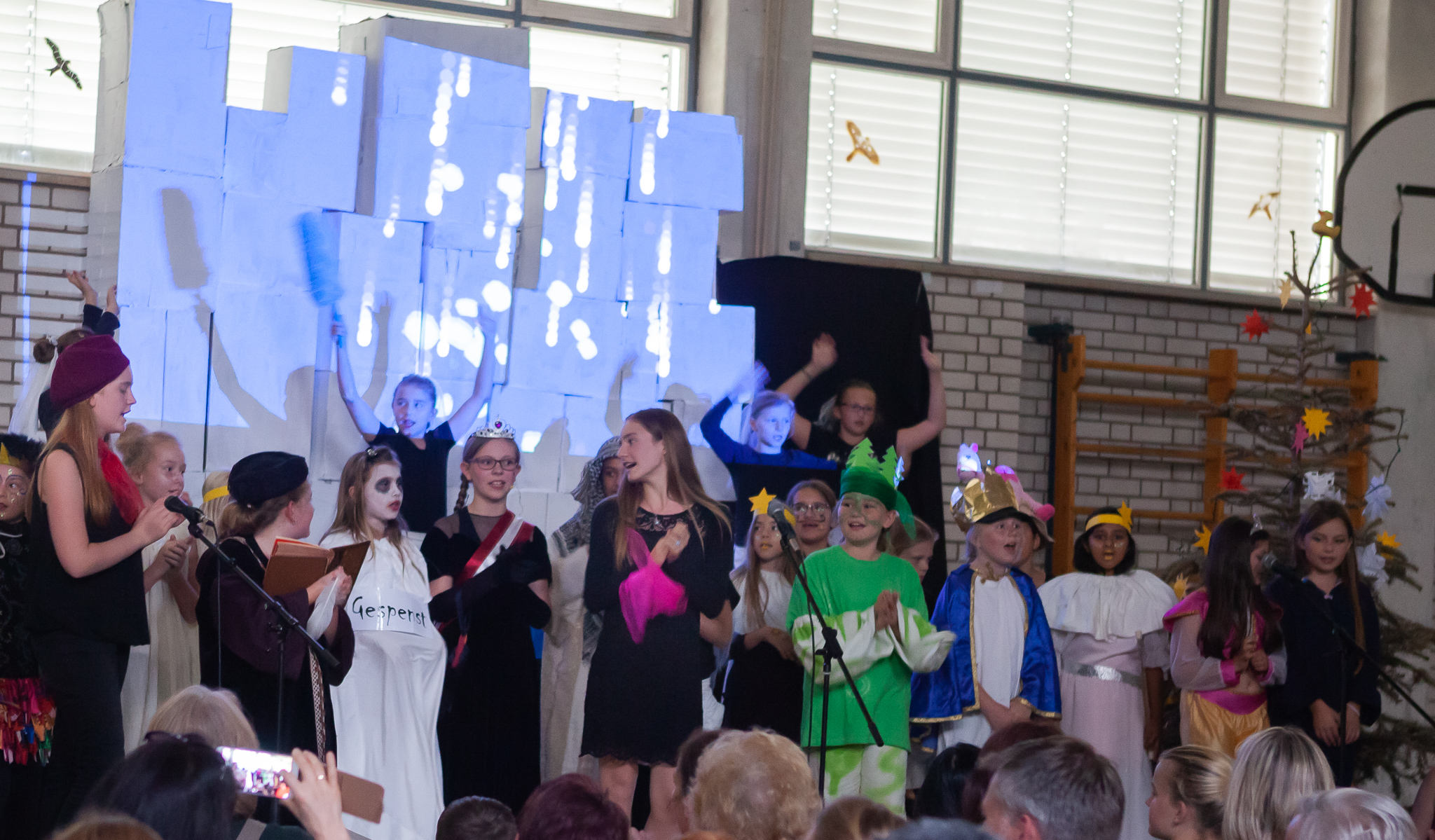 Die musische 6. Jahrgangsstufe unter der Leitung von Musiklehrerin Margit Weinberger übernahm die Chorpartien und vereinzelte Gesangssoli und führte das Musical zusammen mit den Kindern aus Haidenhof insgesamt dreimal auf.