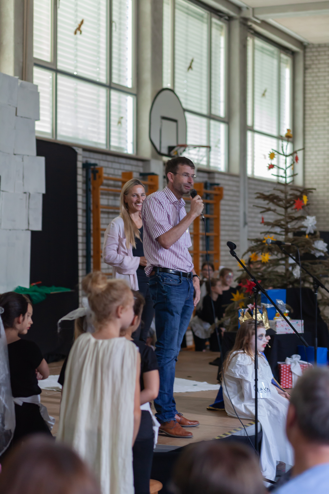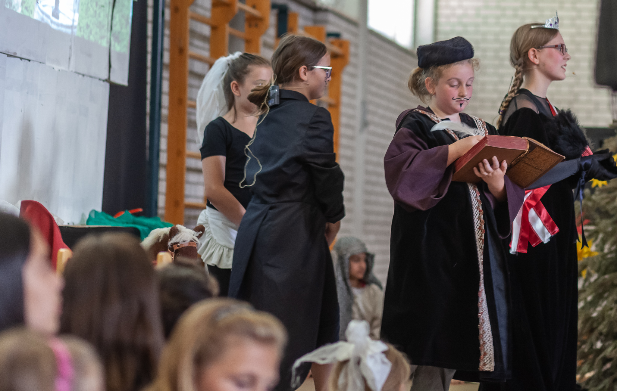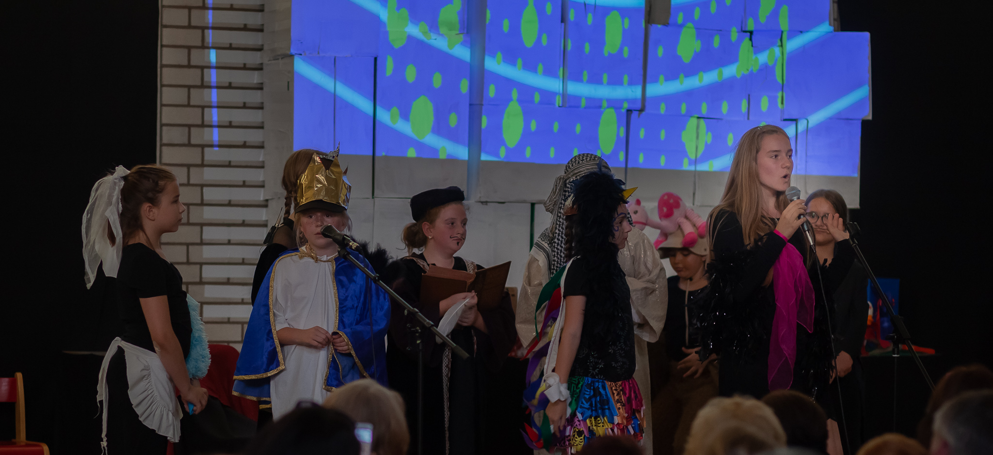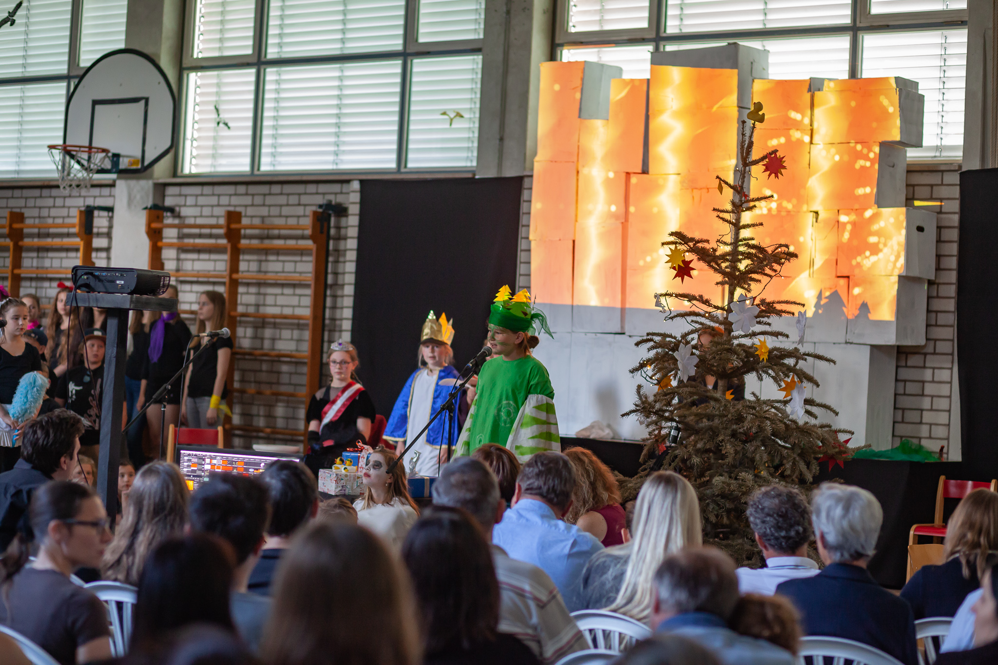 Die musische 6. Jahrgangsstufe unter der Leitung von Musiklehrerin Margit Weinberger übernahm die Chorpartien und vereinzelte Gesangssoli und führte das Musical zusammen mit den Kindern aus Haidenhof insgesamt dreimal auf.
